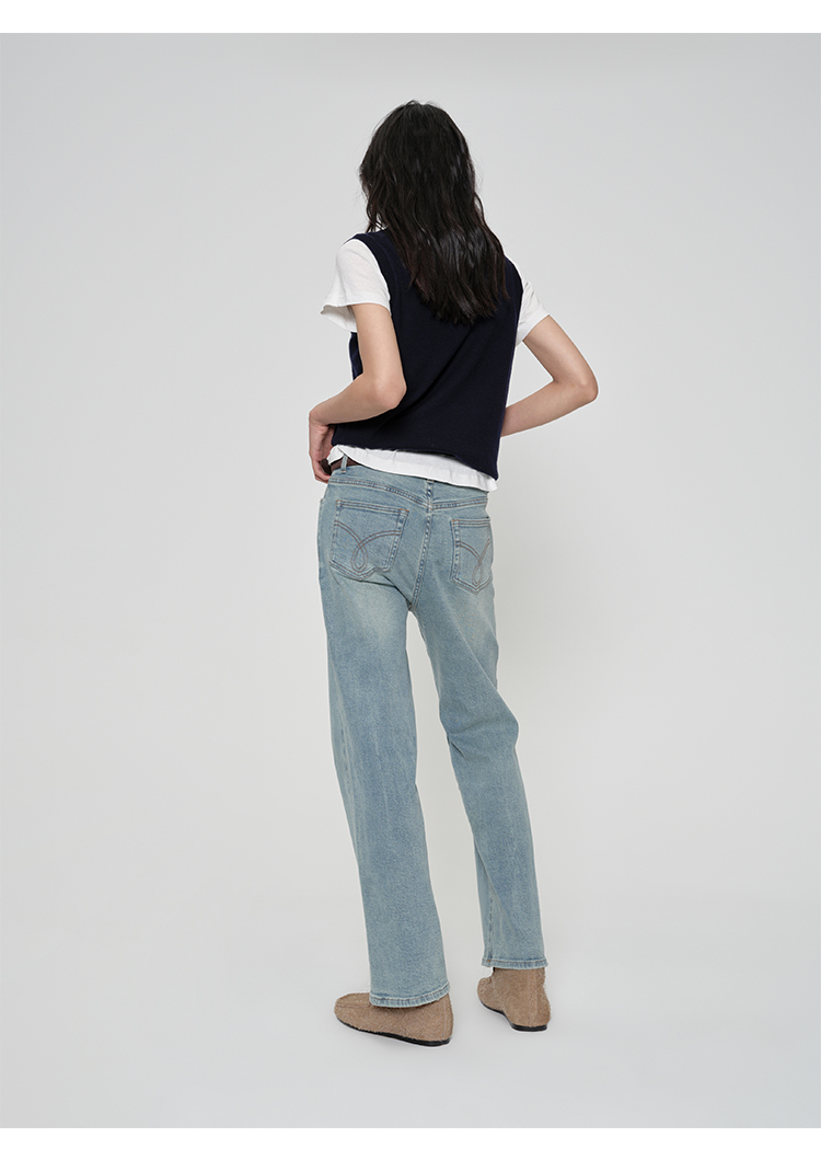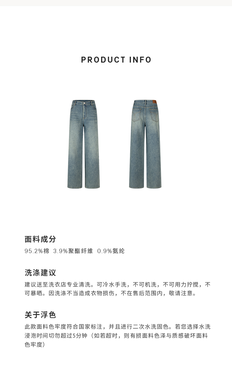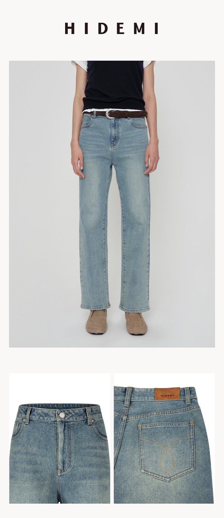 HIDEMI多重水洗做旧感牛仔蓝显瘦直筒街头感休闲牛仔裤