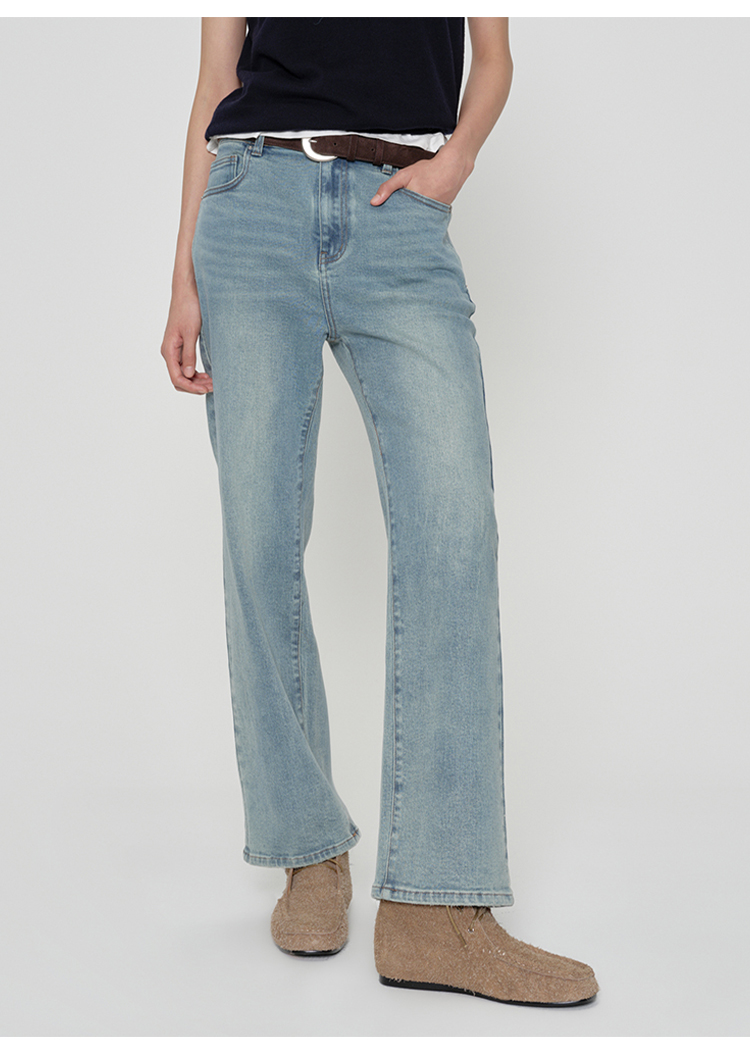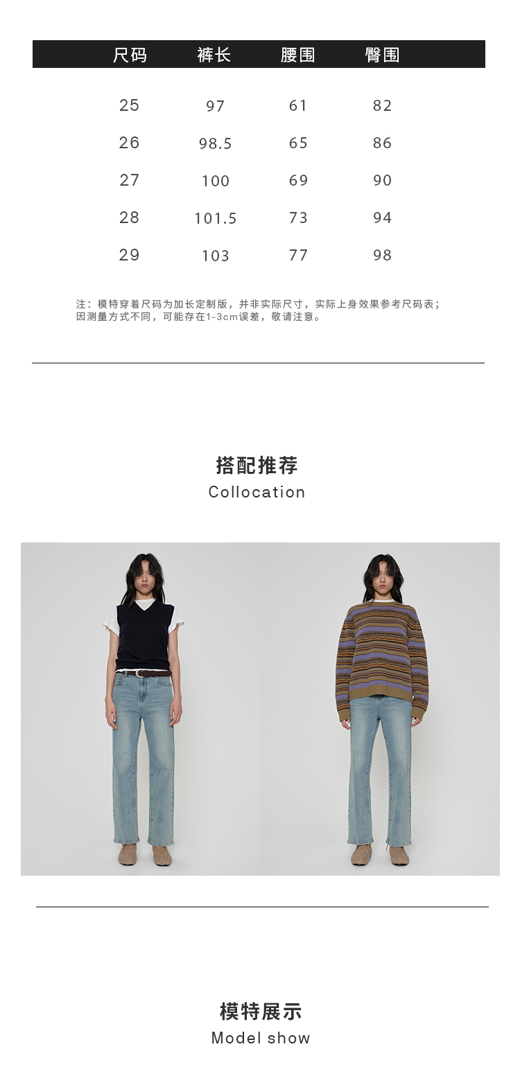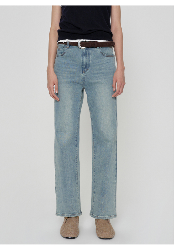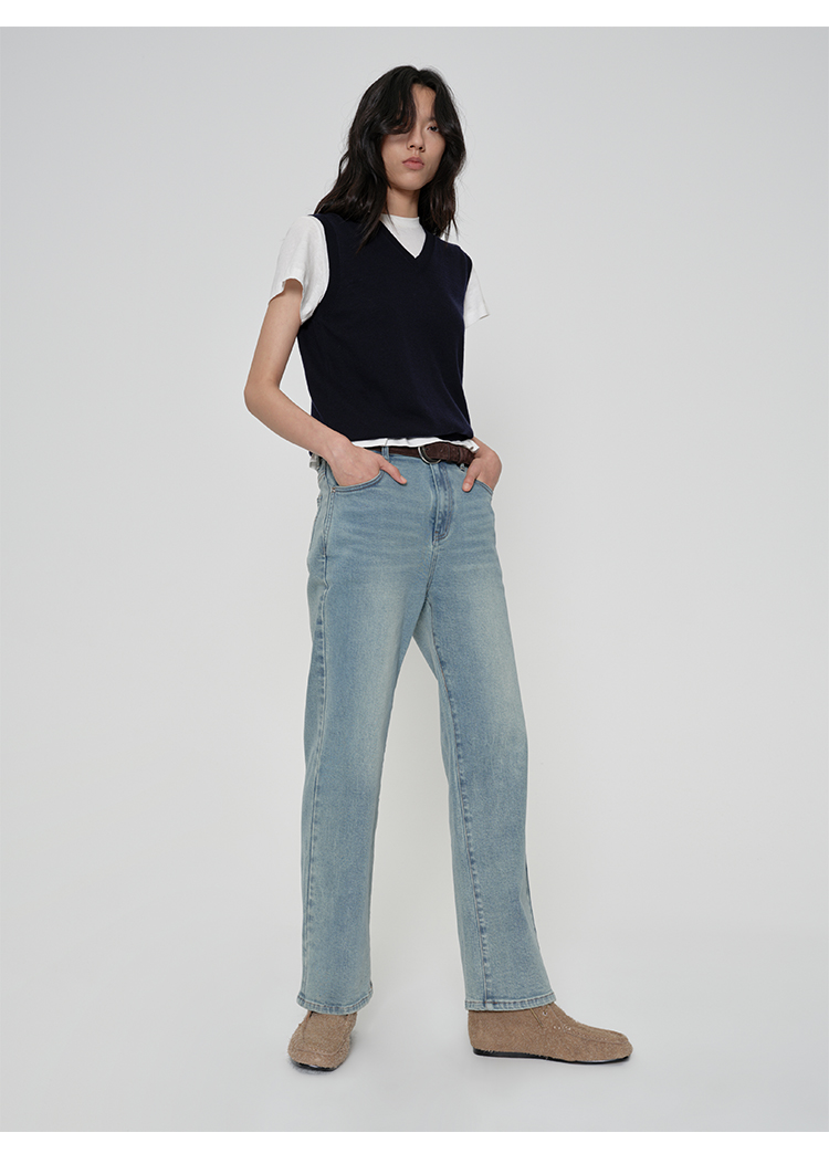 HIDEMI多重水洗做旧感牛仔蓝显瘦直筒街头感休闲牛仔裤