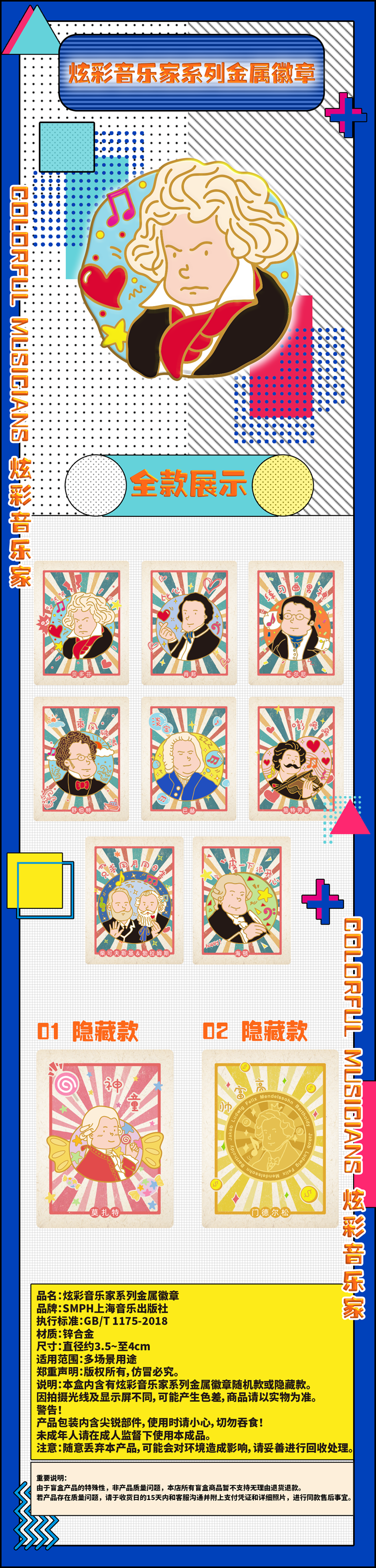 产品名称: Q版音乐家盲盒徽章