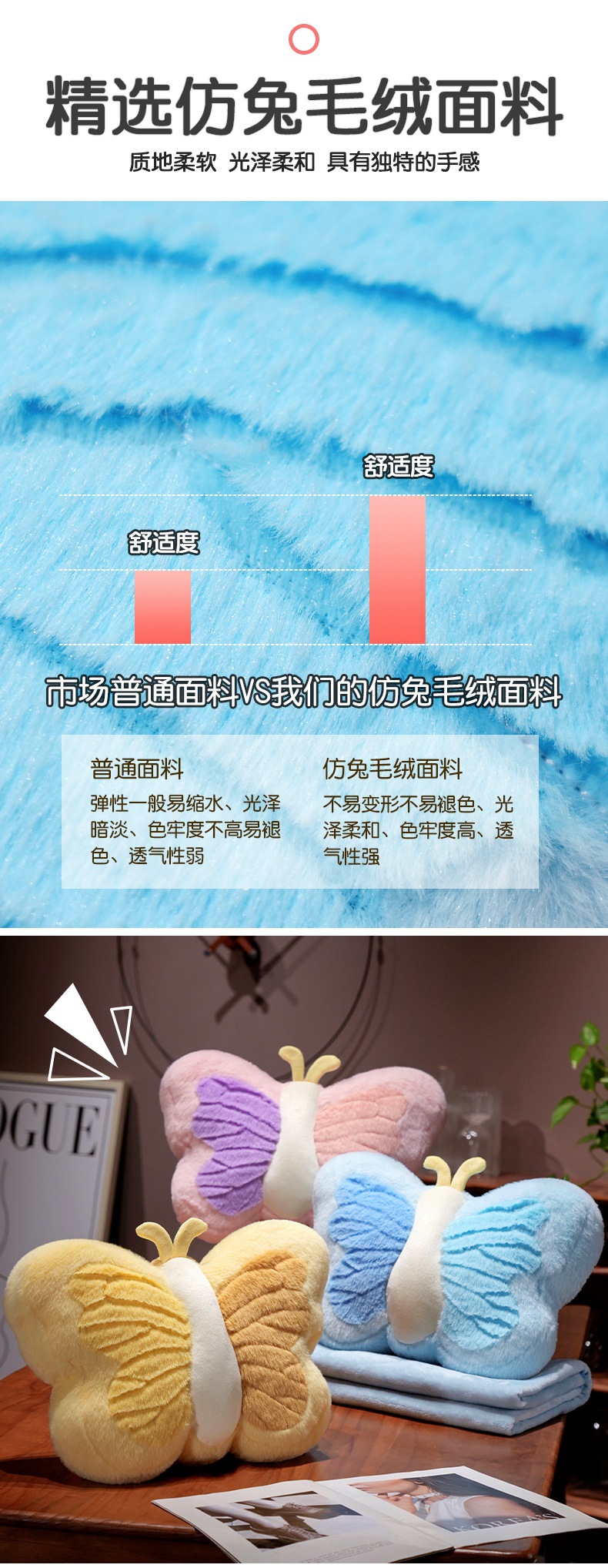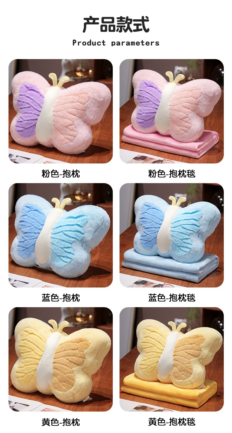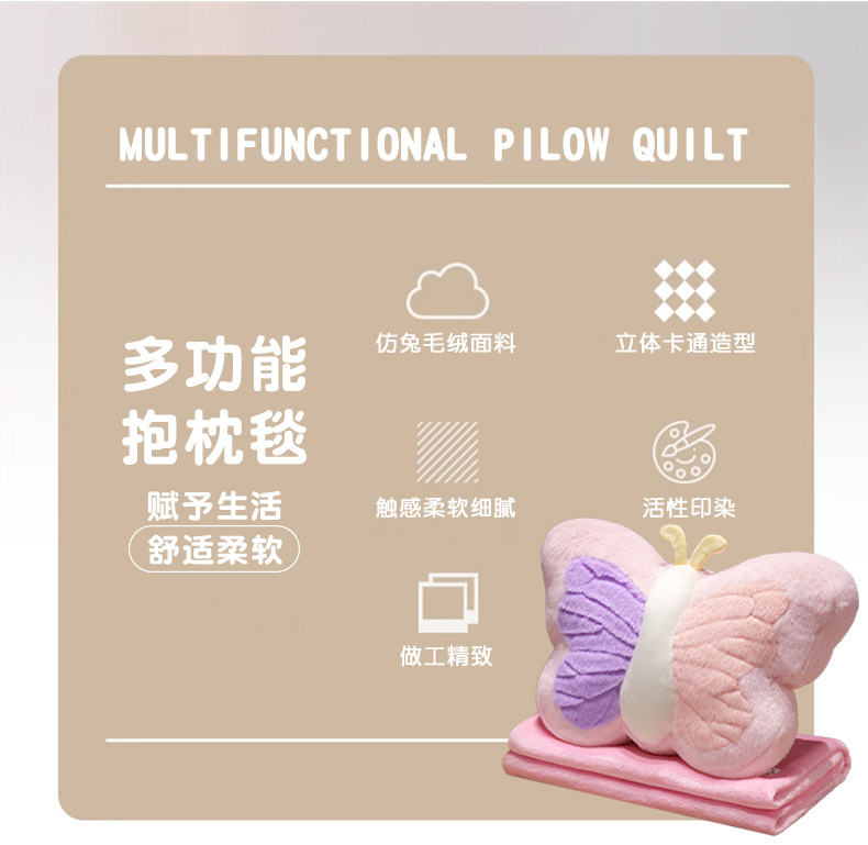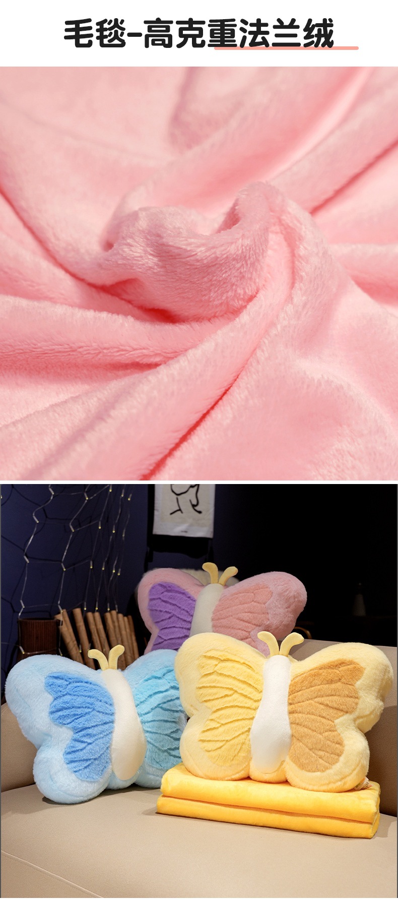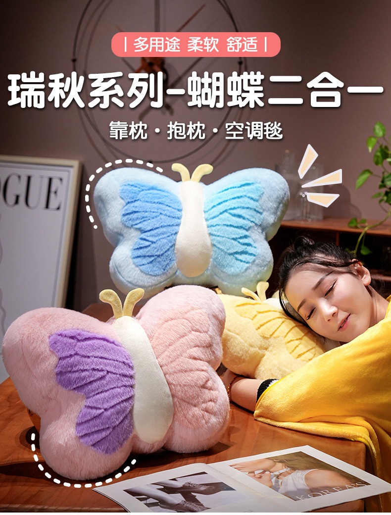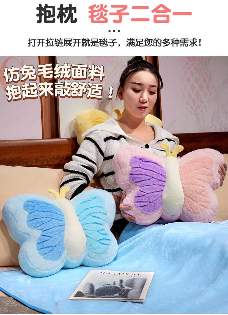 【多功能抱枕毯二合一!打开拉链展开就是毯子】填充饱满,ins风蝴蝶抱枕毯办公室午休多功能被子两用椅子腰靠车载靠枕冬季。rc