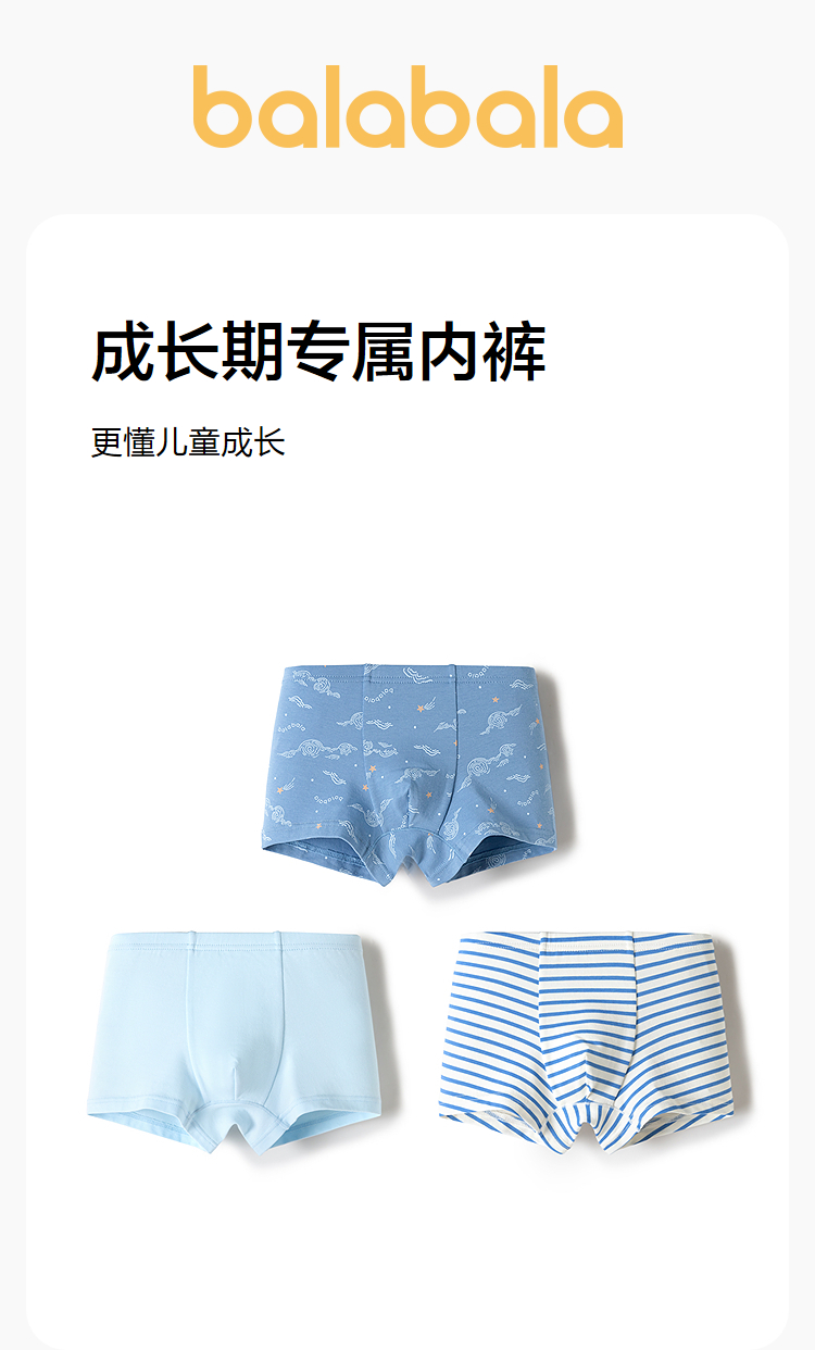 巴拉巴拉男童内裤平角棉儿童四角短裤不夹PP小童大童抗菌三条装