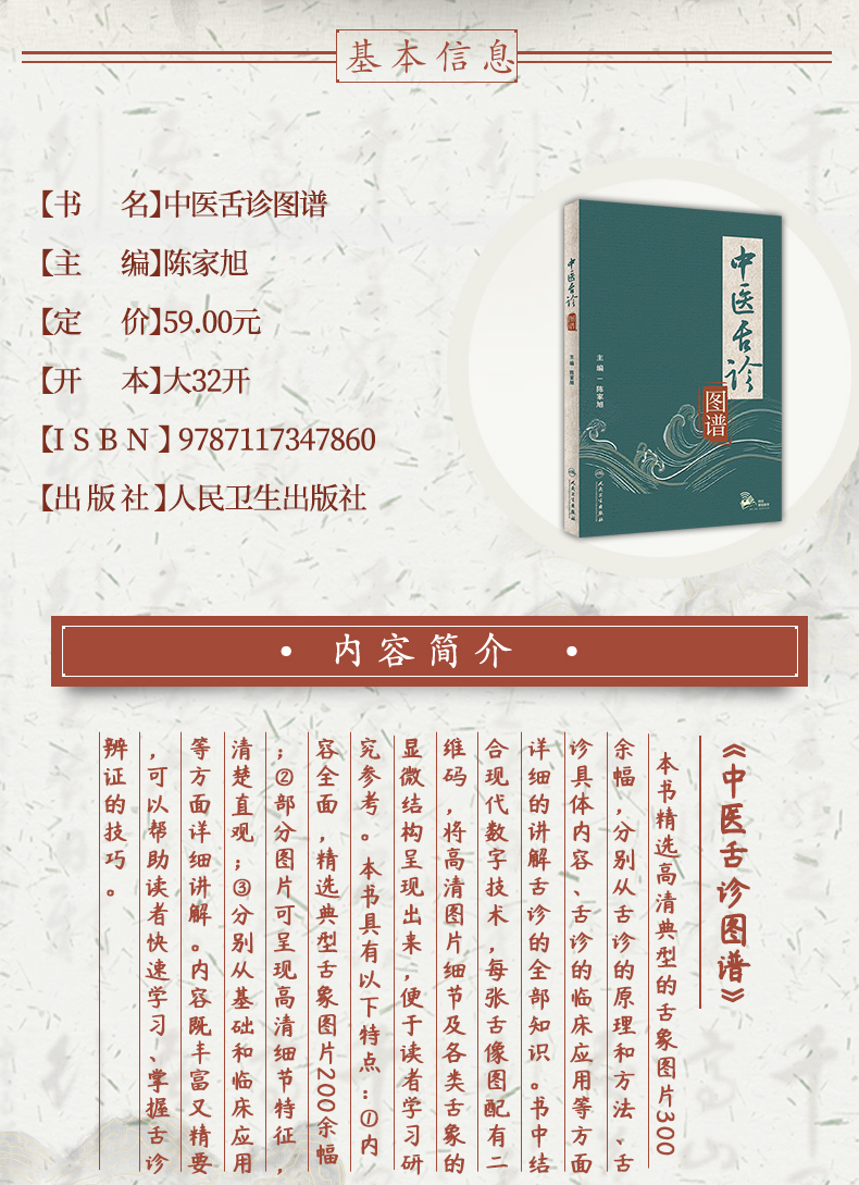 中医舌诊图谱 陈家旭主编 舌诊原理方法具体内容临床应用基础知识详解 舌诊辨证技巧 附典型舌象图片 人民卫生出版社9787117347860