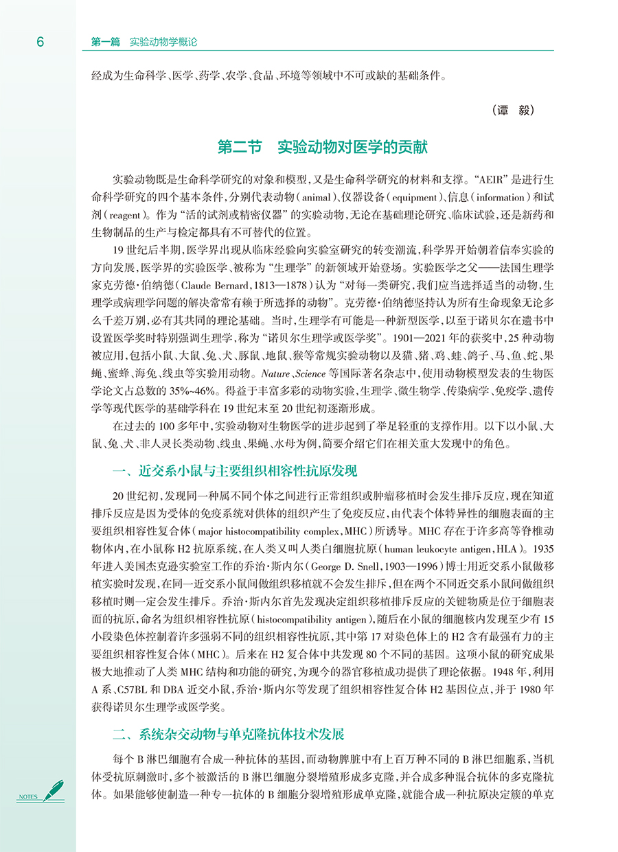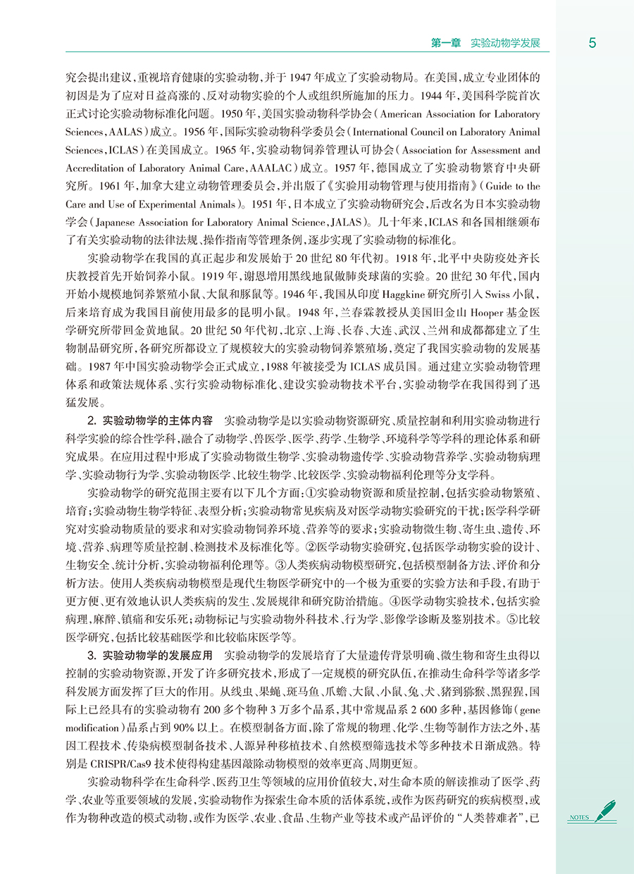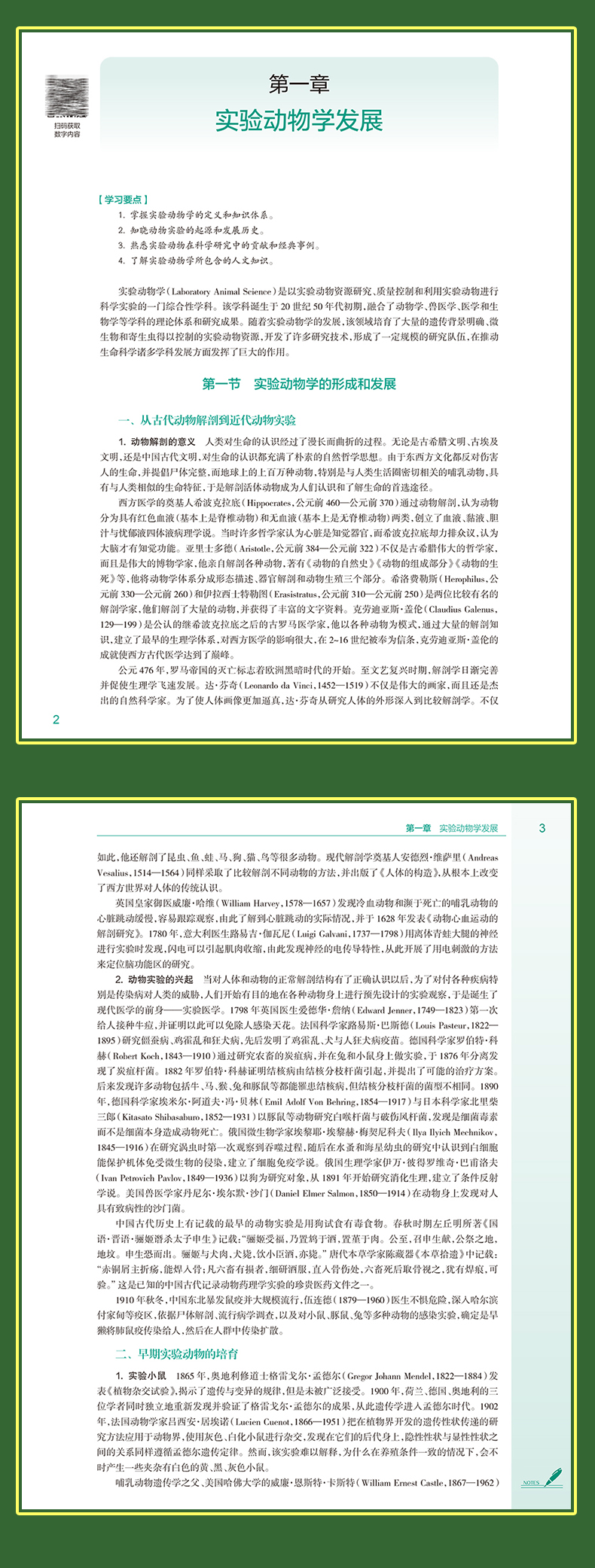 现代科学意义上的实验动物学出现在17世纪。在21世纪,即生命科学的世纪,实验动物学已经成为生命科学、医学、药学、中医药、农业和航天等领域重要支撑条件之一。实验动物成为最常用的研究工具,同时生命科学技术发展又进一步促进了实验动物学的发展。世界各国包括中国,对生命科学和医药研究的投入不断扩大,模式动物、基因工程动物、胚胎工程动物和高级别实验动物正在逐渐取代常规实验动物。实验动物学不仅作为生命科学和生物技术的重要支撑条件,同时作为生命科学研究的模式动物和比较医学的主要对象,在阐明基因的结构与功能、模拟人体正常与疾病生命现象等诸多方面具有不可替代的作用。本教材的编写主要面向医学院校八年制临床医学生,淡化了“实验动物学”学科本身的理论,而突出了医学生作为使用者在未来的医学实践中应该了解的内容,以帮助医学生更好地利用这一重要的研究工具去发现和解决临床问题。本教材分为三篇和附录,共四部分,第一篇“实验动物学概论”介绍了实验动物学发展史;实验动物学科组成;实验动物管理;实验动物福利和生物安全;实验动物多样性;动物实验设计及转化医学。第二篇“实验动物在医学研究中的应用”介绍了常用疾病动物模型与应用;临床医学中的经典动物实验;中医药、药物研究中的动物实验。第三篇“医学研究中的动物实验技术”介绍了常用实验方法及检查方法,常见人类疾病动物模型制备技术;实验动物遗传工程、行为学研究、分子影像、实验外科和多组学等常用技术。本附录分六个部分,包括实验动物学常用术语、实验动物数据库及生物信息检索、疾病研究特殊饲料、动物实验室常用参考数据、实验动物相关机构、法规标准等方面,以便拓展实验动物学信息,获取资源。本教材附加的数字教程除实验动物和动物实验基本要求及基本操作之外,可选修不同临床科室对应的专业实验技术,例如皮肤缝合、胃镜和纤支镜操作、心脏支架植入、立体脑注射等内容。