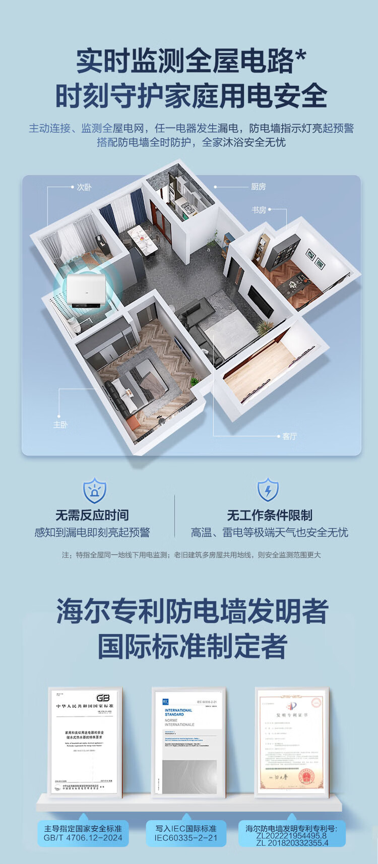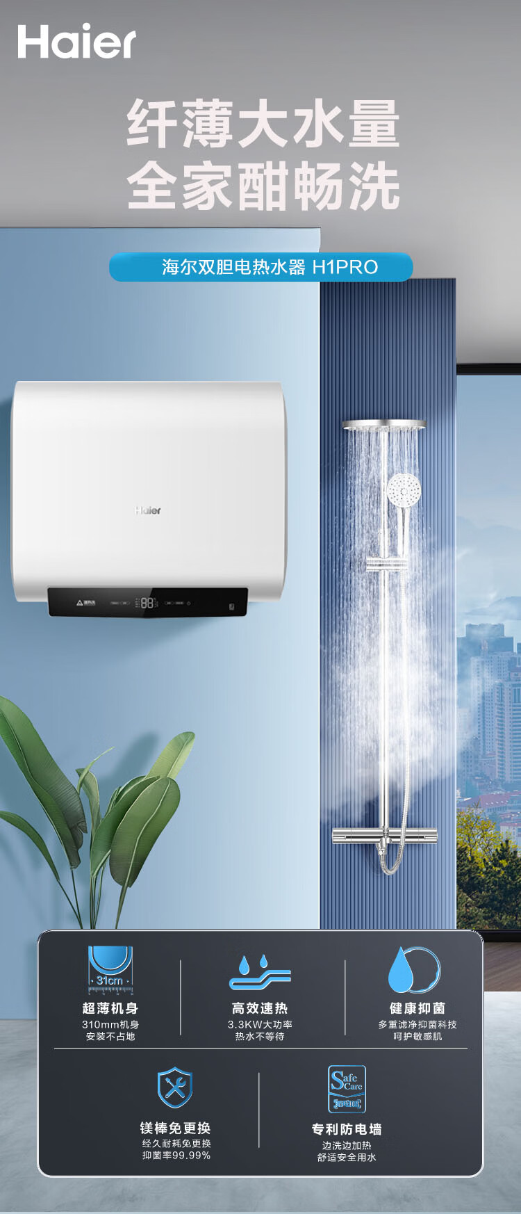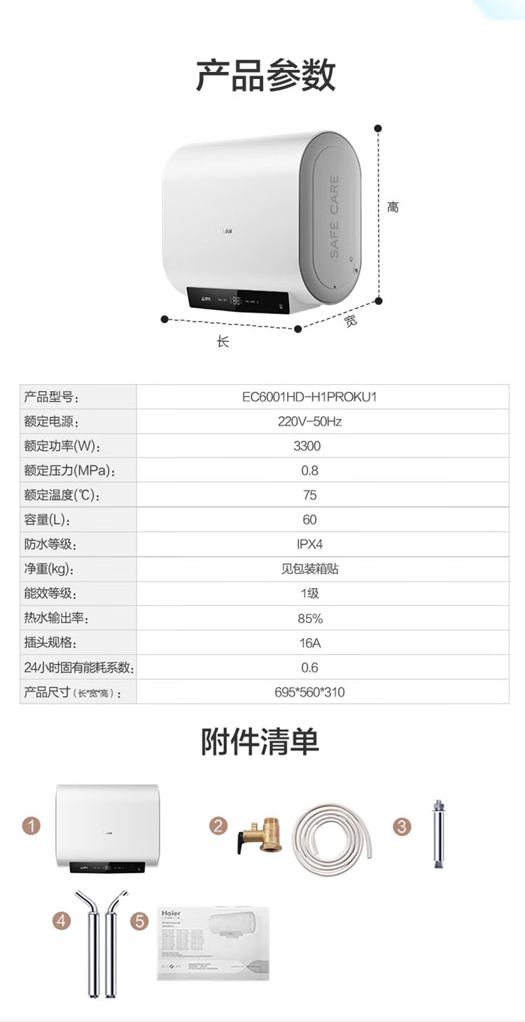 海尔60升家用电热水器 一级能效节能 EC6001HD-H1PROKU1 *