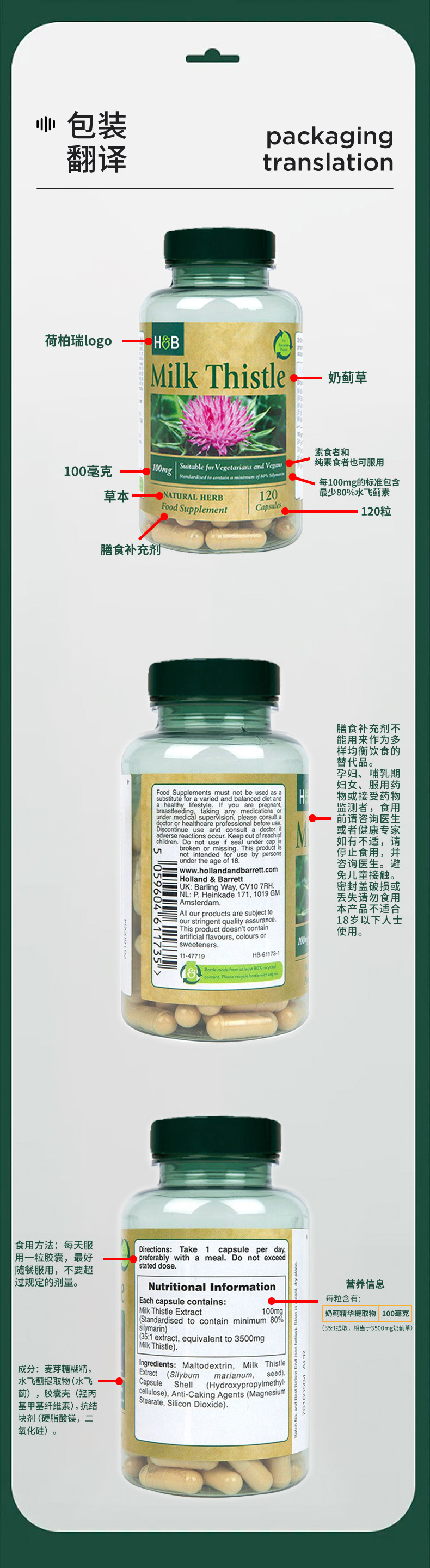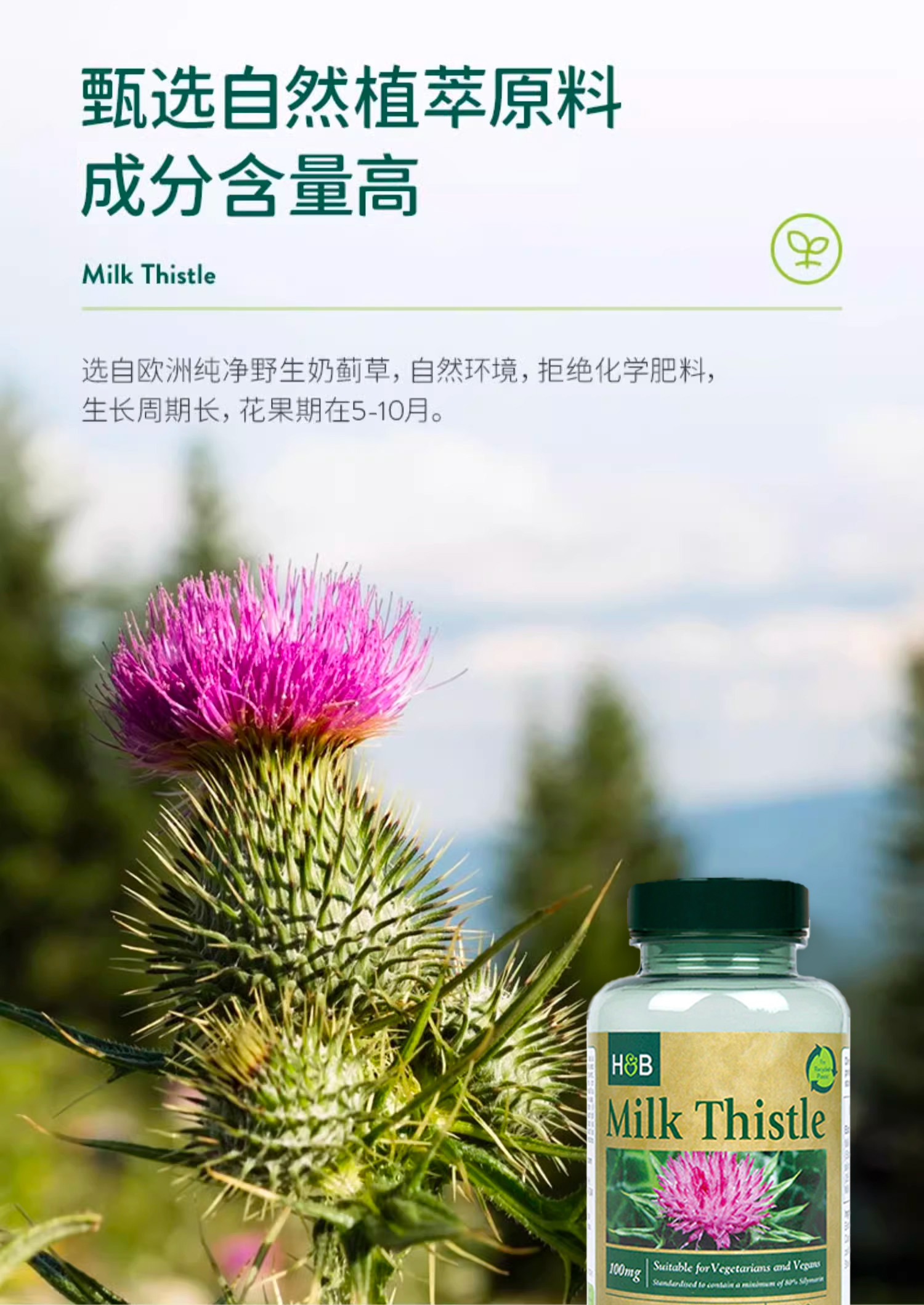 【含税】HOLLAND&BARRETT荷柏瑞奶蓟胶囊100mg120粒/瓶
