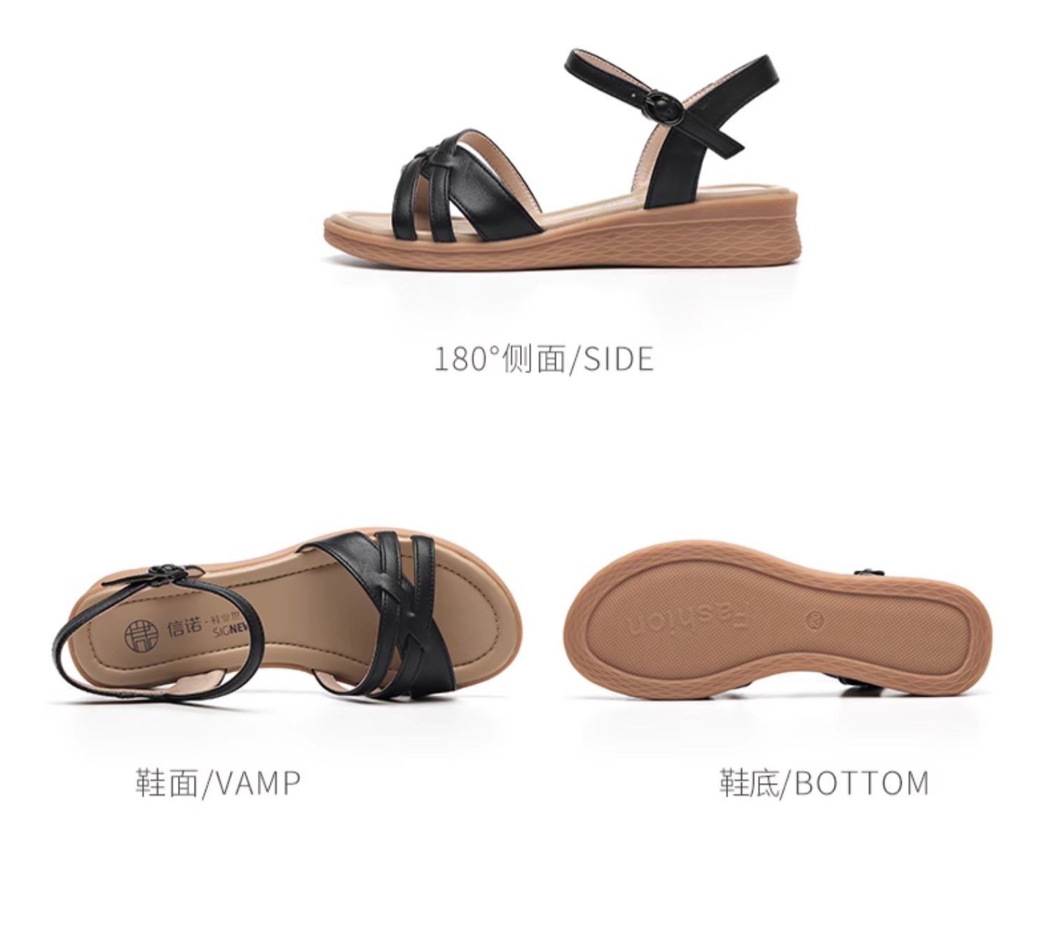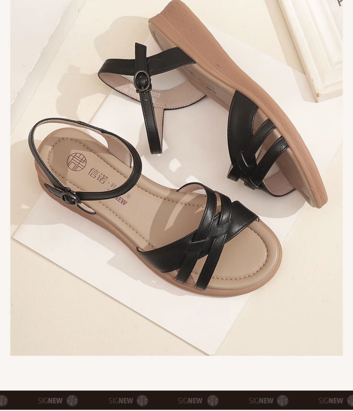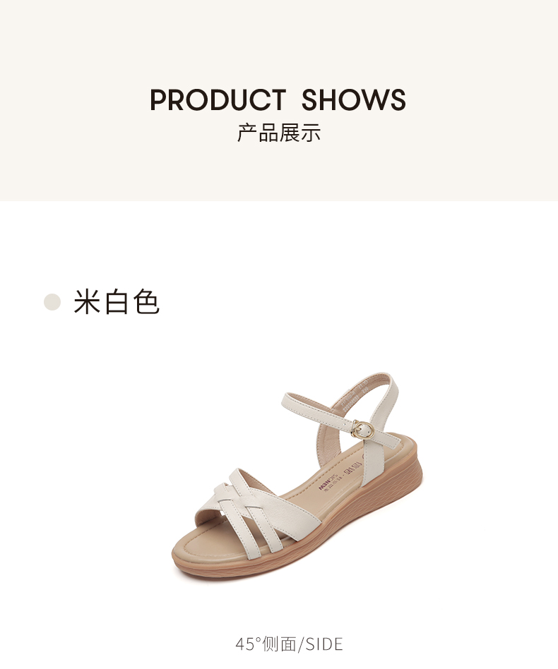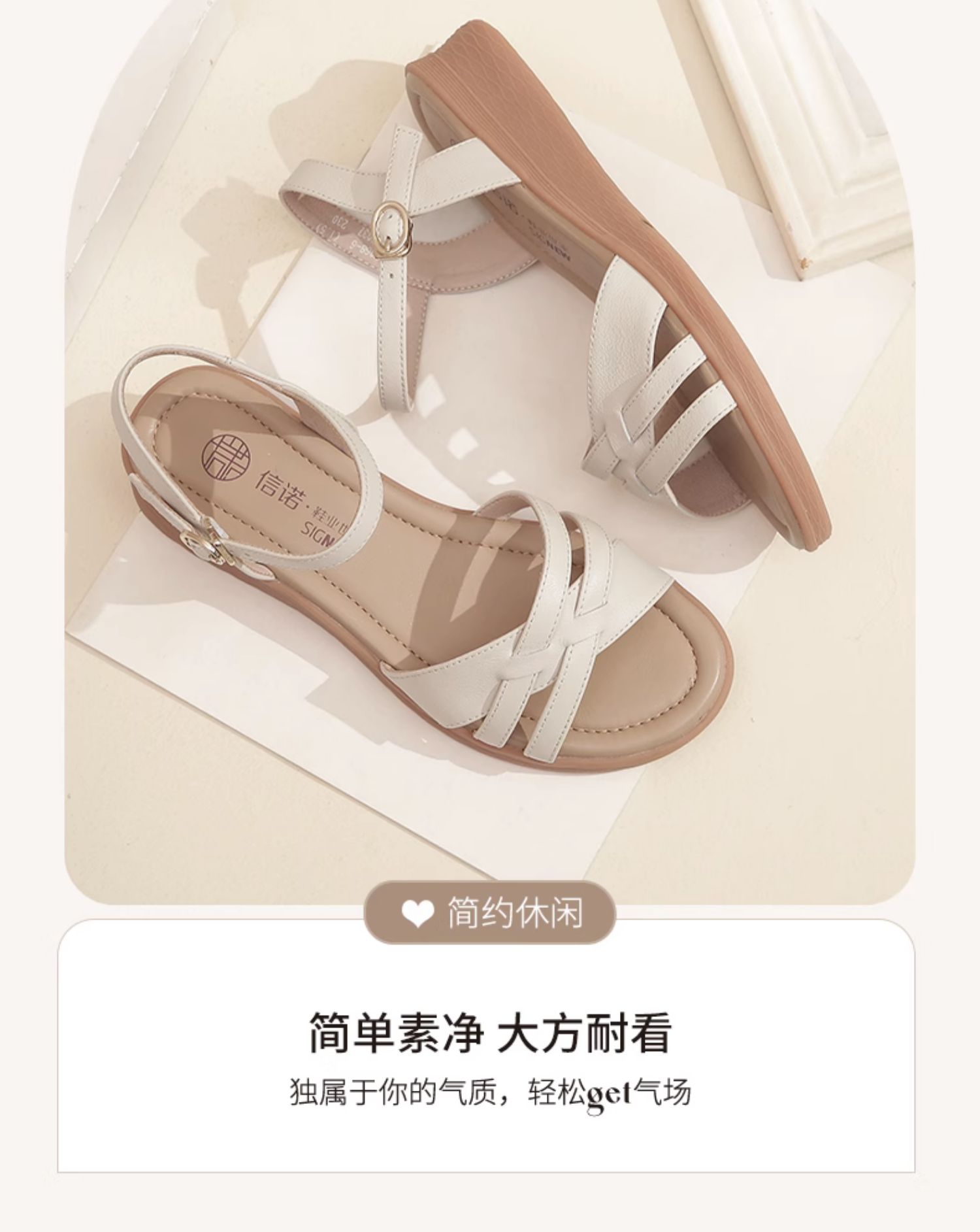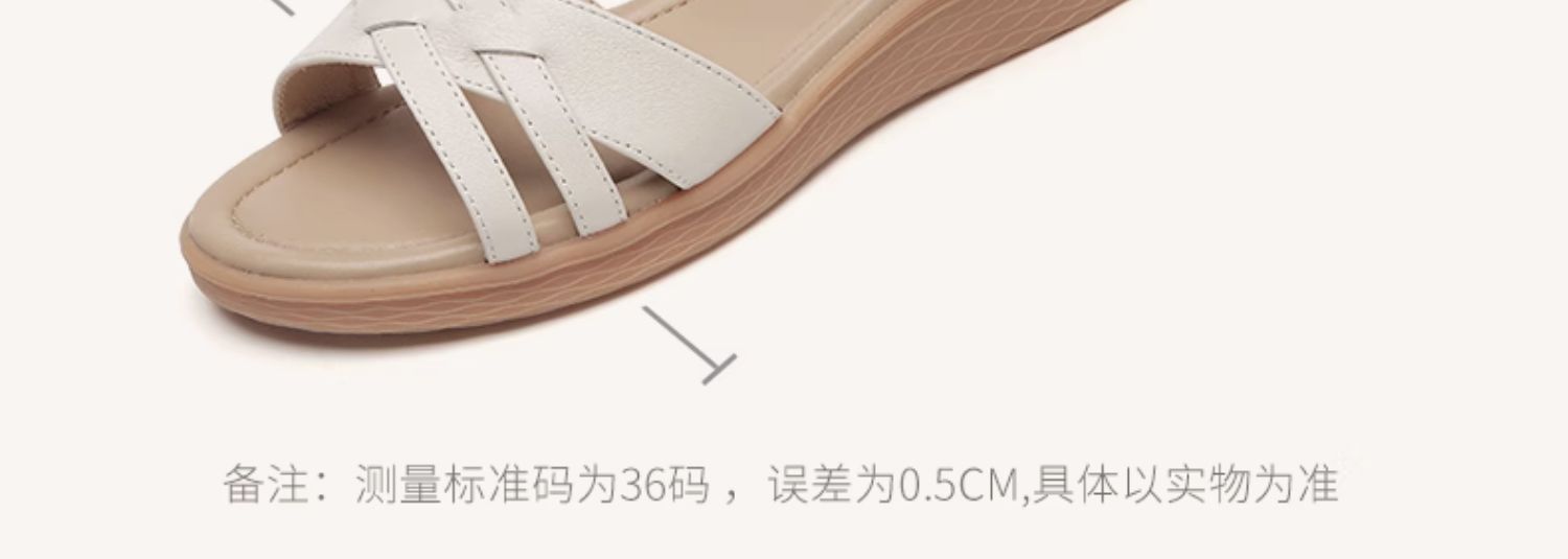 信诺真皮舒适中年妈妈凉鞋2023夏季新款软底坡跟防滑休闲百搭女鞋23L368-6
