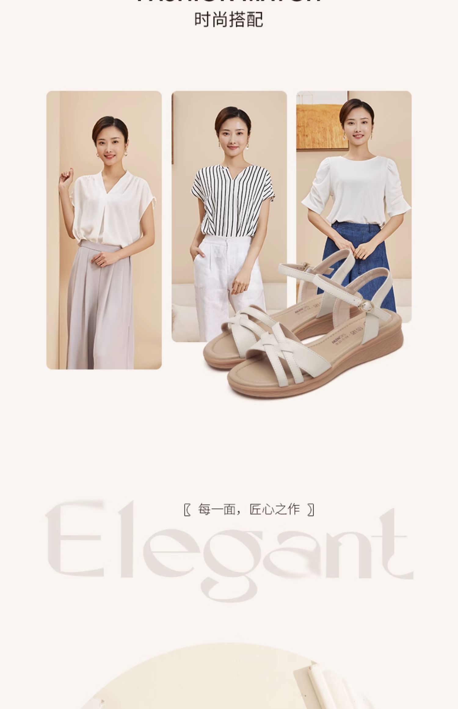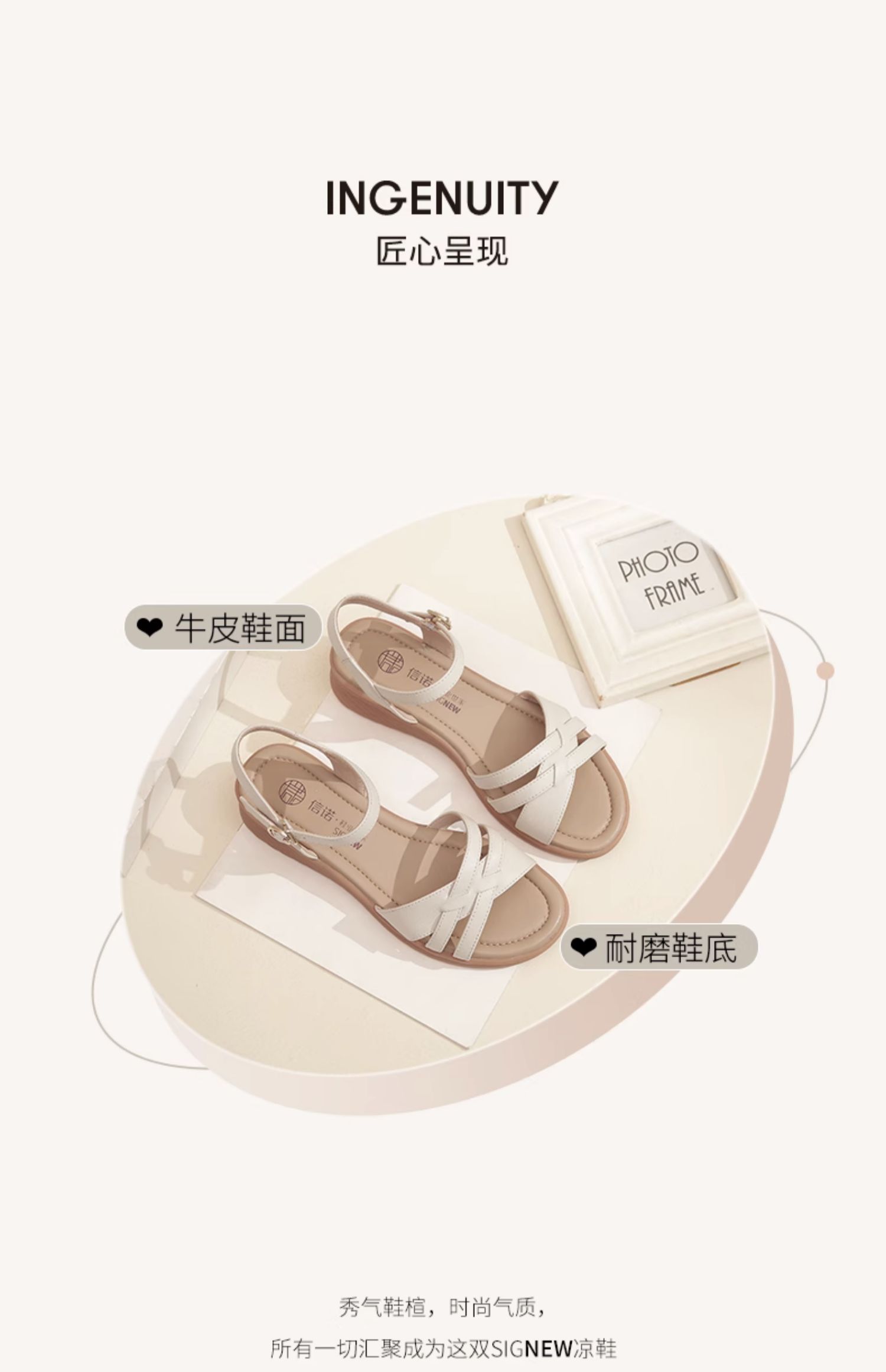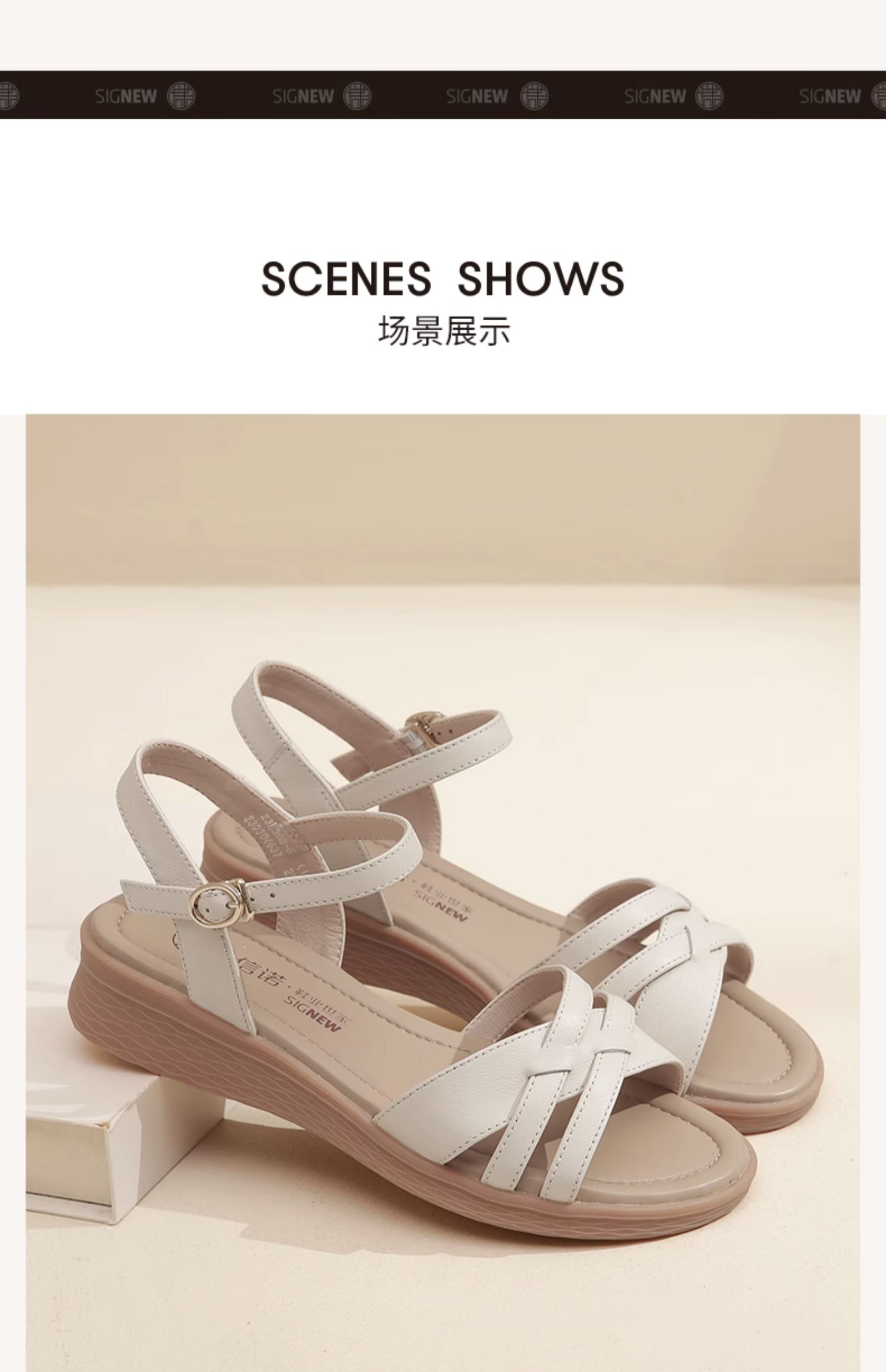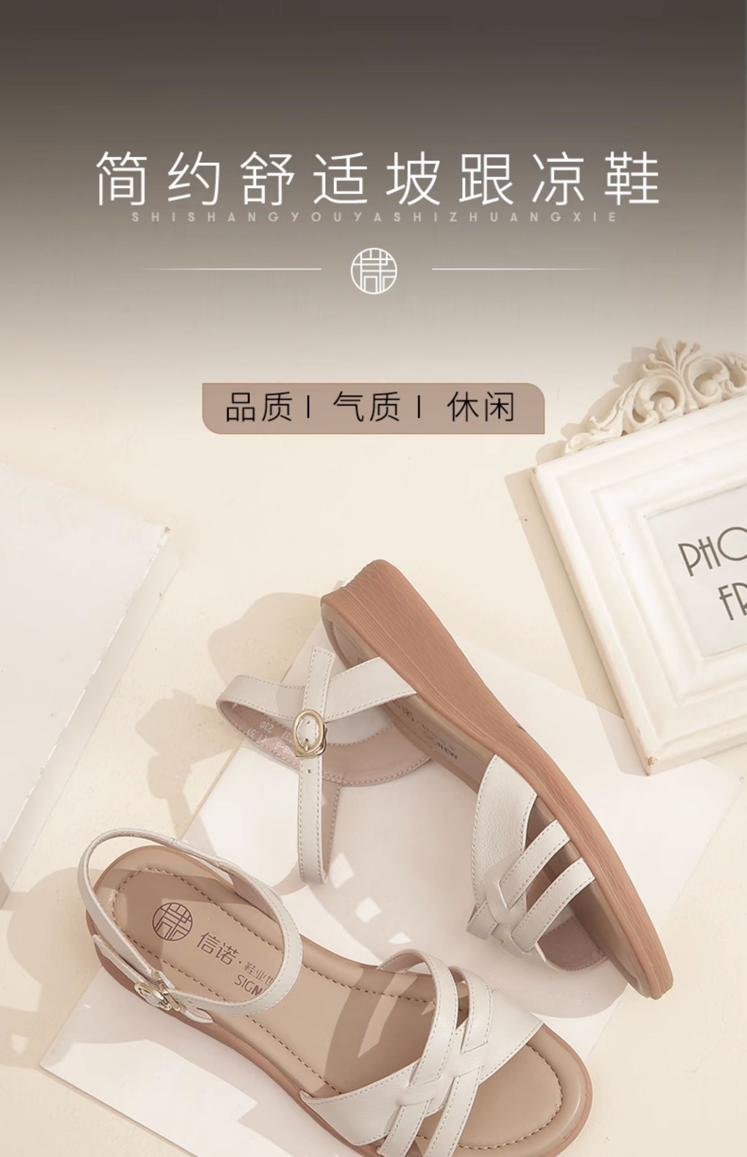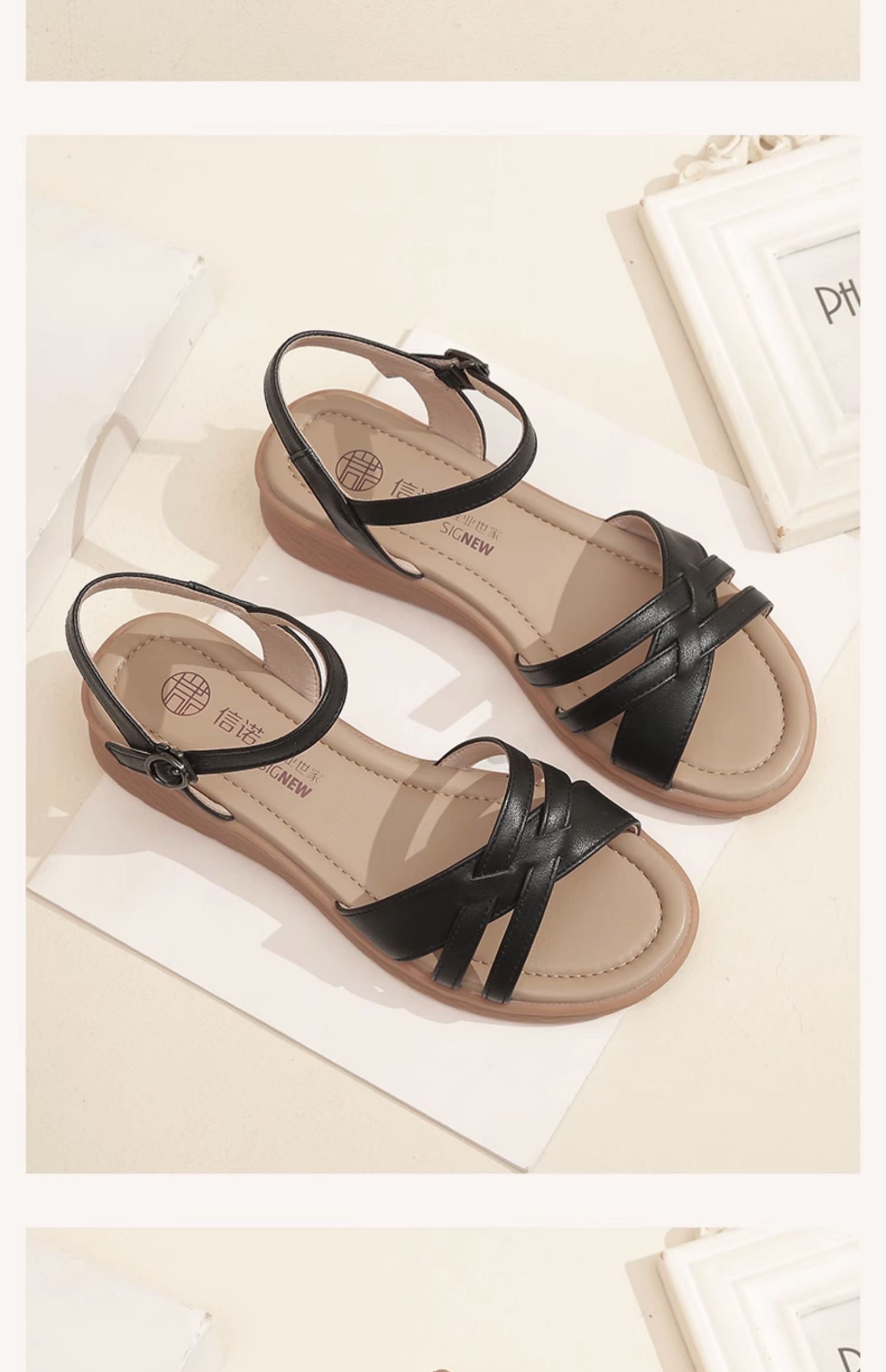 信诺真皮舒适中年妈妈凉鞋2023夏季新款软底坡跟防滑休闲百搭女鞋23L368-6