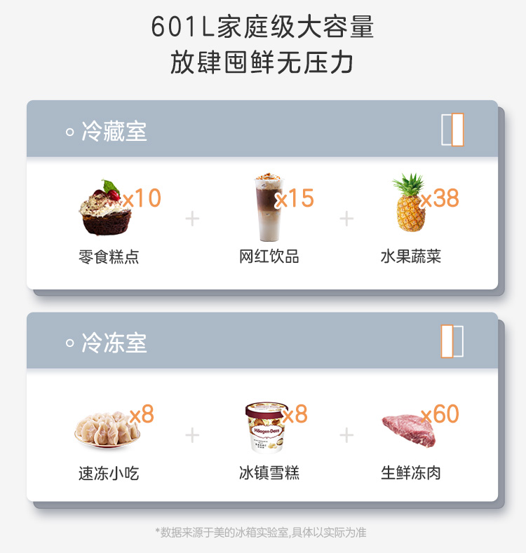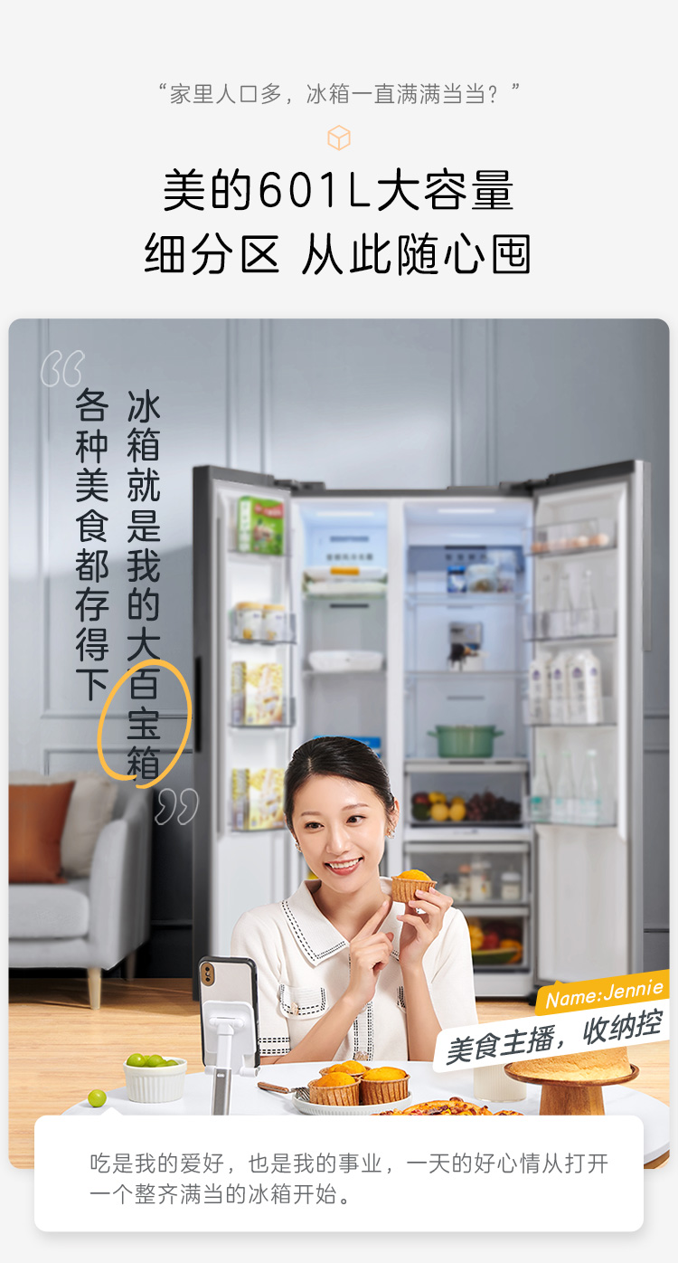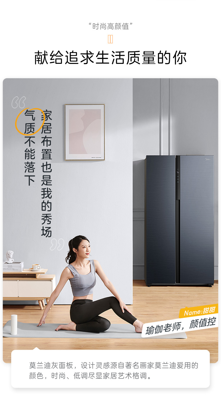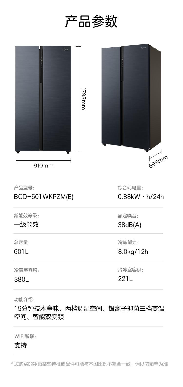 美的601L大容量双开门家用智能家用冰箱【LY】