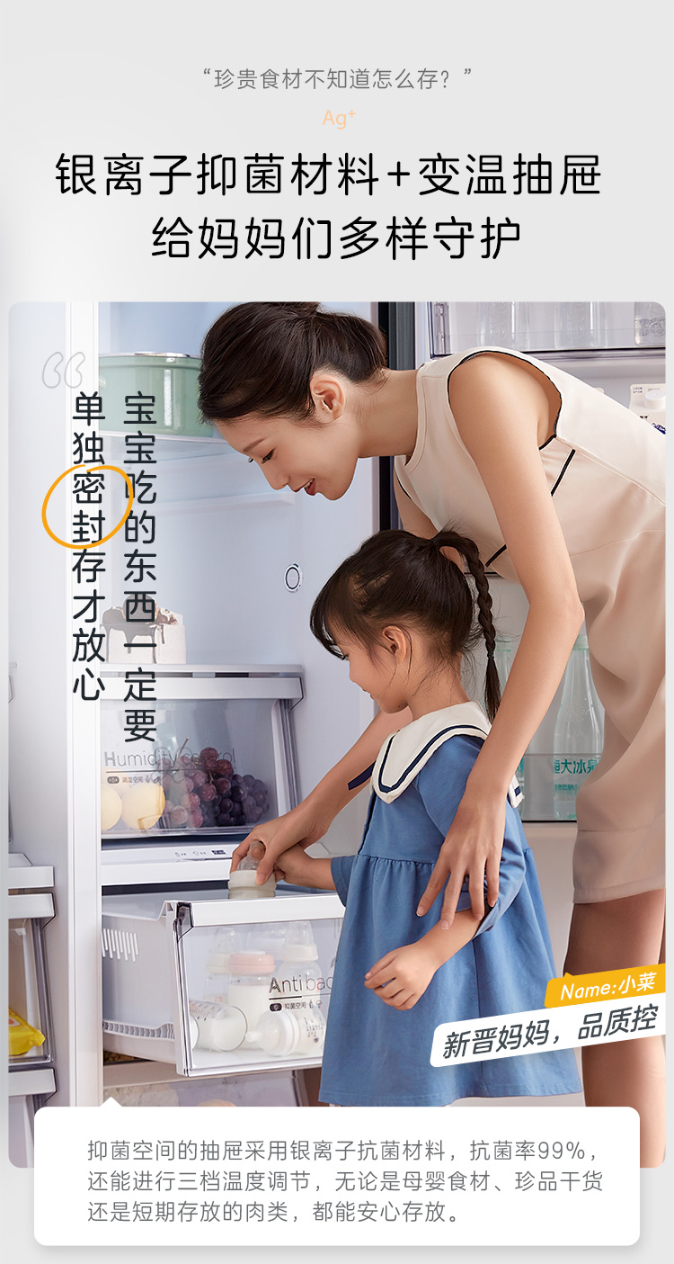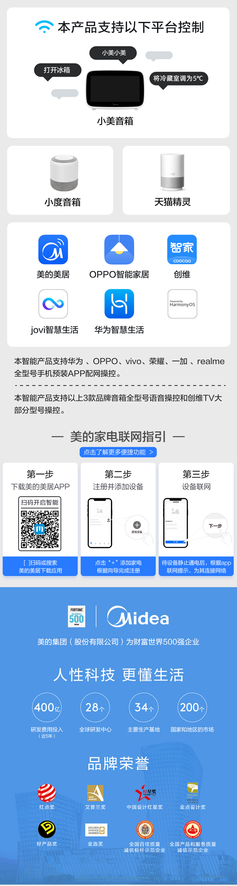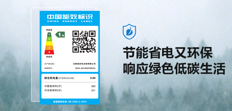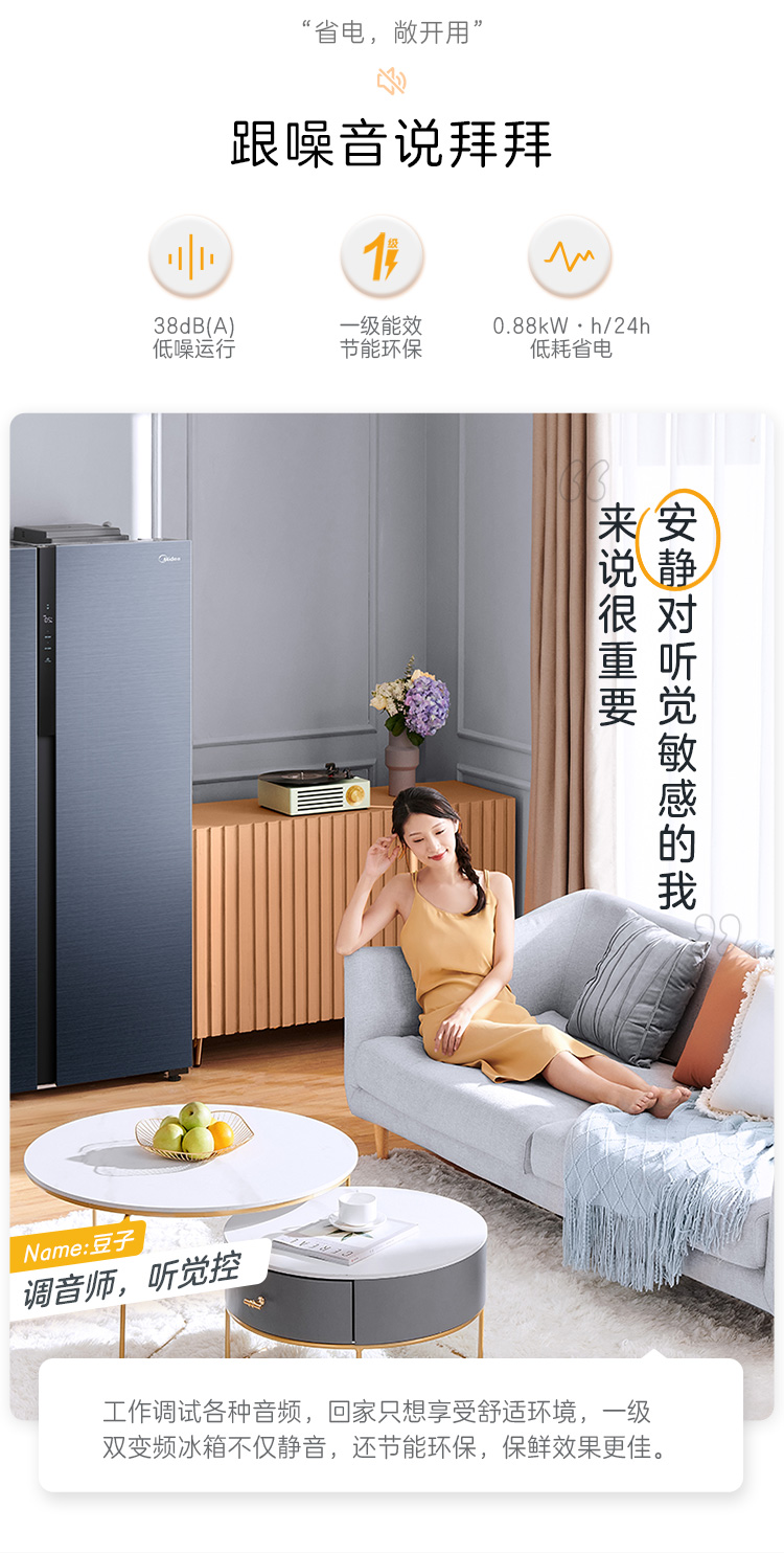 美的601L大容量双开门家用智能家用冰箱【LY】