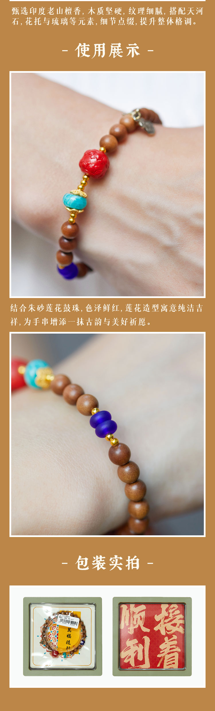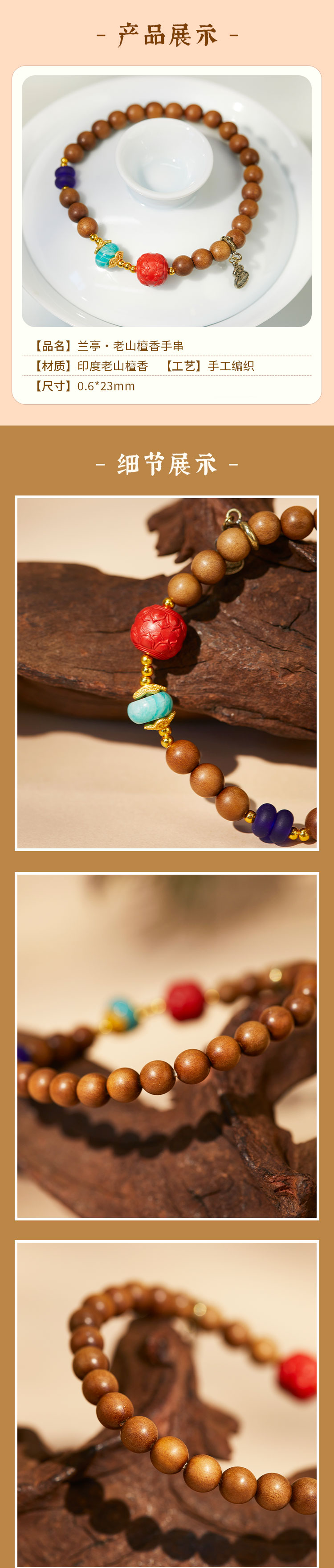 牛首山文创礼品兰亭·老山檀香单圈手串送闺蜜朋友手饰节日礼物