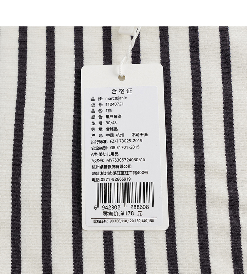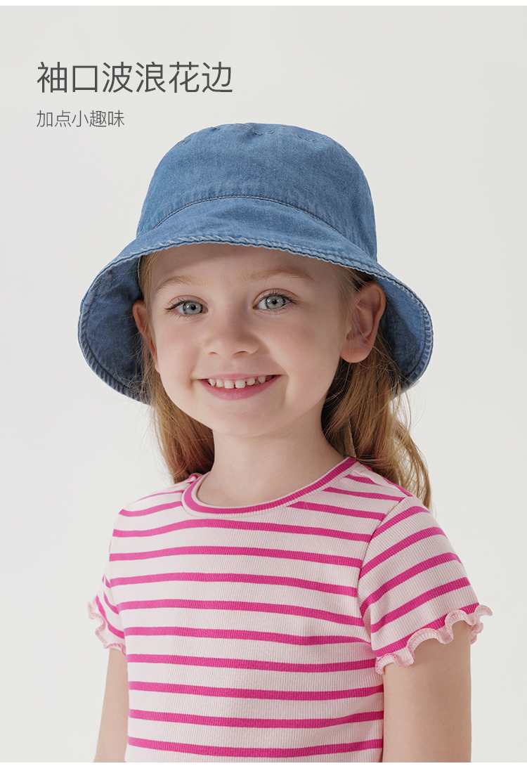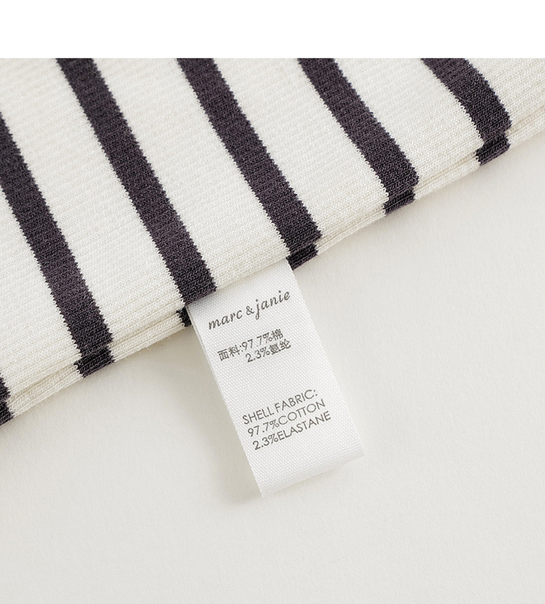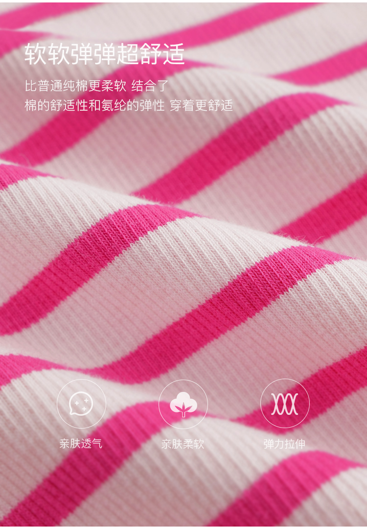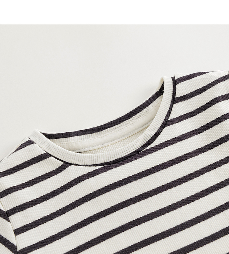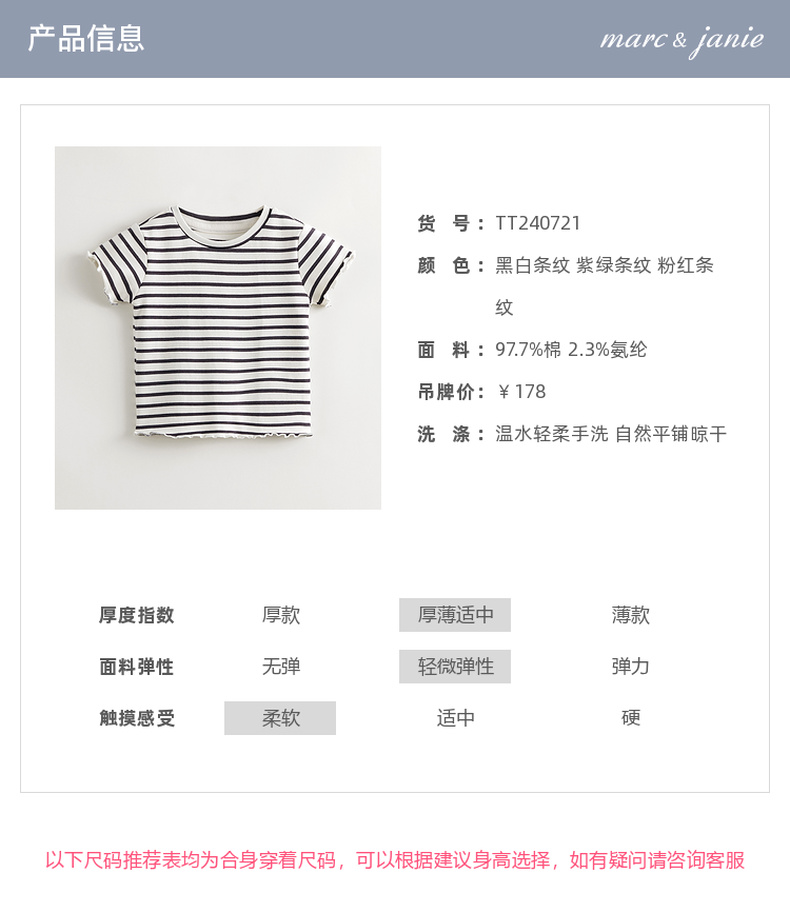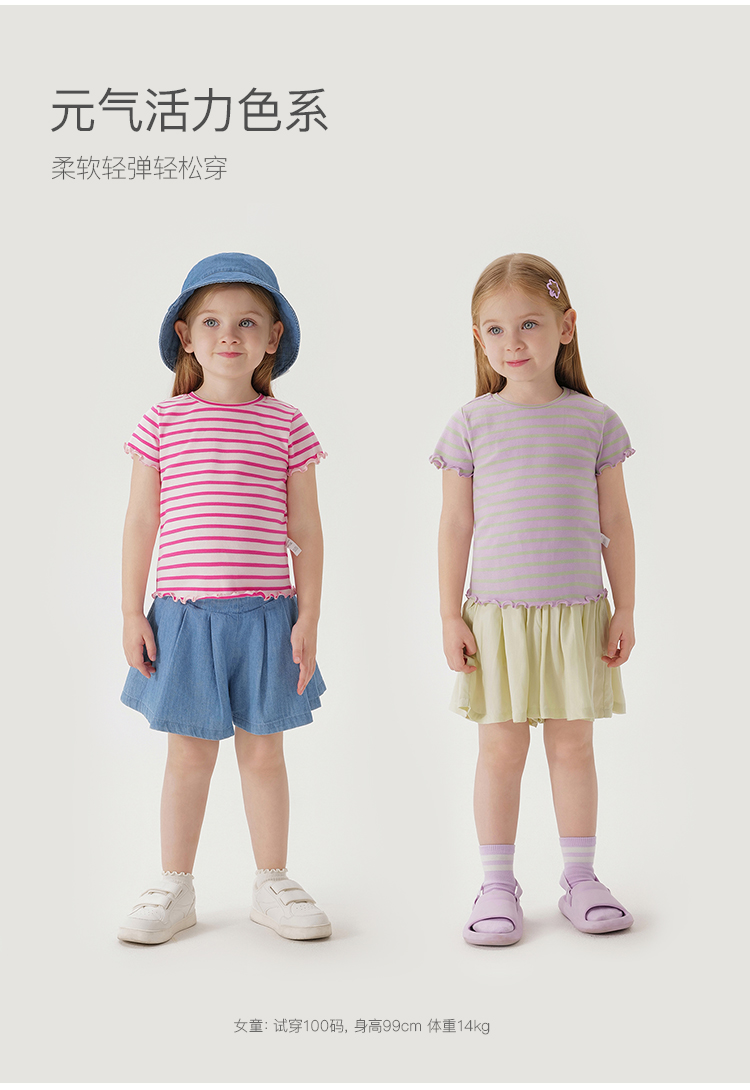 马克珍妮女童弹力针织波浪边条纹短袖T恤儿童上衣夏装新款240721