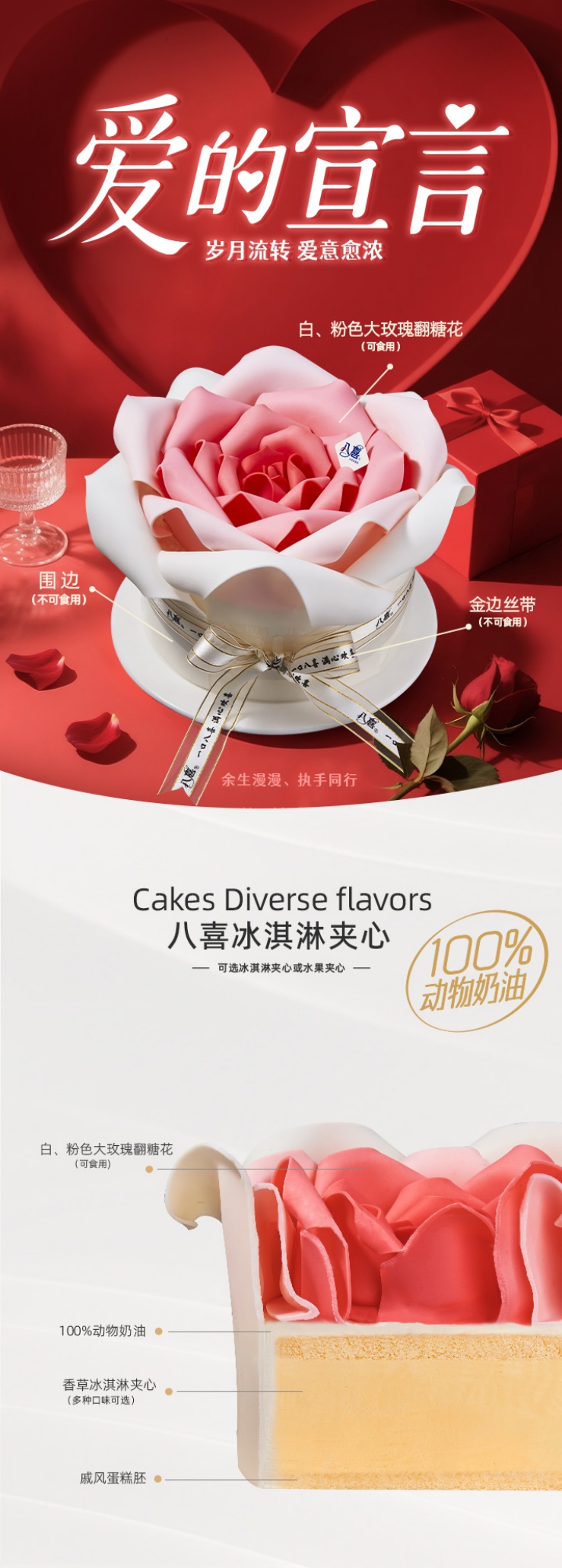 ⭐【心形渐变玫瑰】冰淇淋/水果生日蛋糕