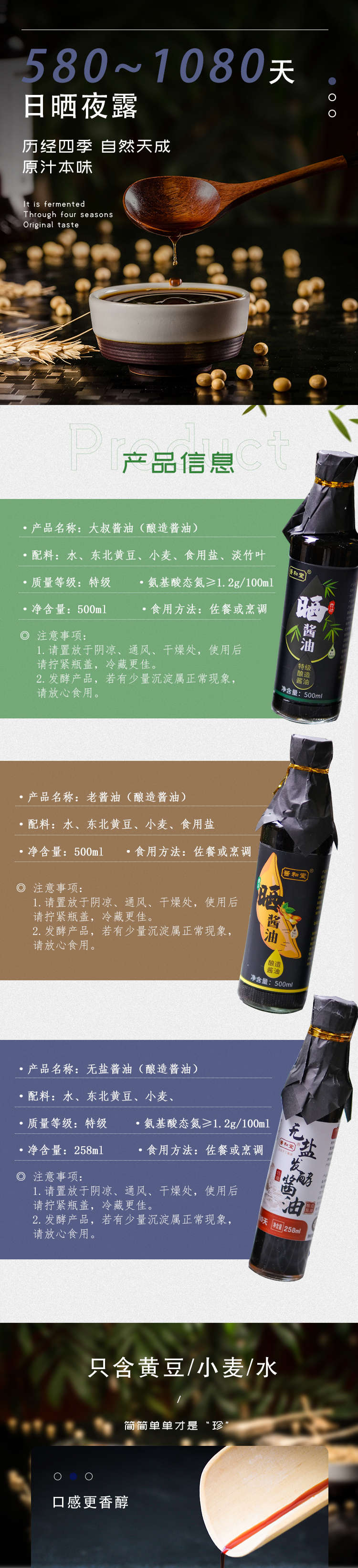 【古法酿造的匠人老爹酱油】1080天的竹580天的原汁酱油&580天的无盐酱油