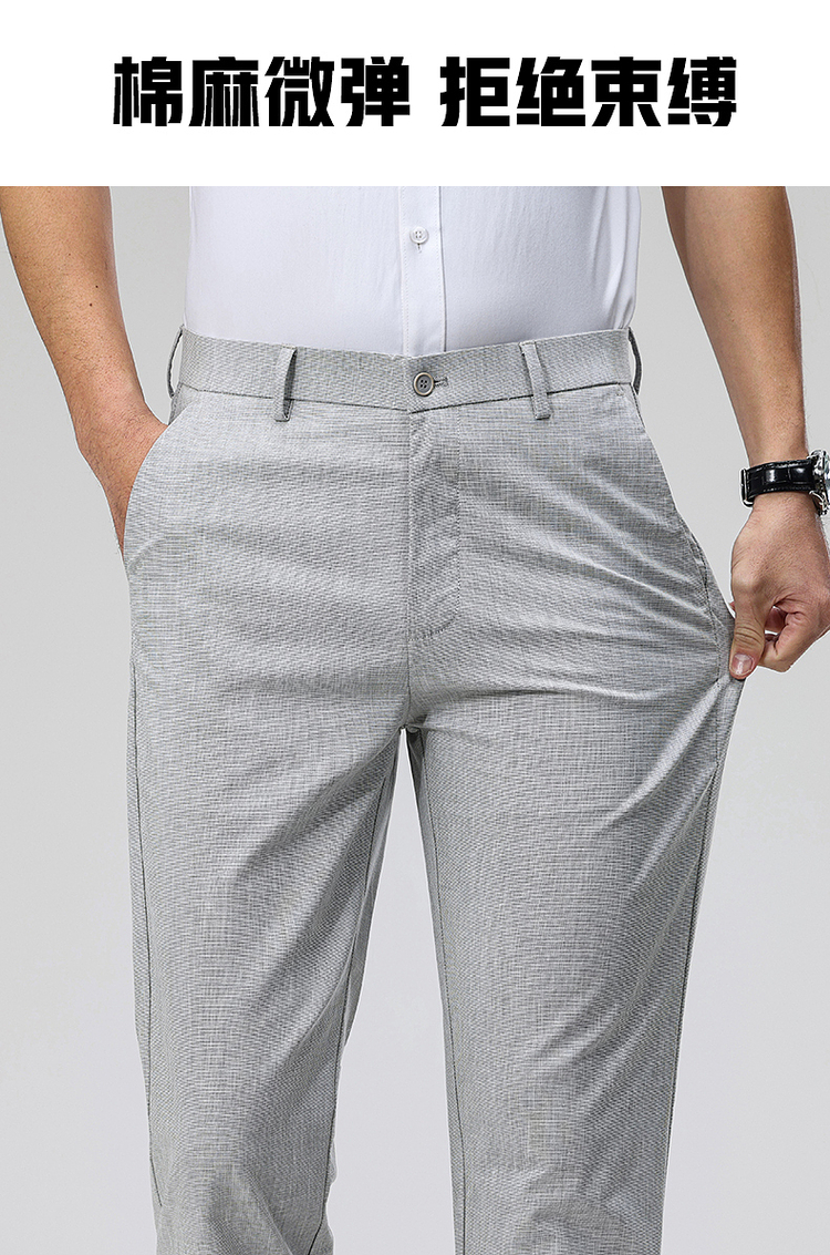 圣得西男士休闲裤夏季季商务休闲棉麻混纺舒适舒适男装长裤子男