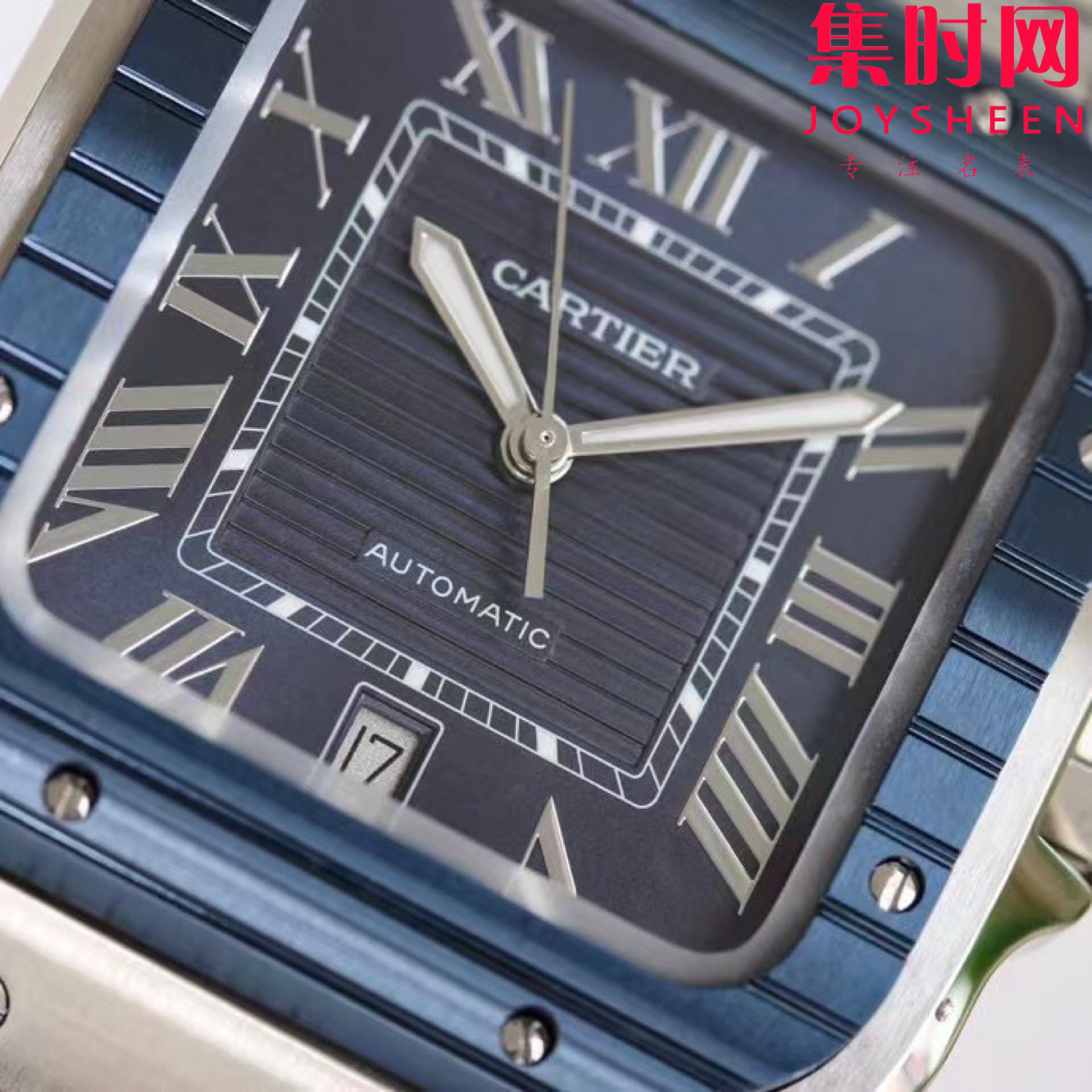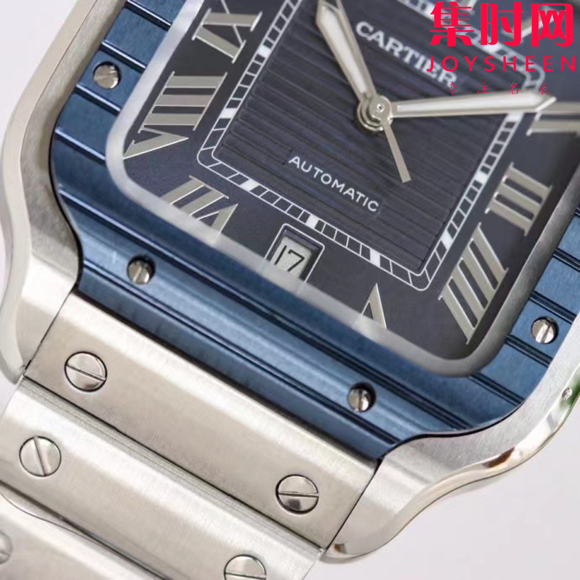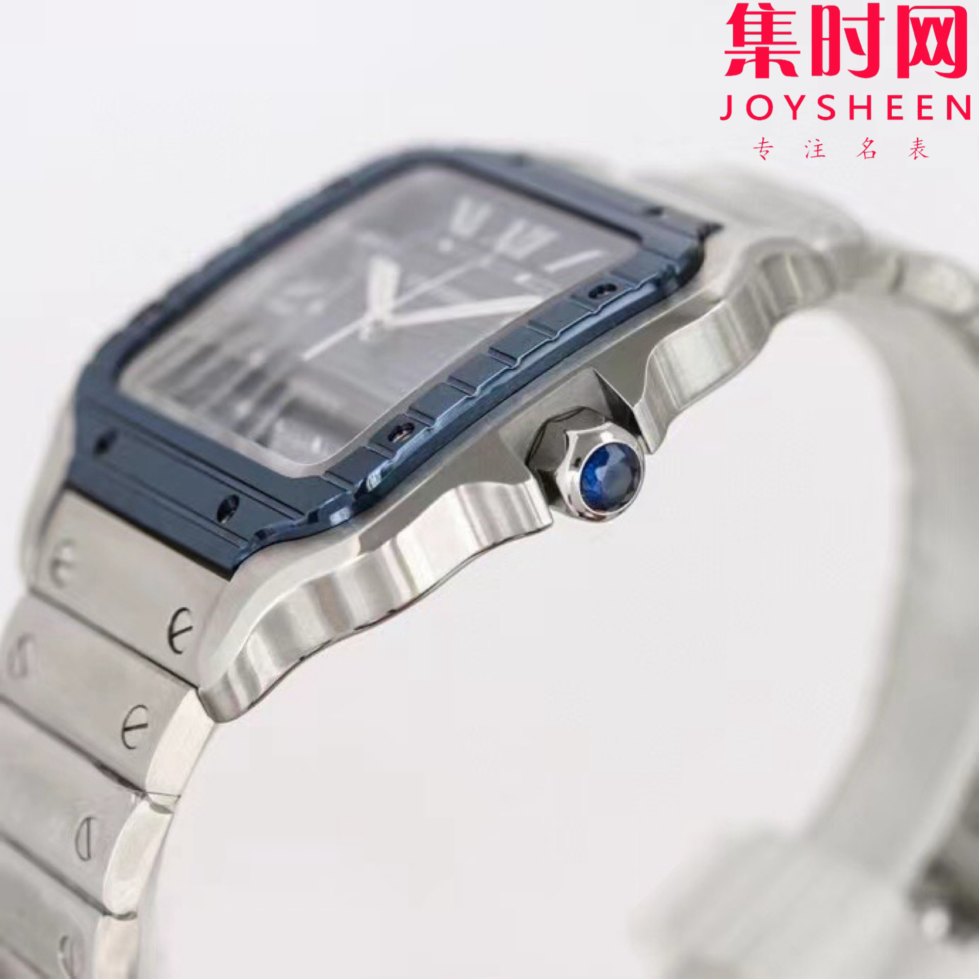 GF卡地亚山度士系列 山度士大号 钢带款 间蓝方形男士腕表 绝对是绕不开的经典 表径39.8mm,舒适感很不错。从细节上看,表冠镶有蓝色合成多切面尖晶石,增添了许多精致感。6点钟还设置了日期显示窗口。采用进口9015改Cal.1847 MC自动上链机械机芯,在稳定性和日常佩戴的可靠性上没有问题。防水达到100米。总的来说,这款山度士更适合那些既看重品牌调性,又希望腕表能兼顾实用性的用户。
