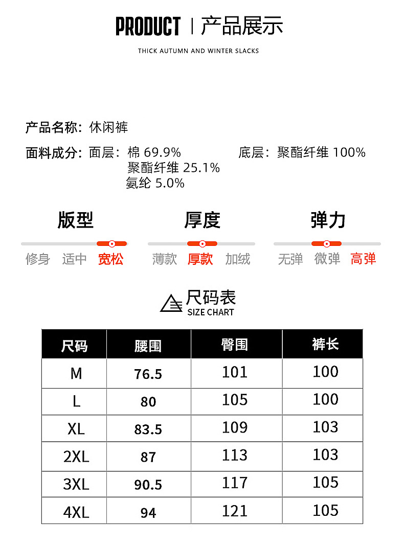 圣得西2024秋冬新款休闲运动裤宽松松紧腰棉质舒适加厚保暖长裤