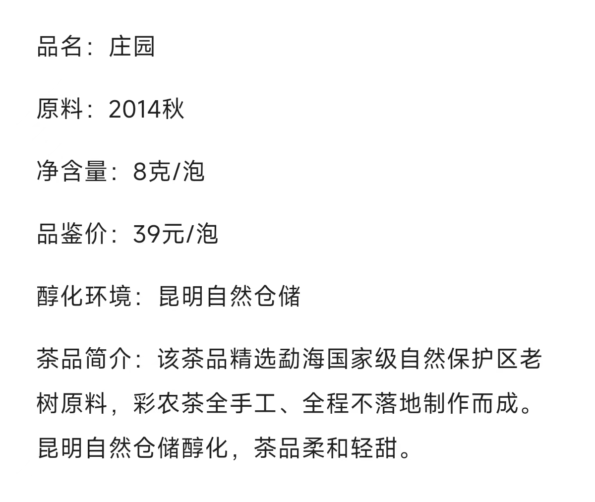 彩农茶·清客普洱丨2014秋庄园(8克)