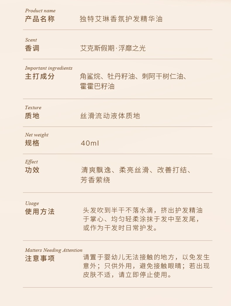 【品牌直发】Dr.Iream独特艾琳香氛护发精油40ml 艾克斯假期 柔顺滑留香柔亮护发精华油