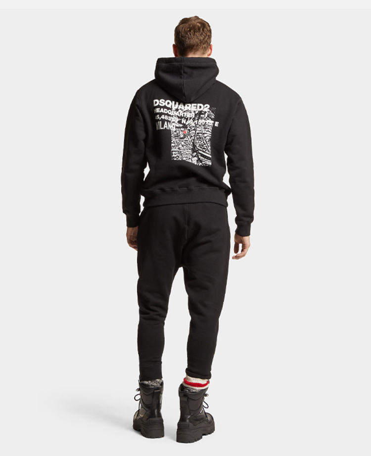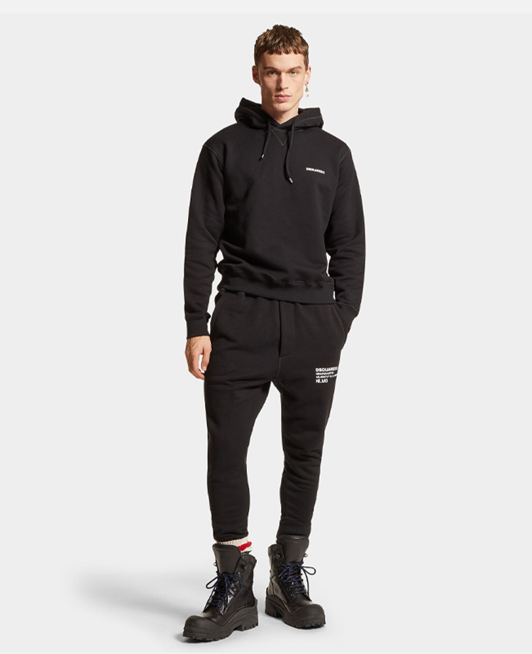 【二】DSQUARED2 男士字母徽标印花棉质休闲运动裤 黑色 S74KB0967 S25516 900