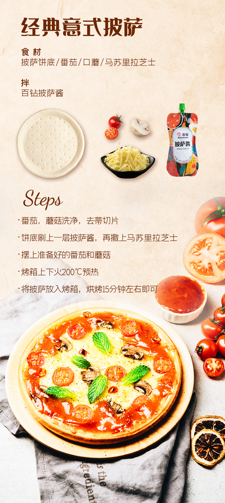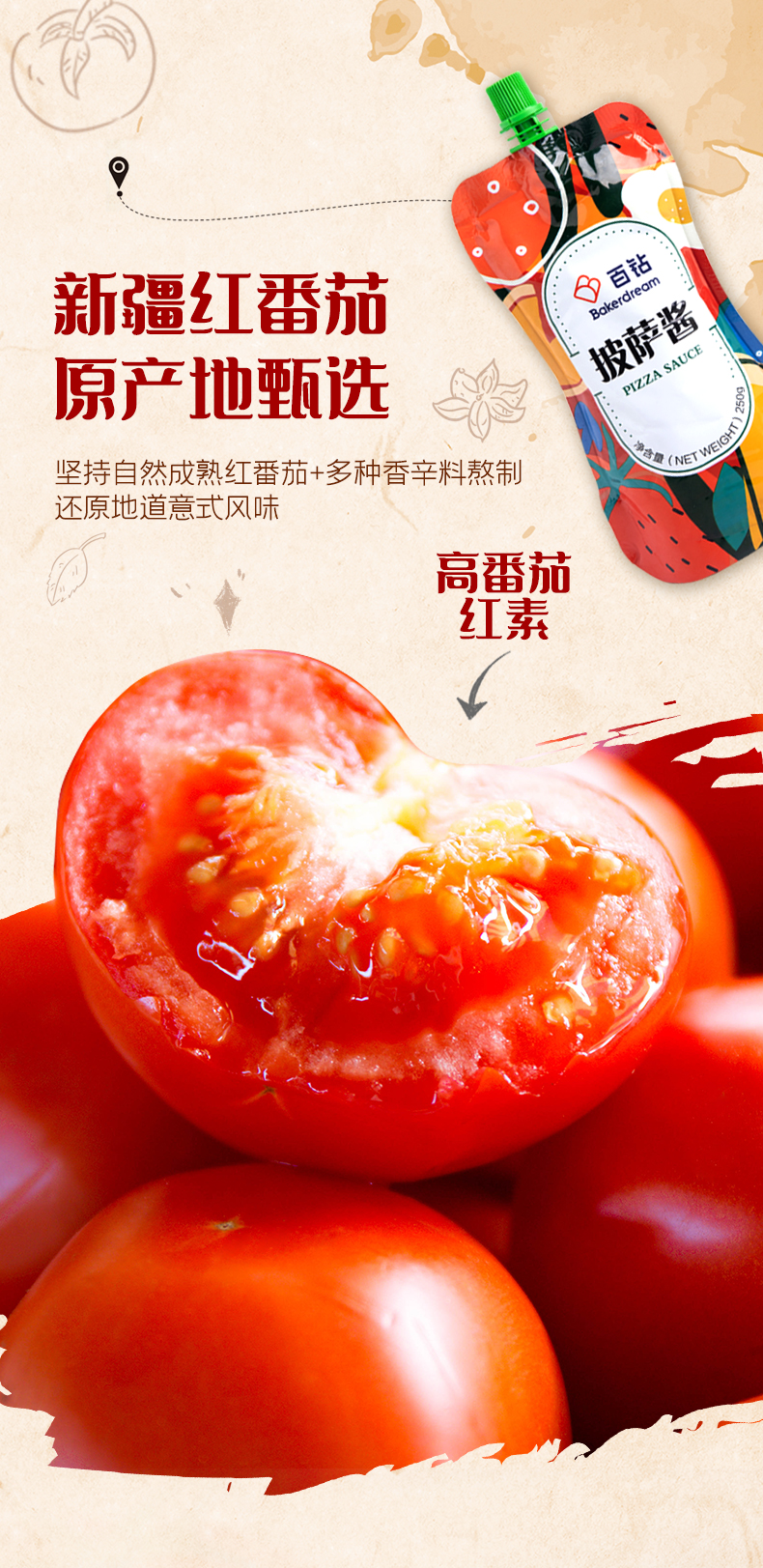 (袋装)百钻披萨酱 250g 家用做pizza意式烘焙原料意大利面调味酱料