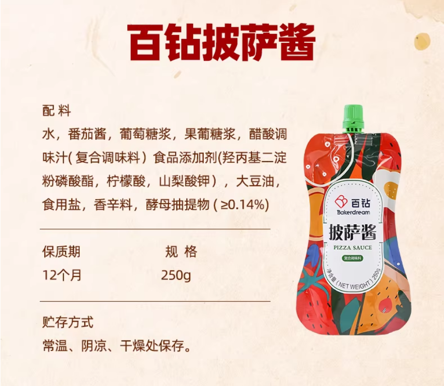 百钻披萨酱 250g 家用做pizza意式烘焙原料意大利面调味酱料