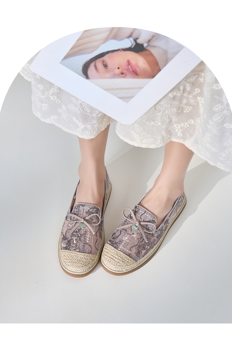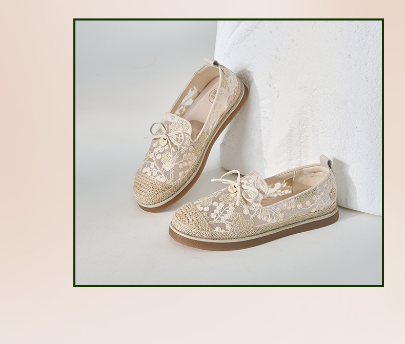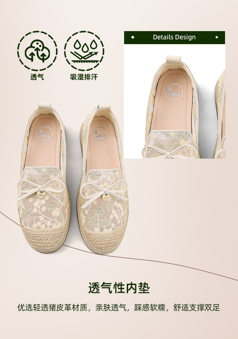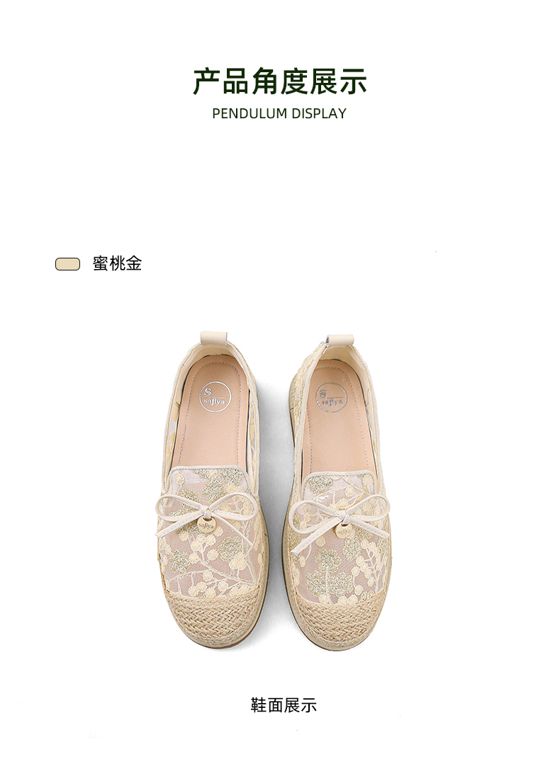 Safiya/索菲娅2024春镂空蕾丝透气休闲平底渔夫鞋 SF41112031
