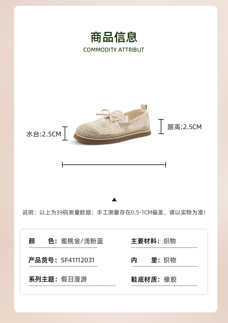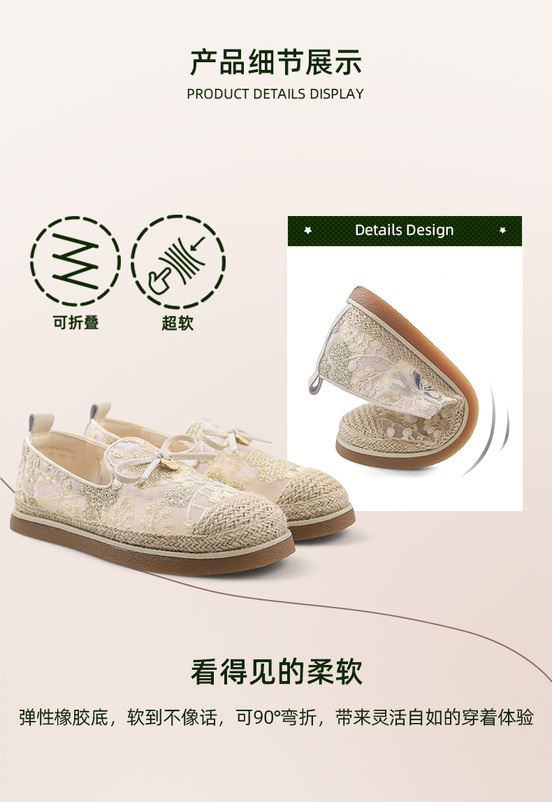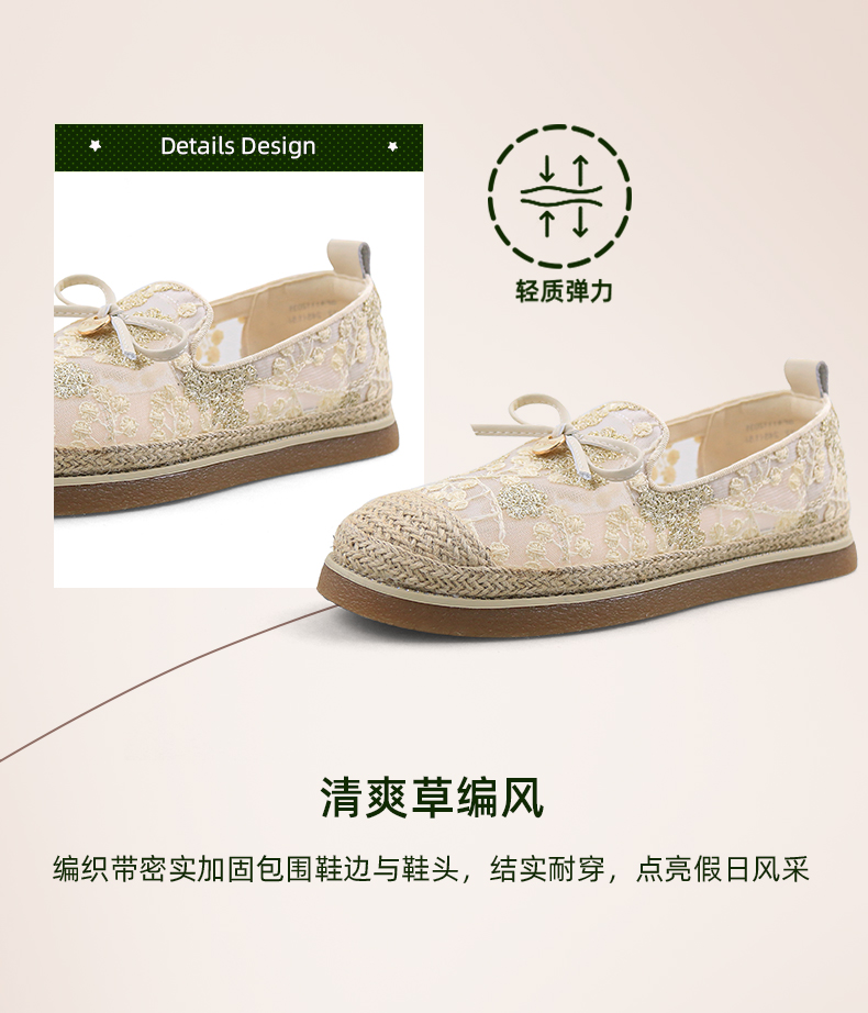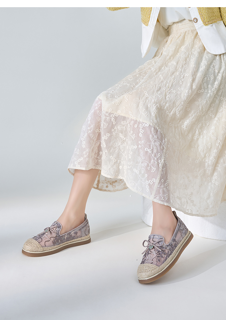 Safiya/索菲娅2024春镂空蕾丝透气休闲平底渔夫鞋 SF41112031
