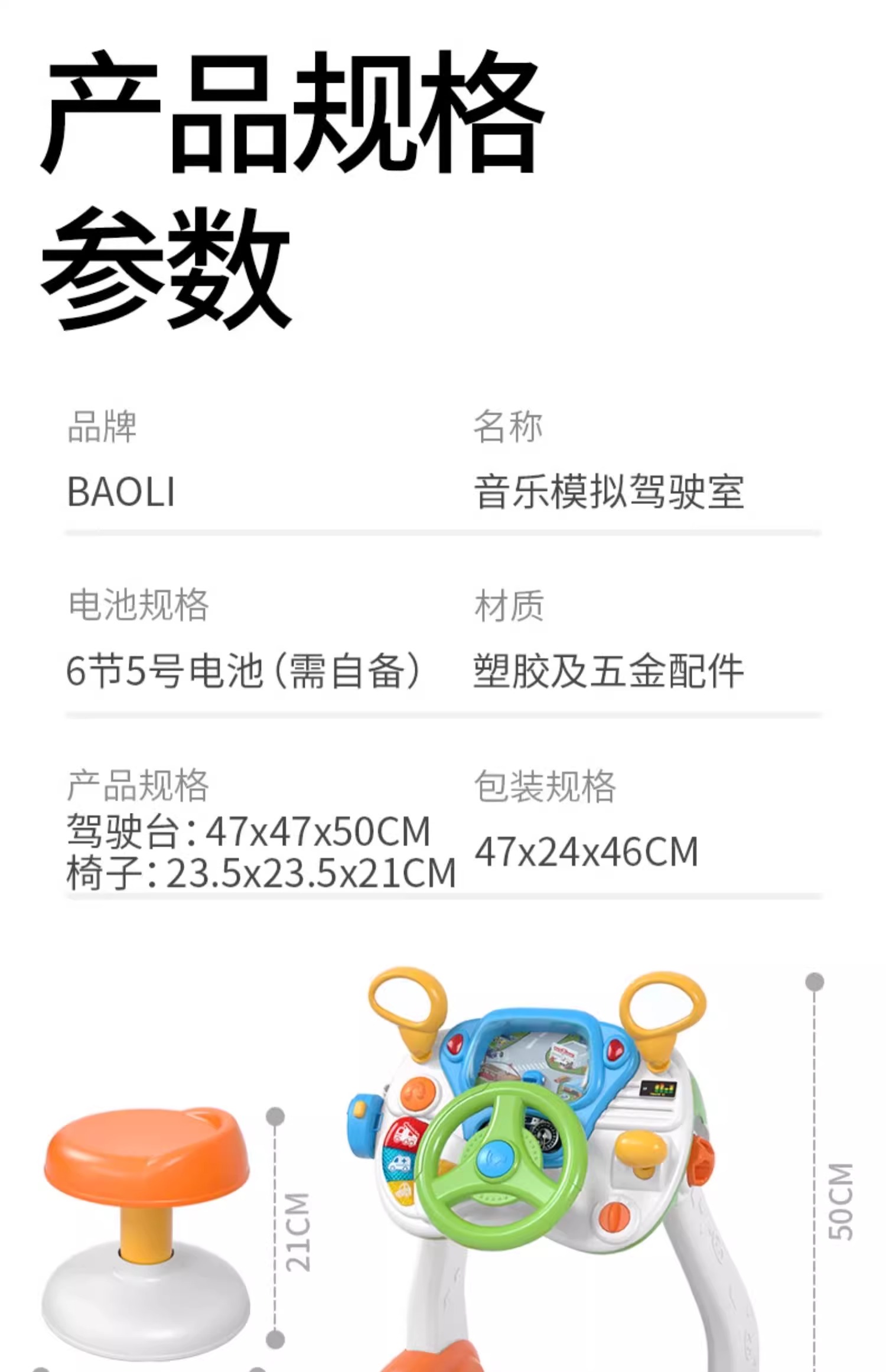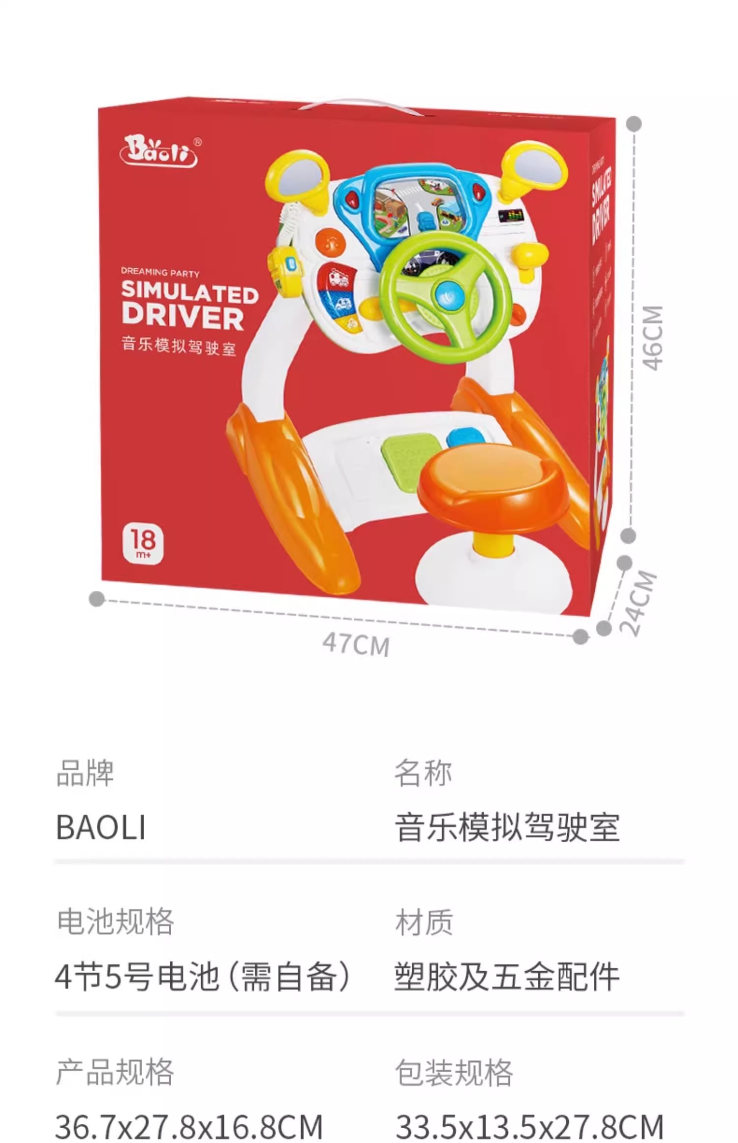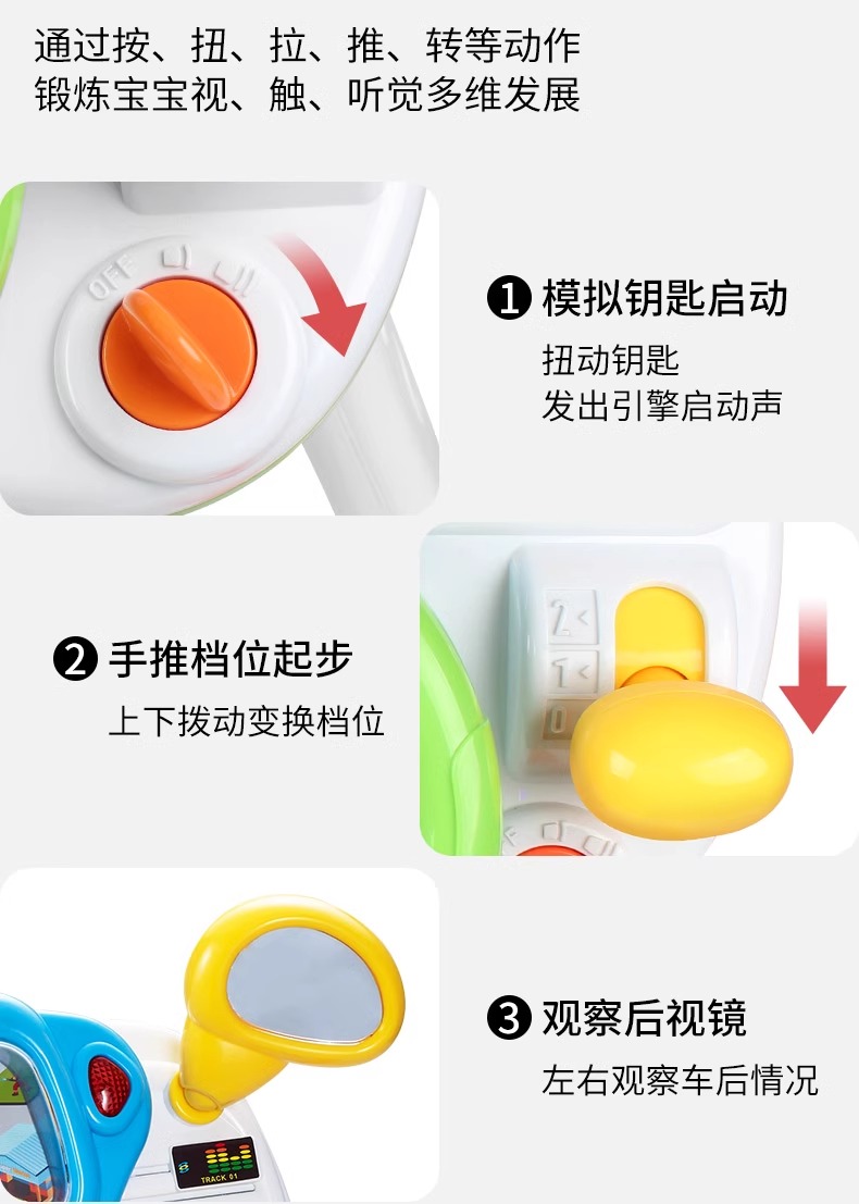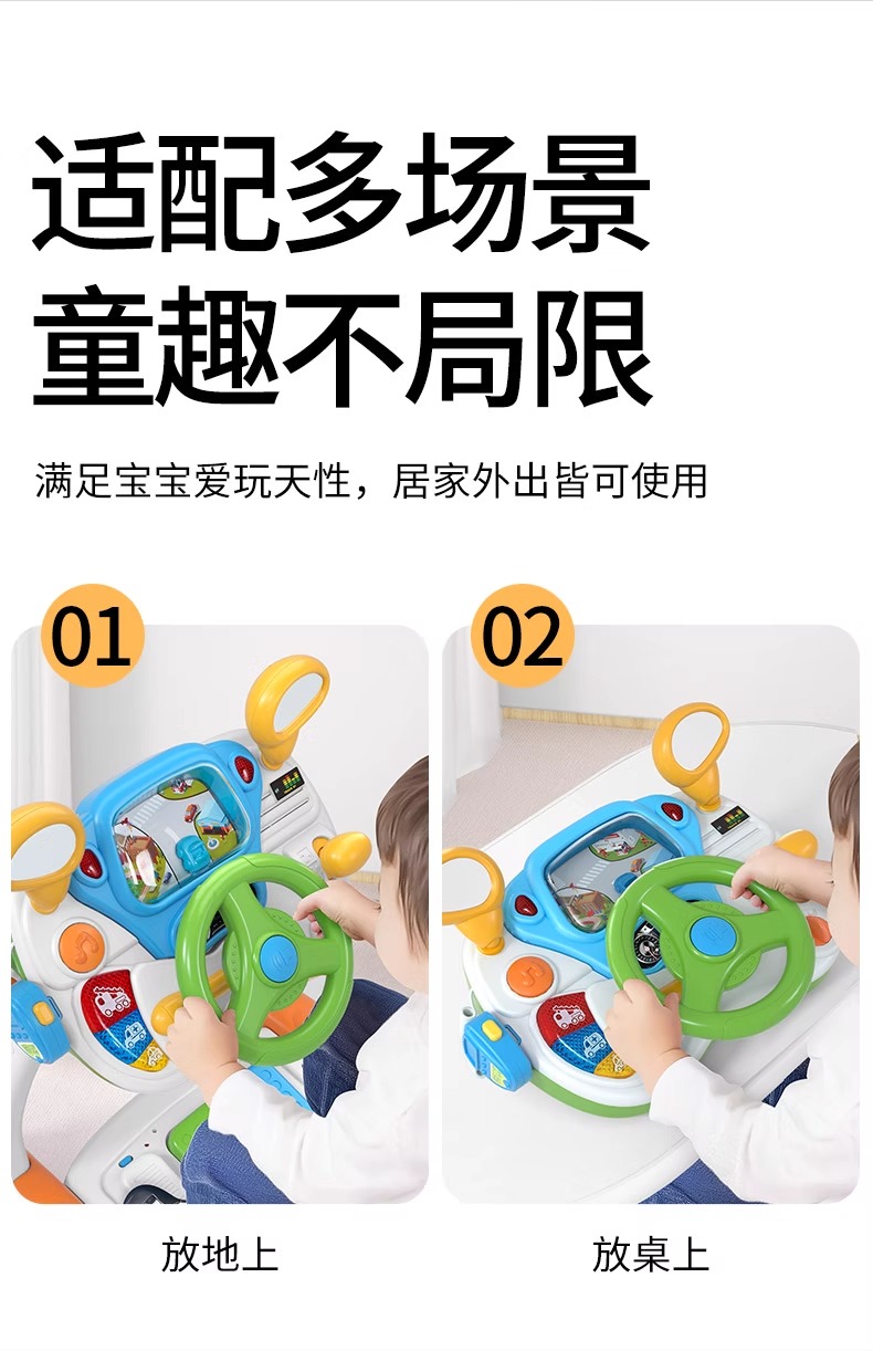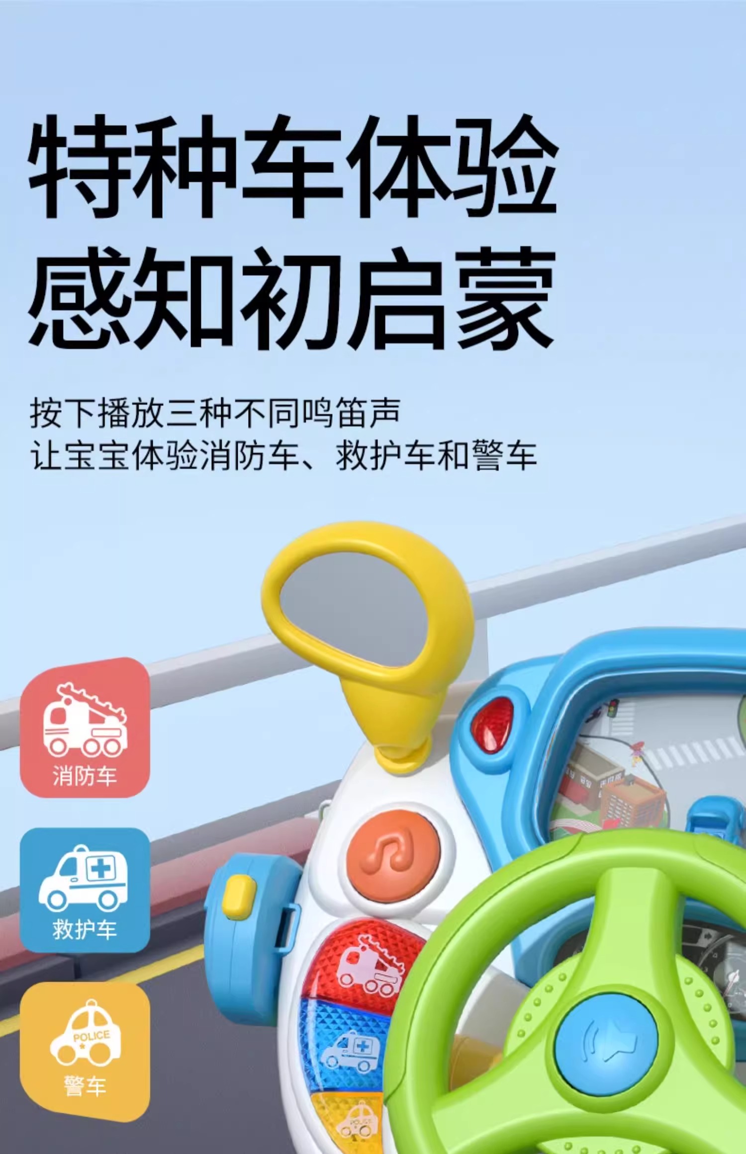 宝丽儿童方向盘玩具宝宝2一岁3蒙氏早教男女孩副驾驶仿真模拟驾驶