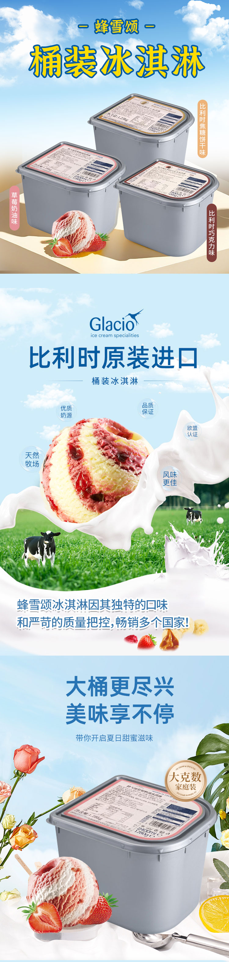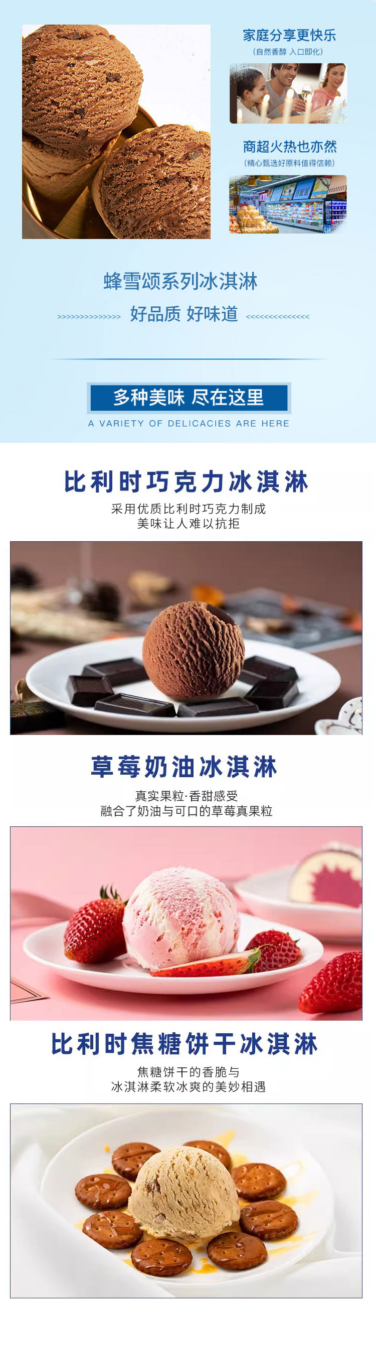 比利时进口蜂雪颂比利时冰淇淋1.2kg--1.28kg/盒【巧克力|草莓奶油|焦糖饼干】