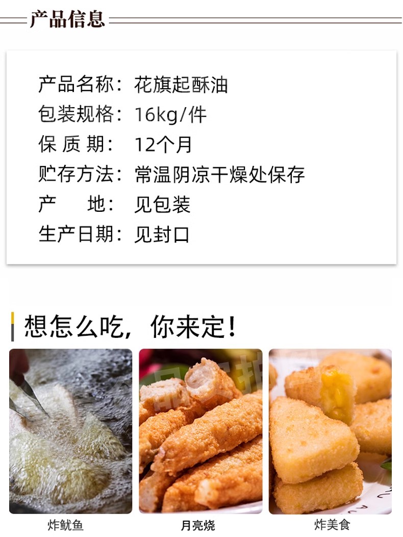 16kg 花旗起酥油 F 商用汉堡韩式炸鸡薯条油条酥饼小吃专用起酥油