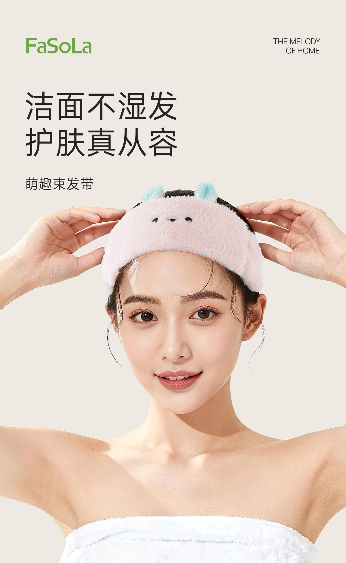 FaSoLa可爱卡通毛绒发带女秋冬洗脸防水防滑头巾捆头发饰品萌趣束发带