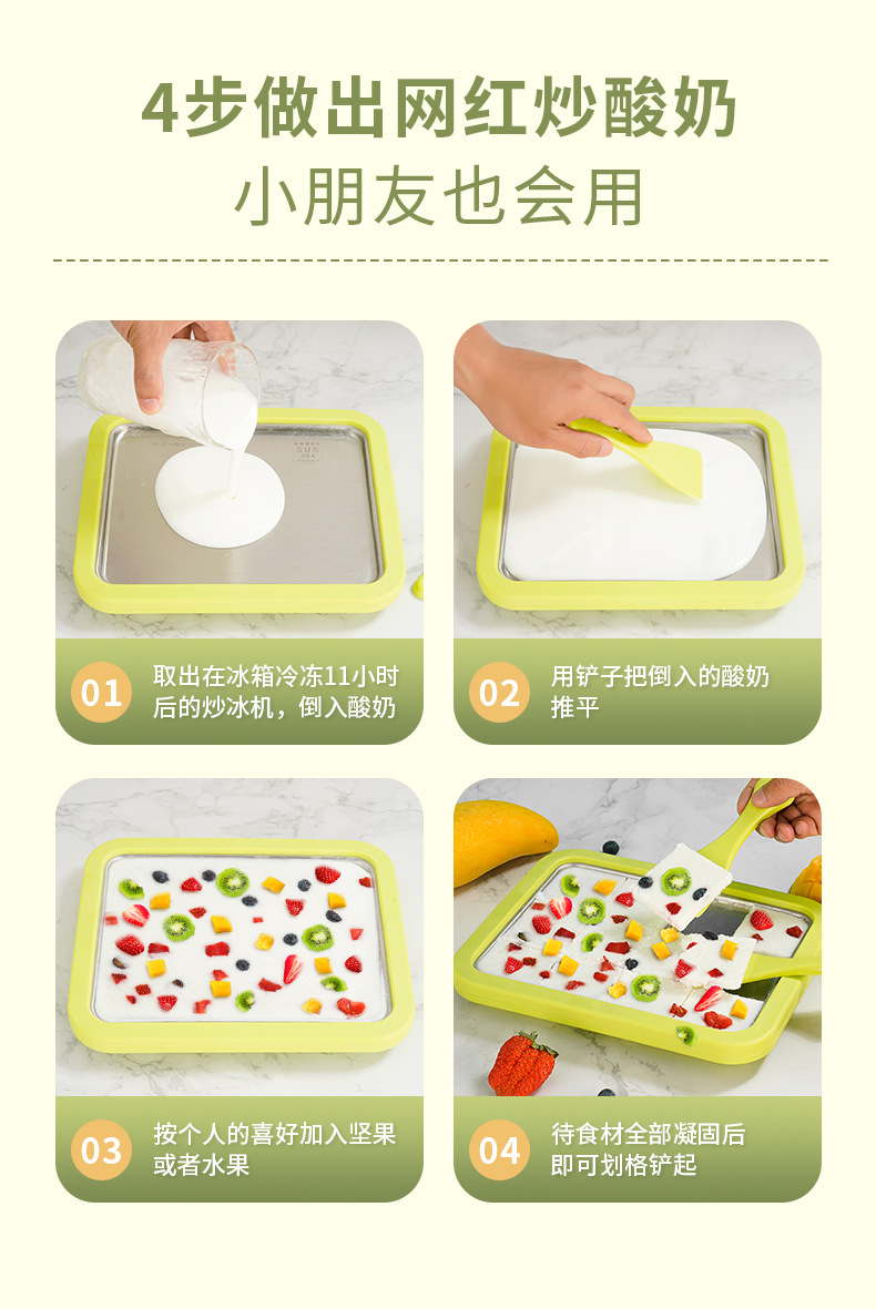 【欢乐炒冰小能手】新款 家用炒酸奶机 迷你炒冰机 小型儿童 自制夏季冰淇淋 不锈钢炒冰盘 不插电更安全
