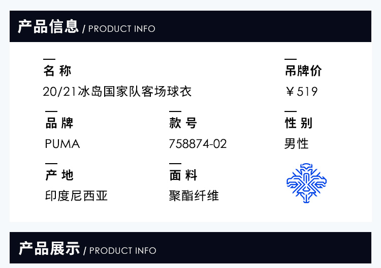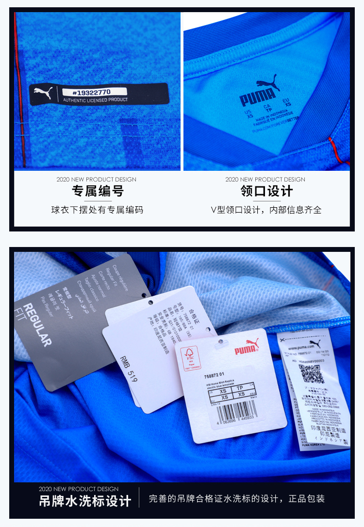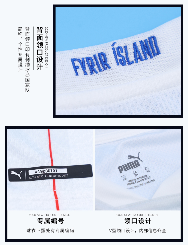 【送球员印号】SFS彪马正品2020冰岛客场球迷版短袖足球服758874-02