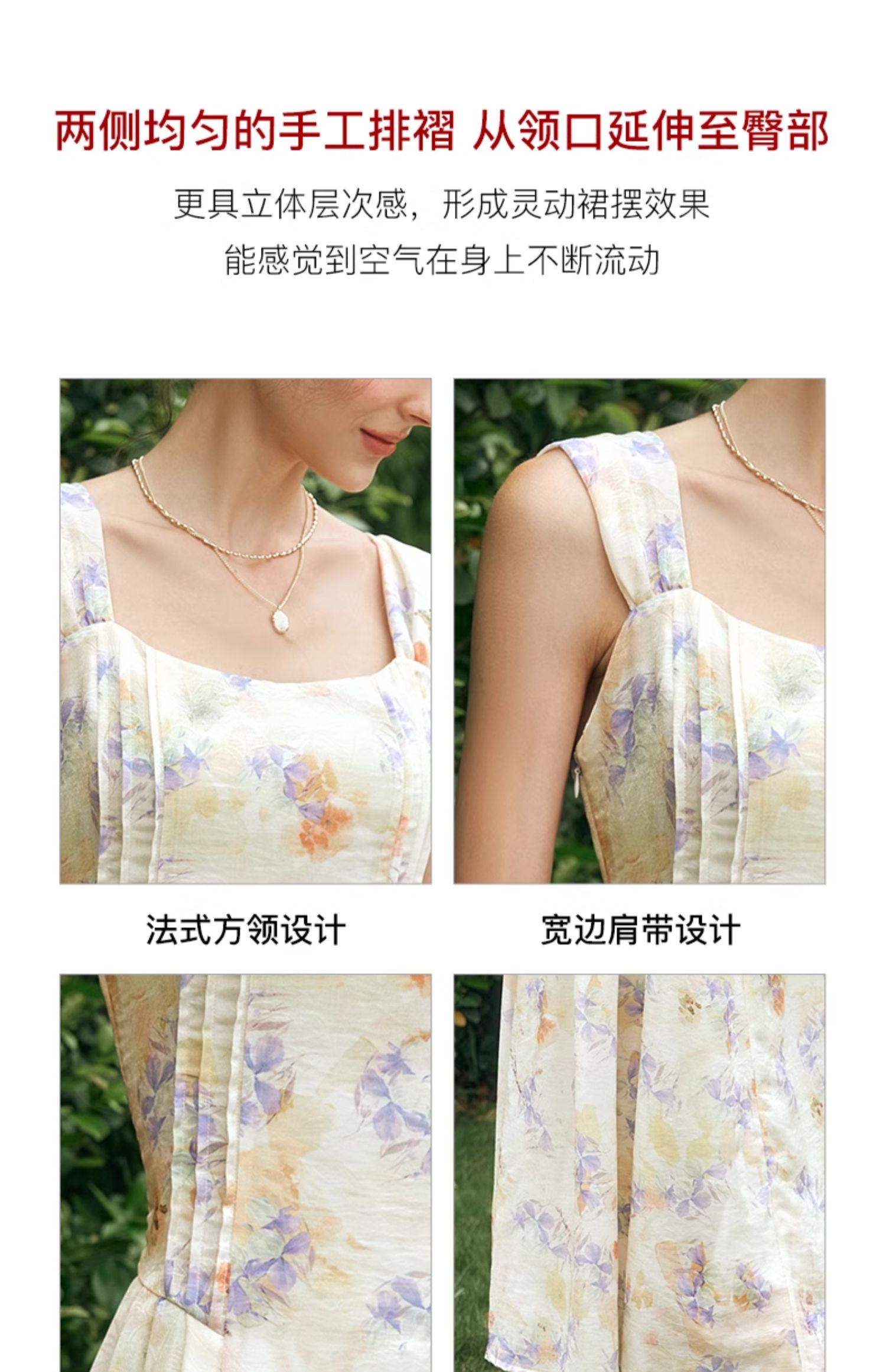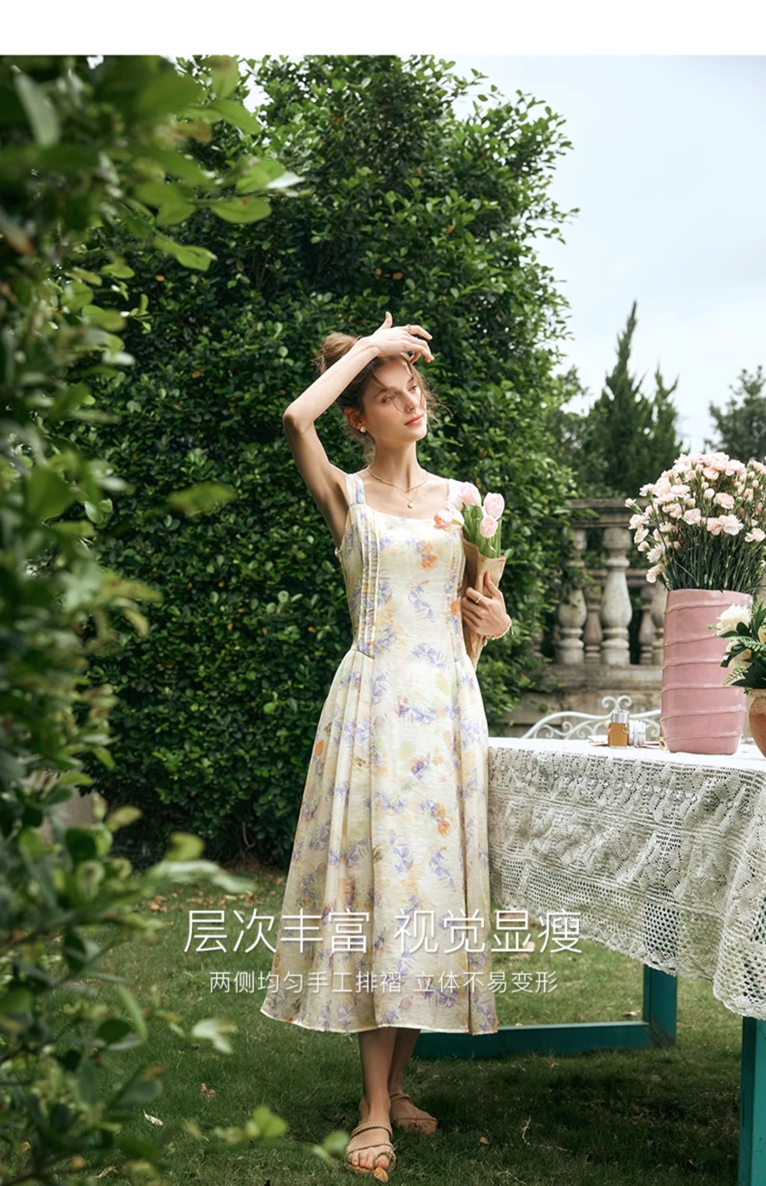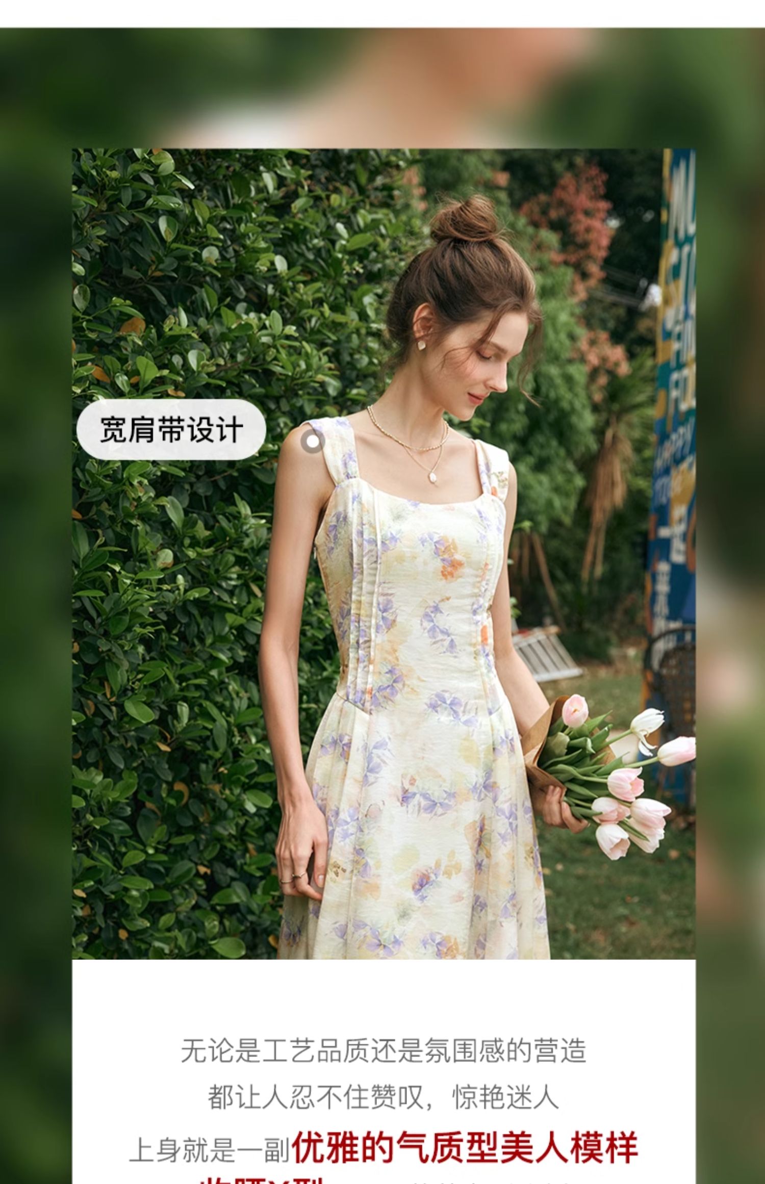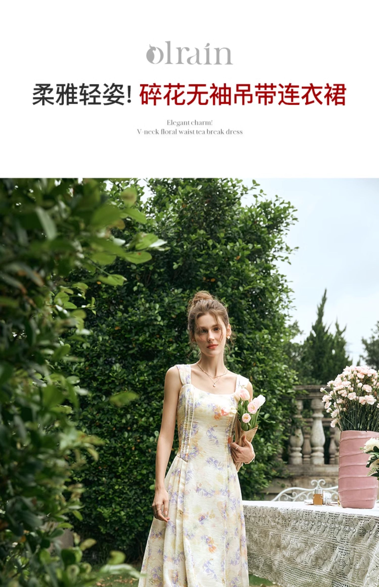 OLrain欧芮儿法式茶歇连衣裙女夏季2024新款无袖度假风碎花A字裙