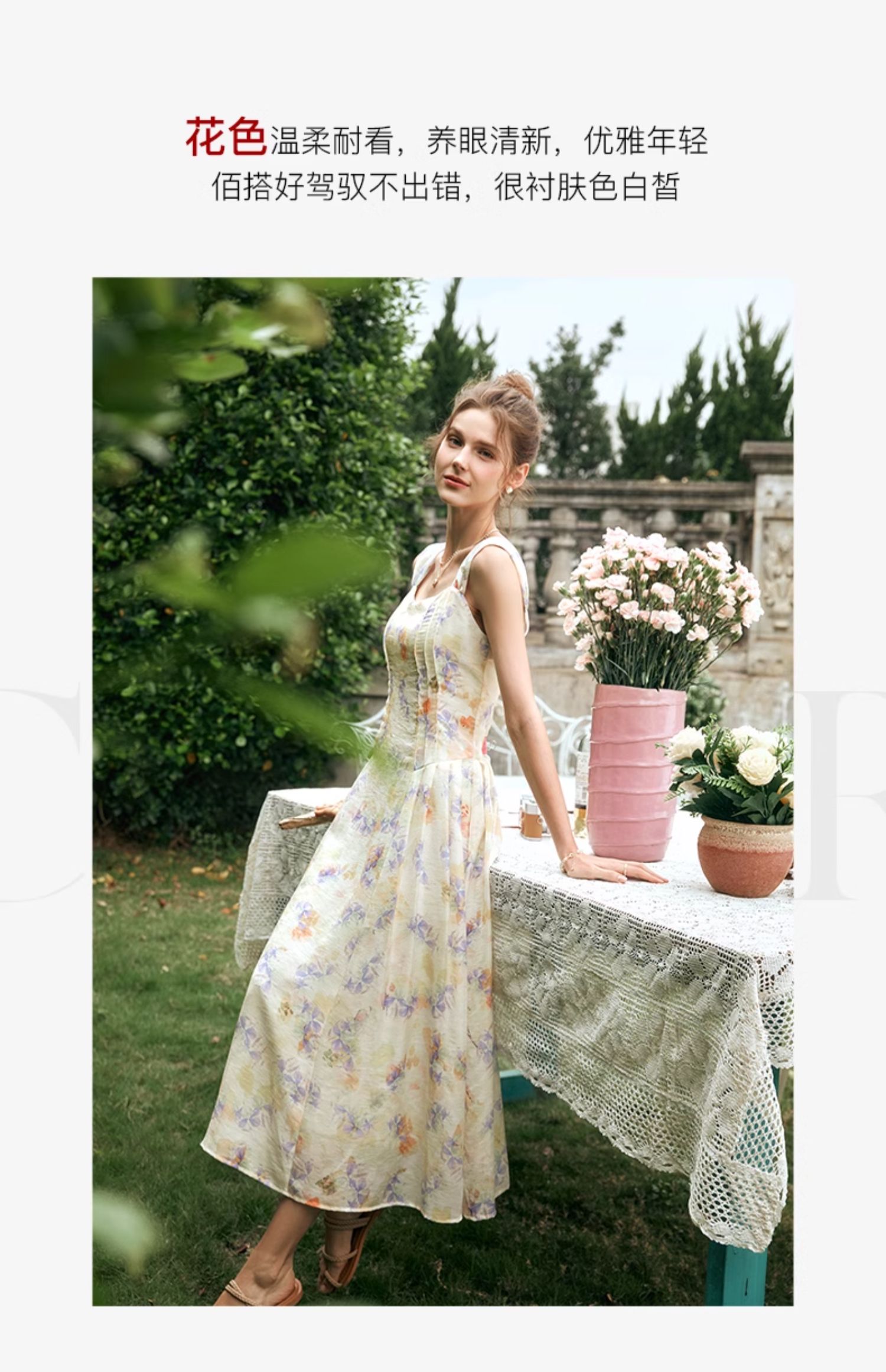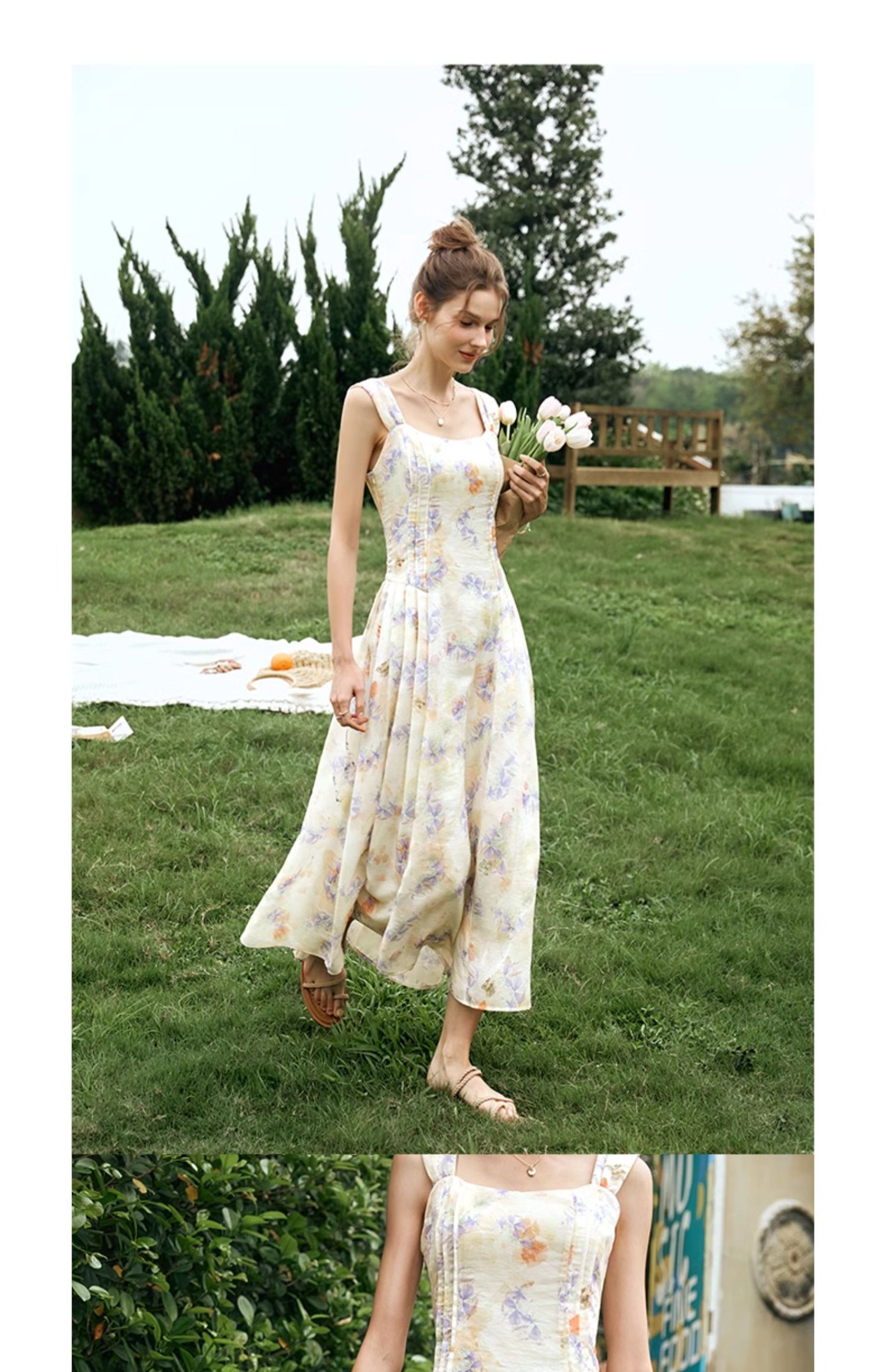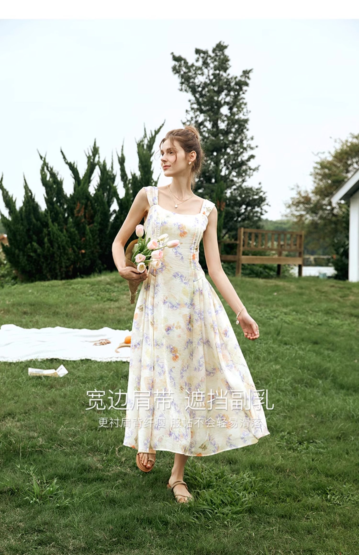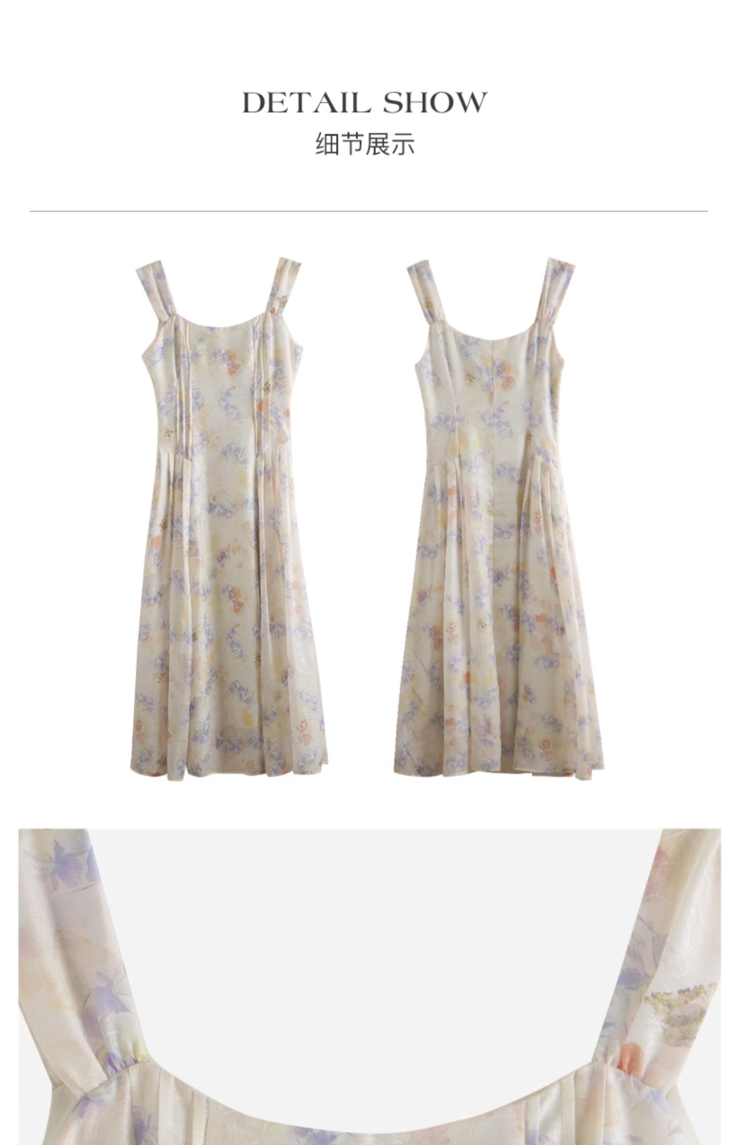 OLrain欧芮儿法式茶歇连衣裙女夏季2024新款无袖度假风碎花A字裙
