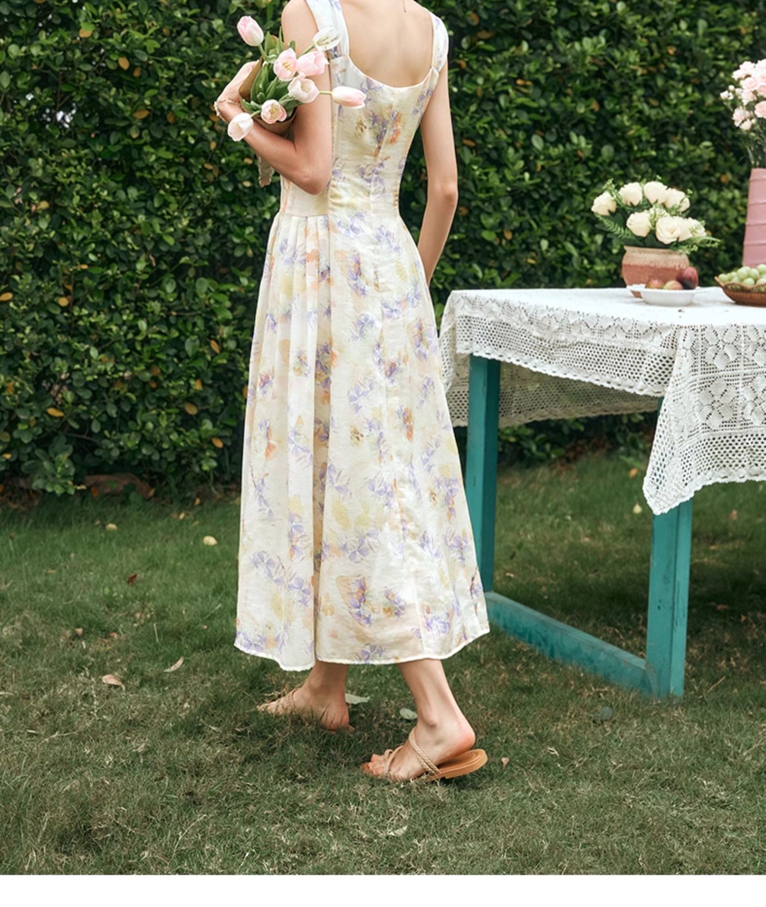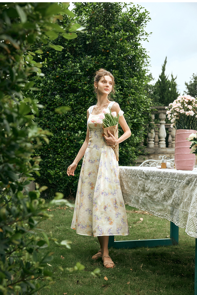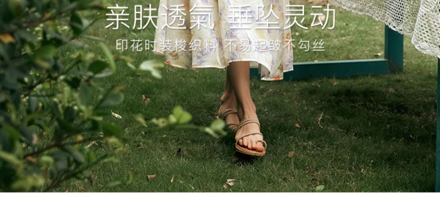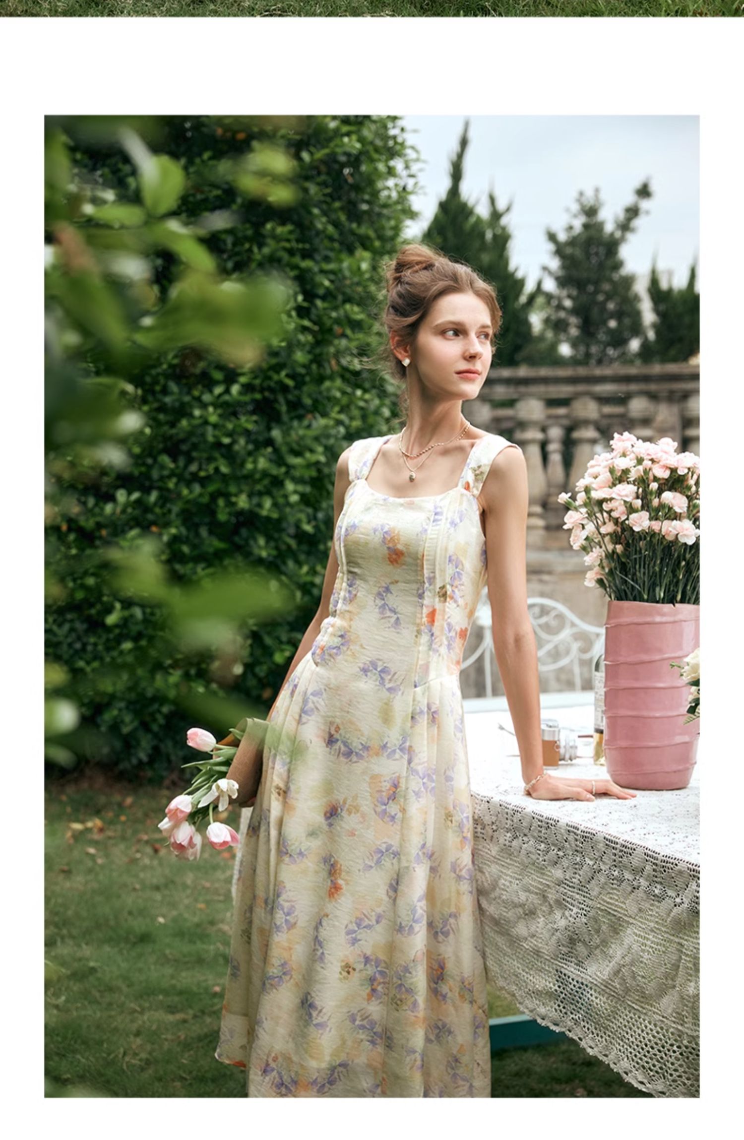 OLrain欧芮儿法式茶歇连衣裙女夏季2024新款无袖度假风碎花A字裙