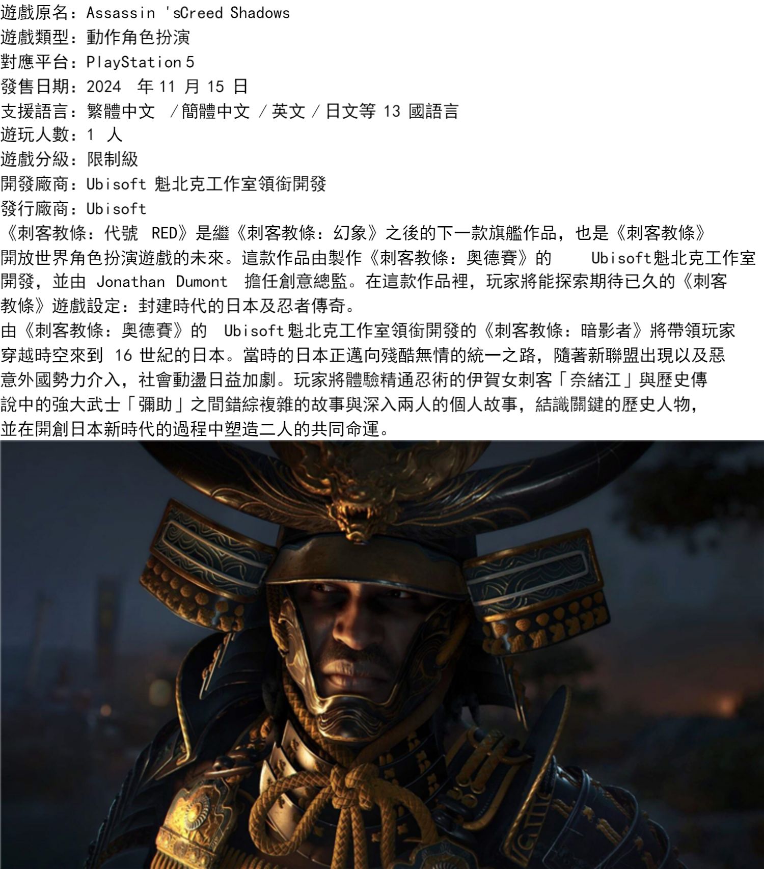 二手PS5游戏 刺客信条 影 暗影者 中文版