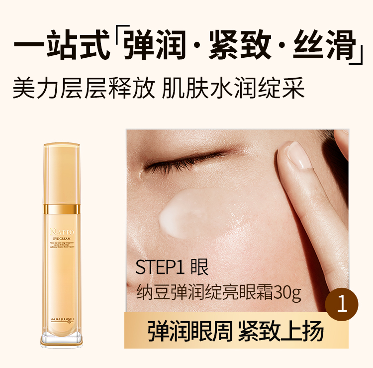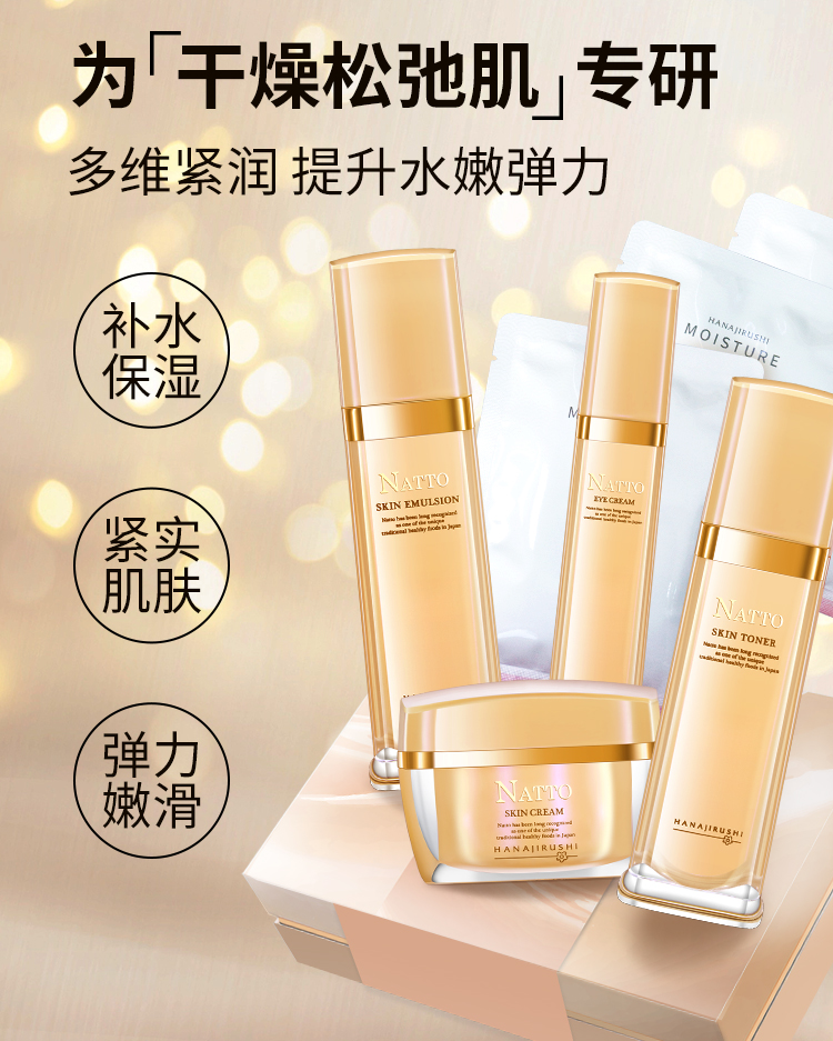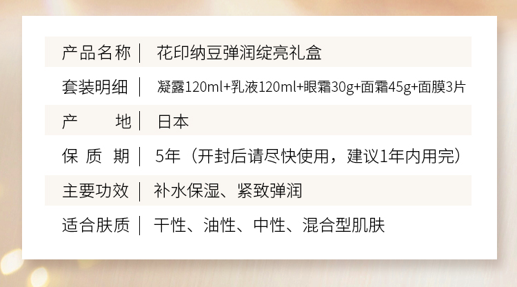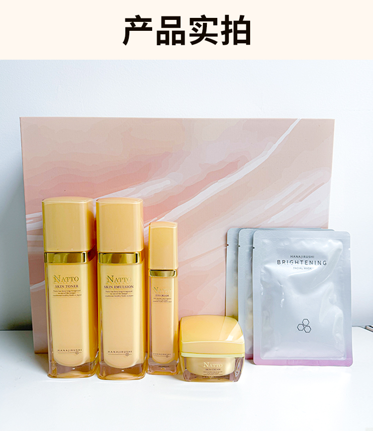 【高定礼盒眼霜版】花印纳豆弹润绽亮礼盒(凝露120ml+乳液120ml+眼霜30g+面霜45g+面膜3片)27年效期