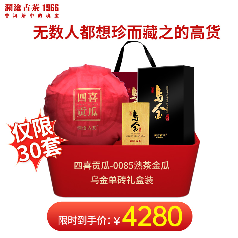 【618大促】澜沧古茶珍藏版高货0085四喜贡瓜1000g+2020年乌金单砖125g-4280元套装