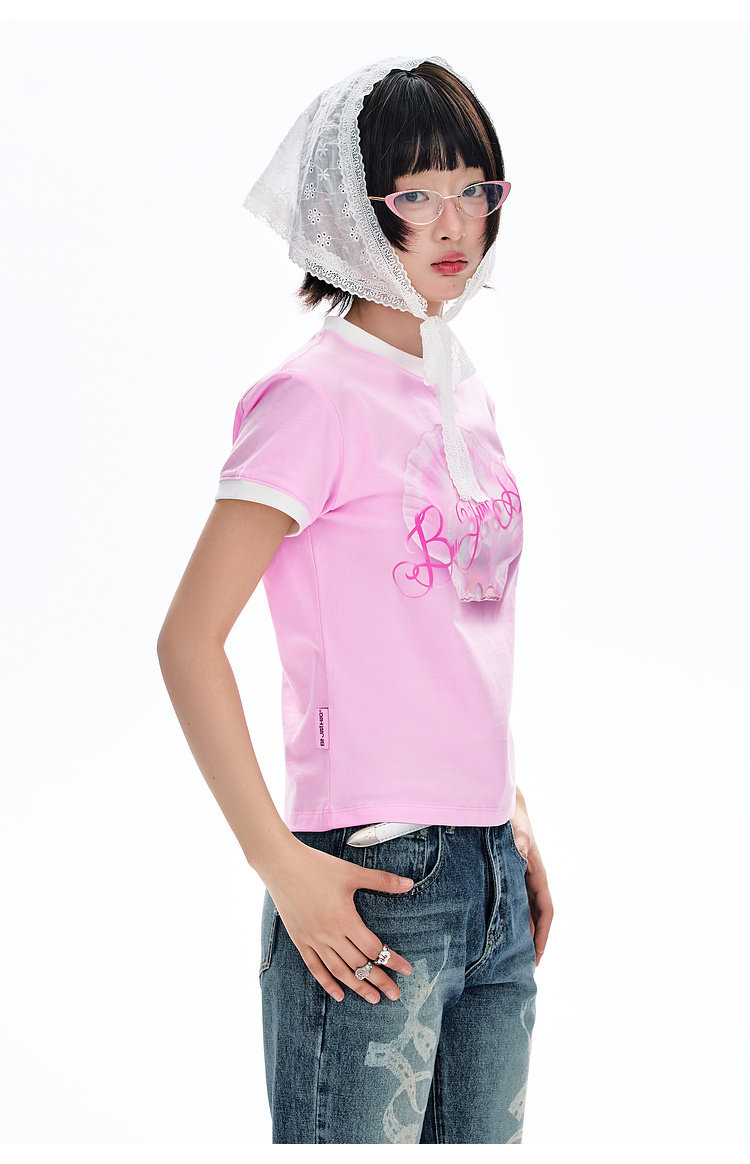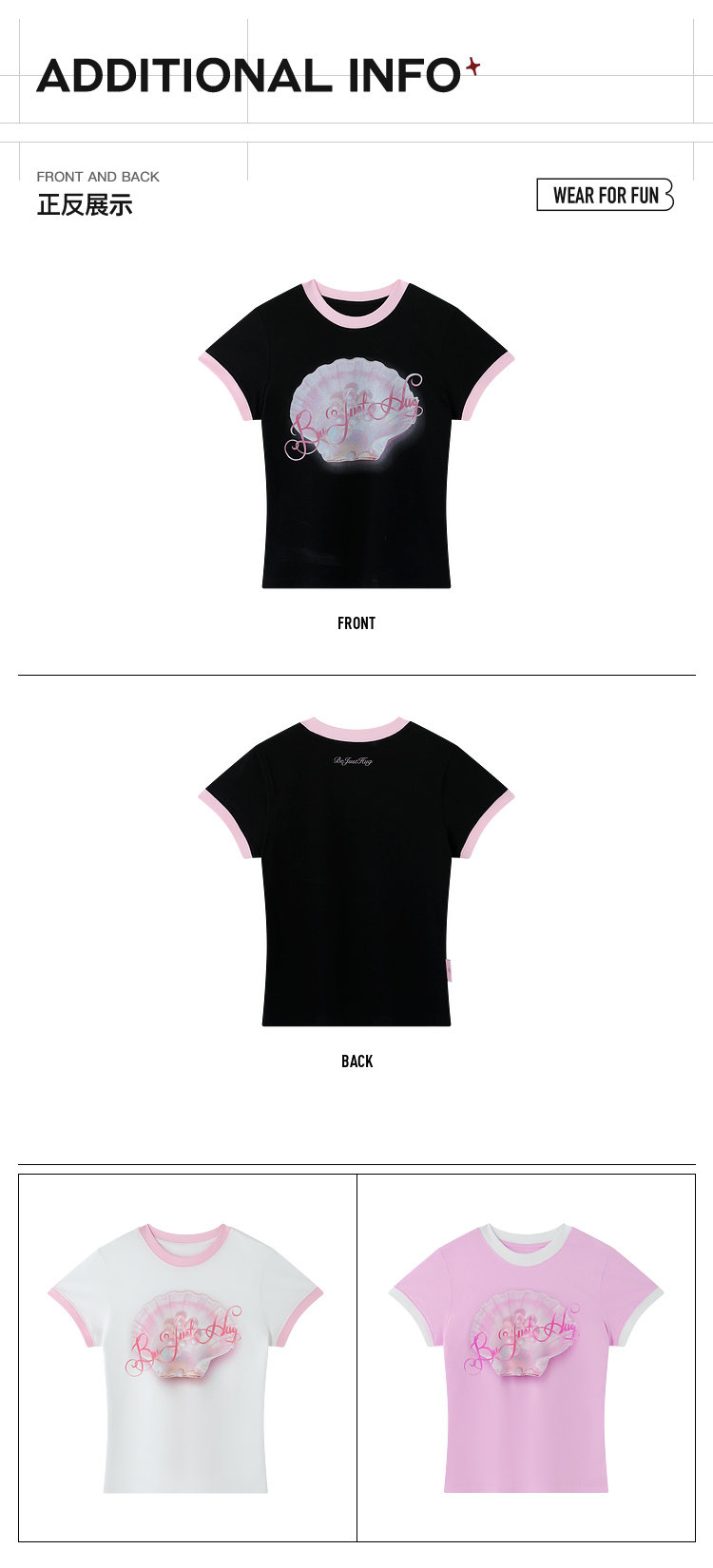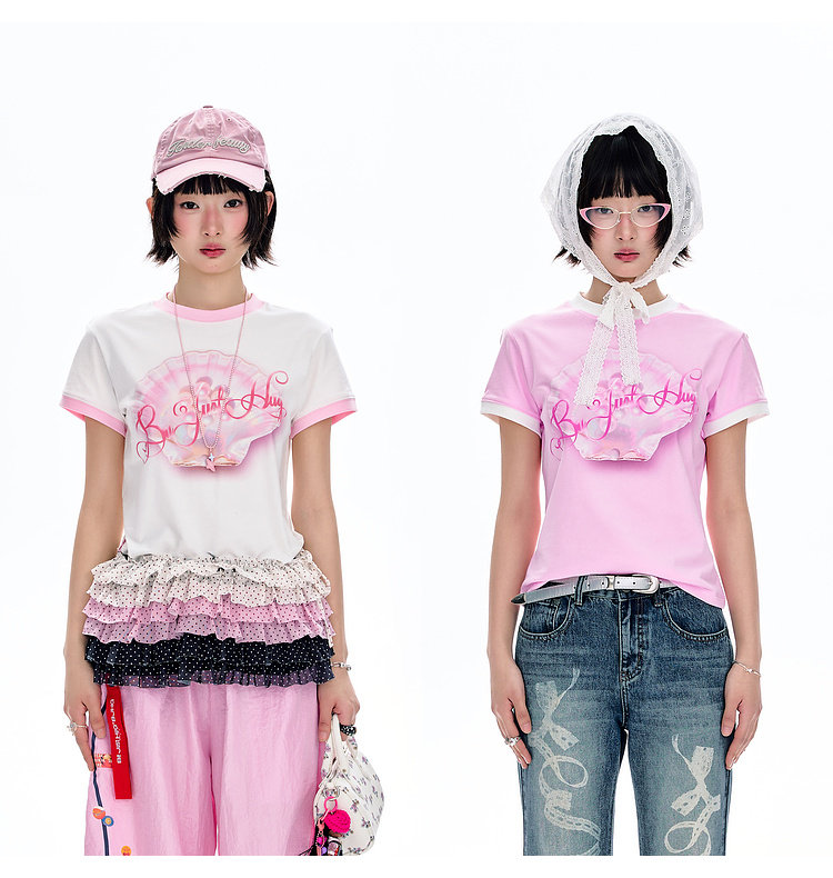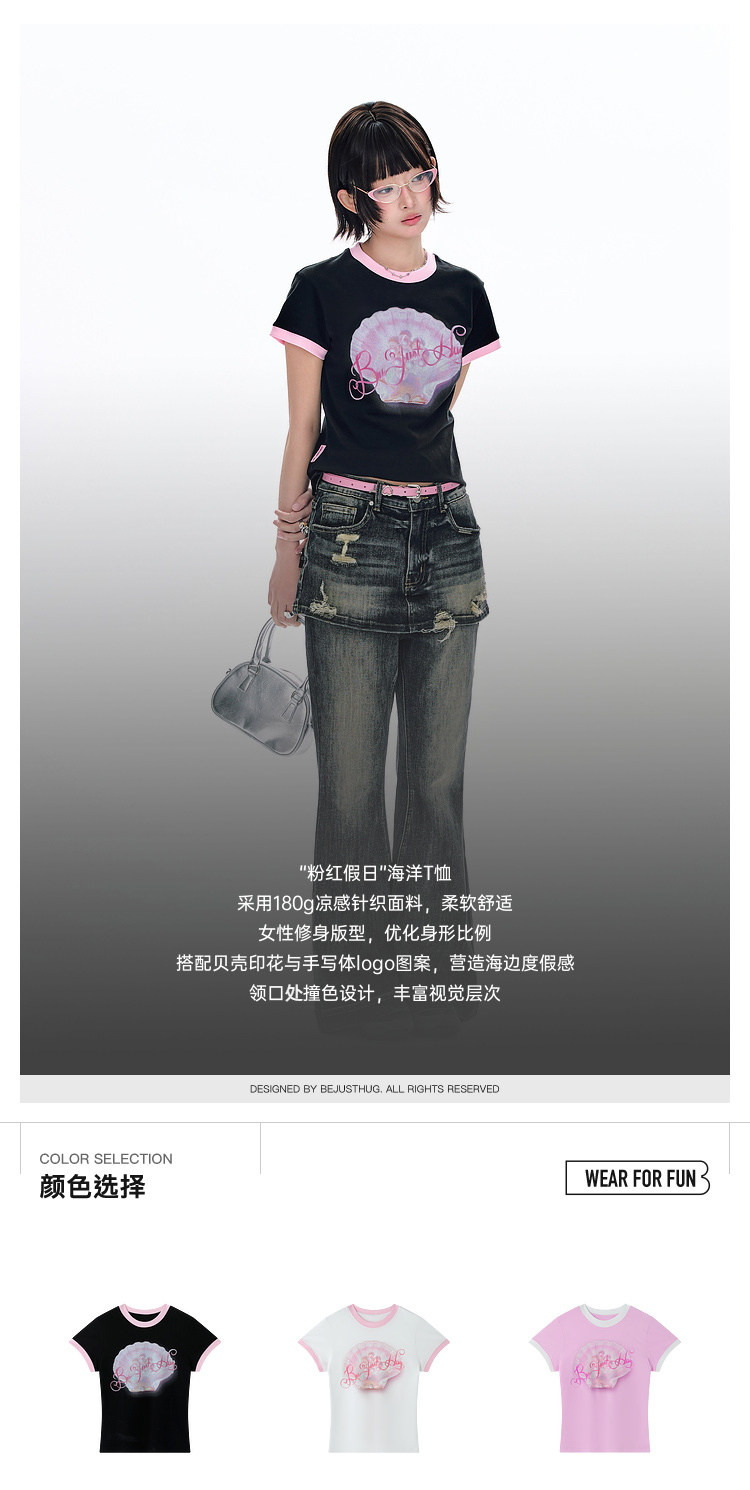 BJHG不计后果 正肩纯棉短袖T恤女款夏季2026新款合身舒适撞色半袖