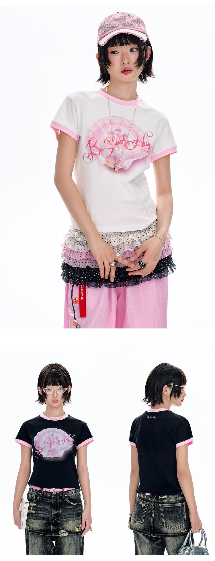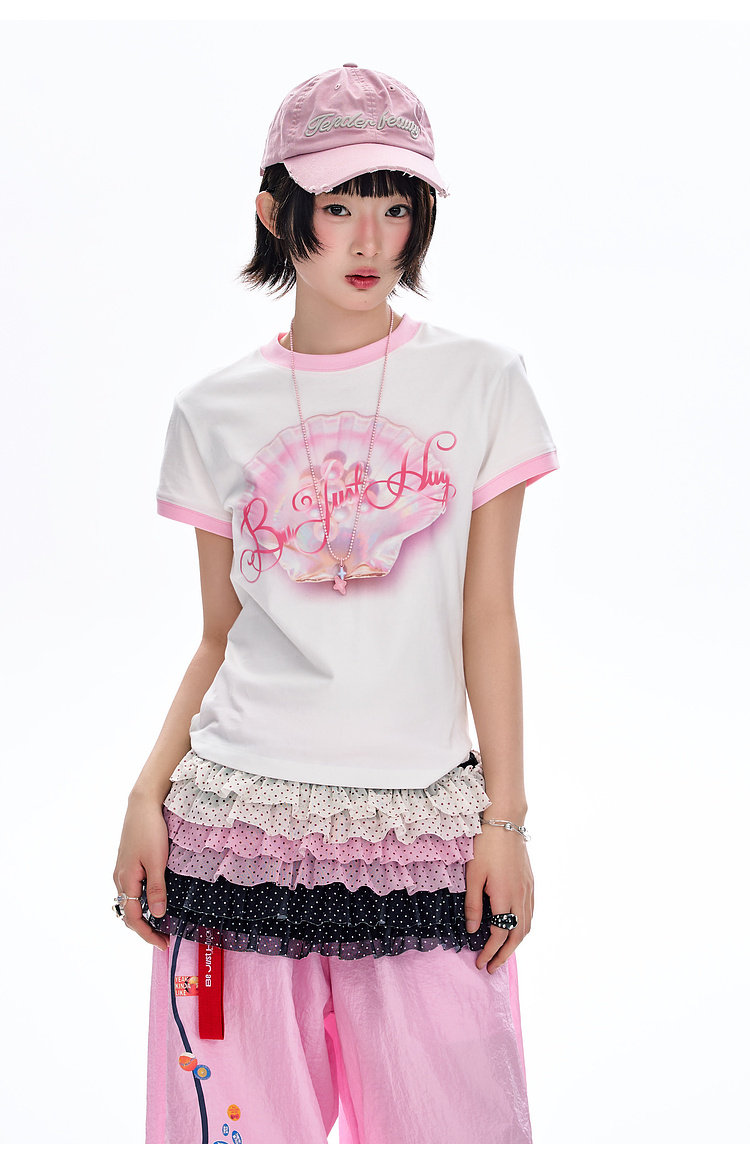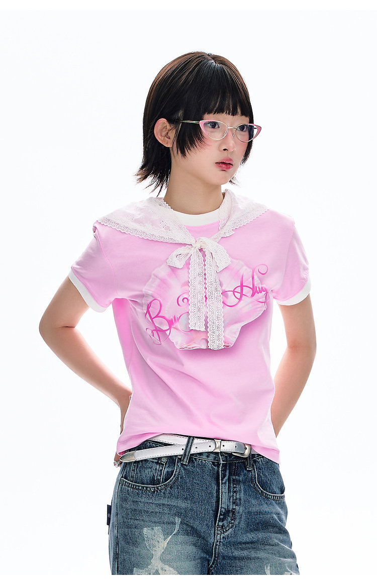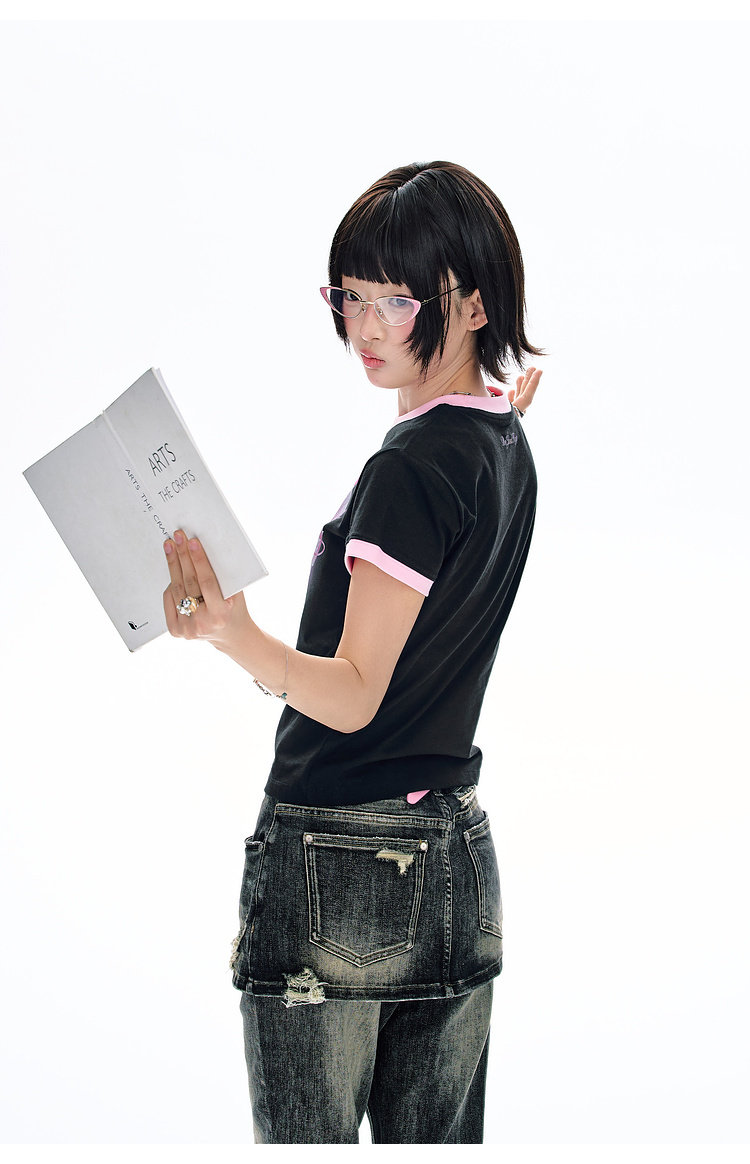 BJHG不计后果 正肩纯棉短袖T恤女款夏季2026新款合身舒适撞色半袖