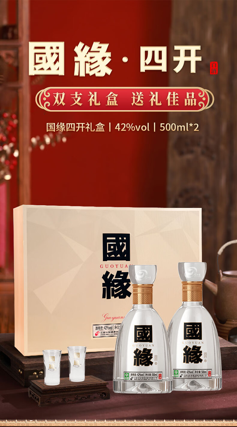 今世缘国缘四开礼盒装 42度500ml*2瓶
