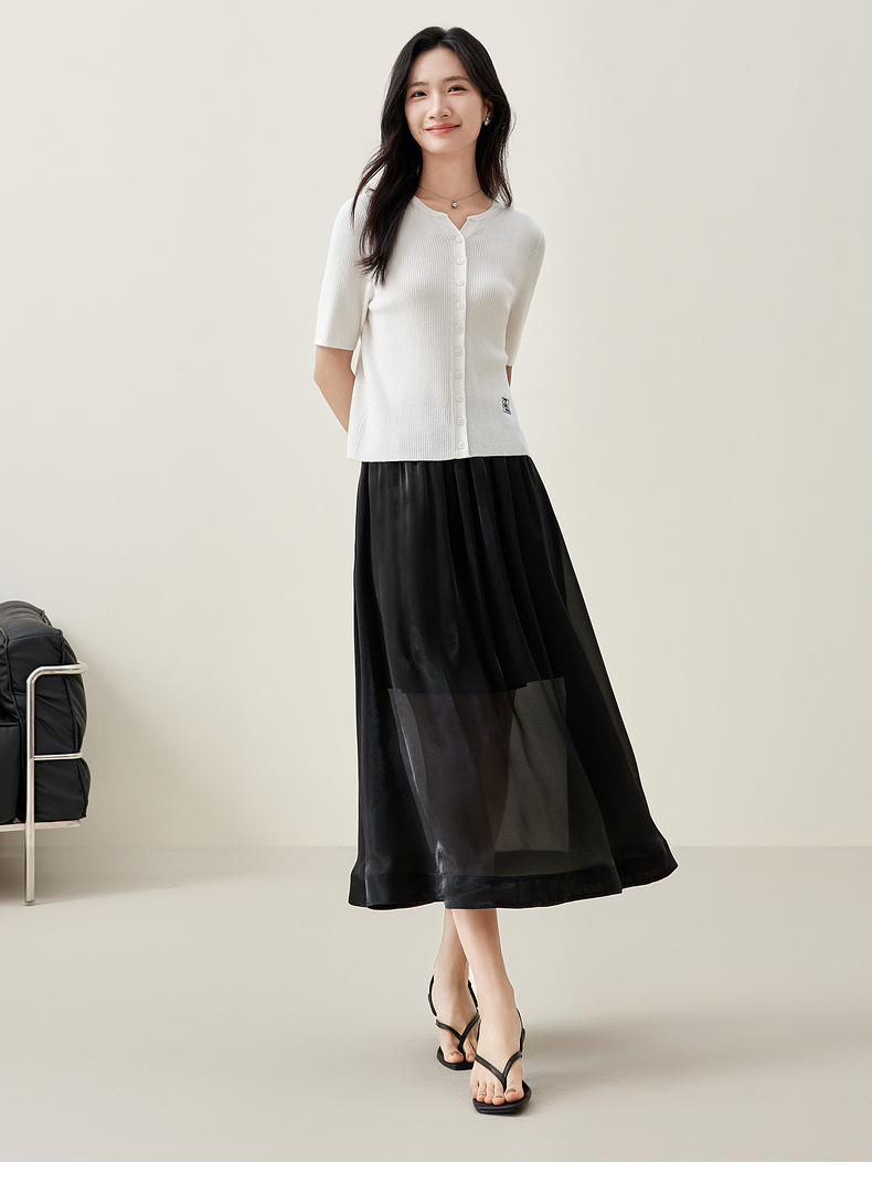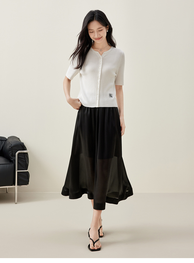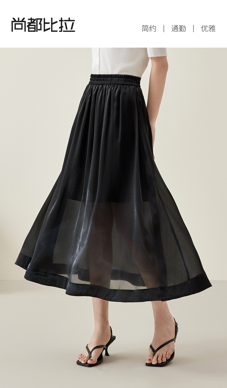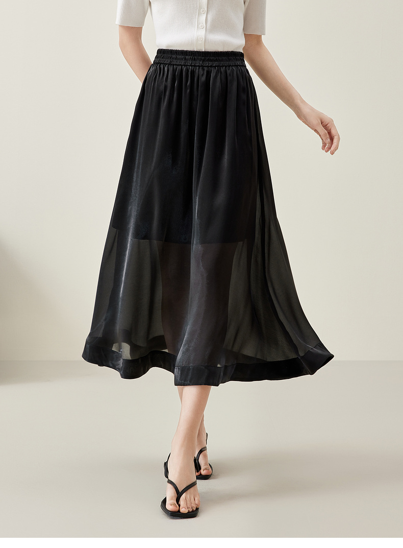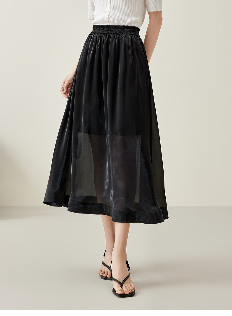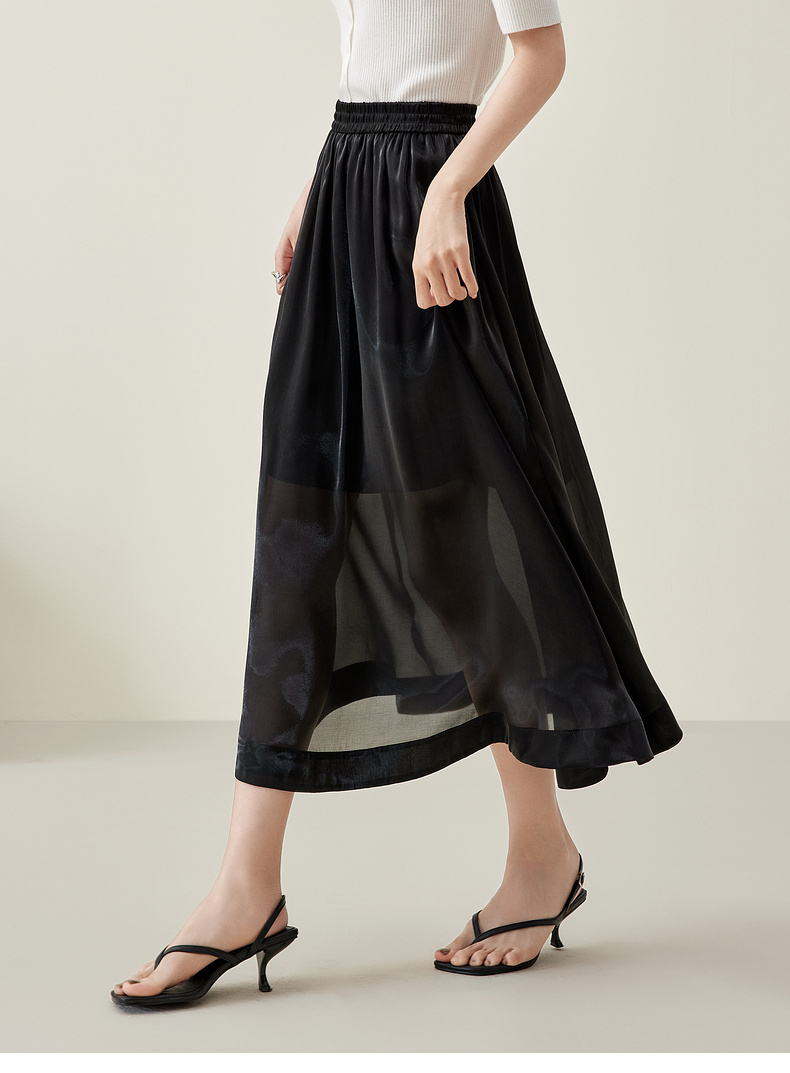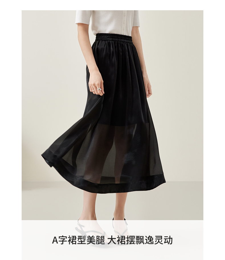 【内购】优雅度假松紧腰轻盈垂坠朦胧感长款A字伞裙半身裙-151Q58144