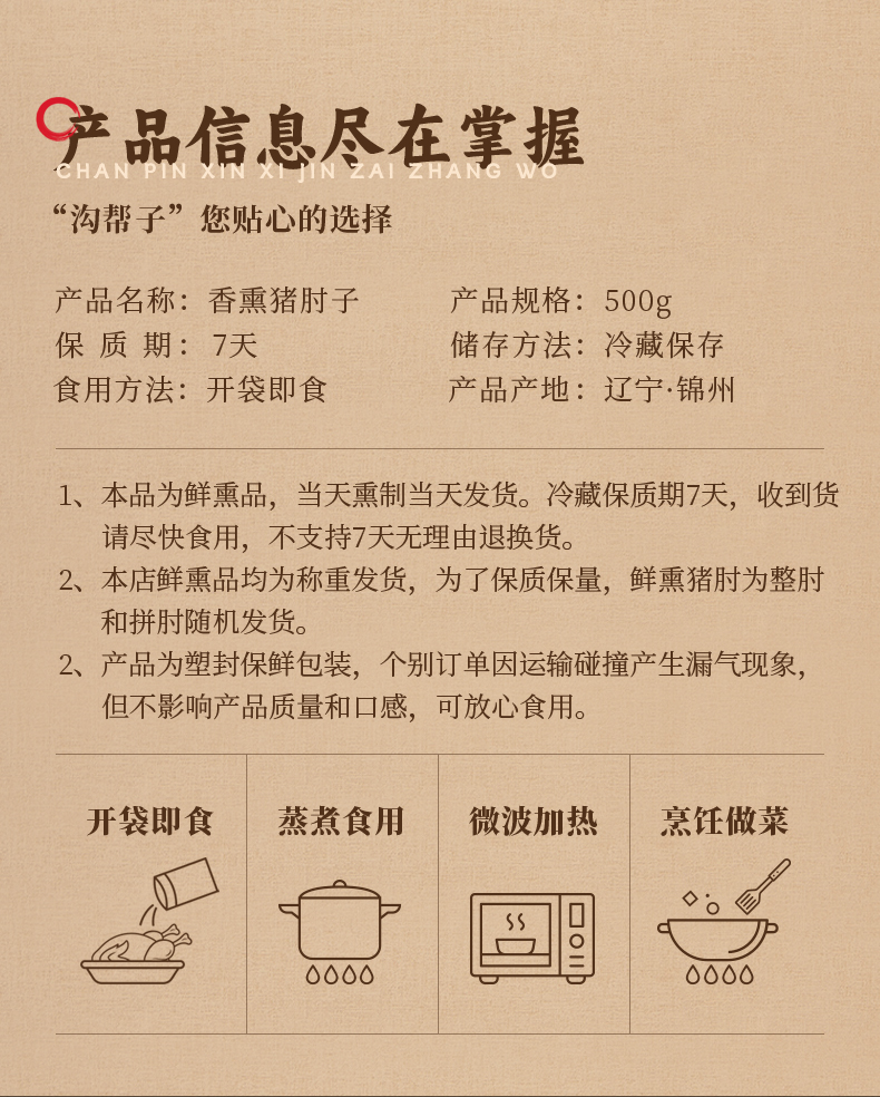 沟帮子熏鸡 沟帮子熏猪肘500g+贴鸡腿120g*2+贴鸡翅尖160g*2