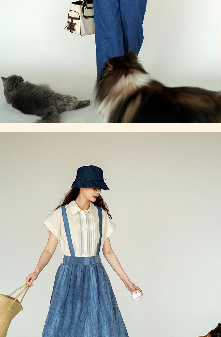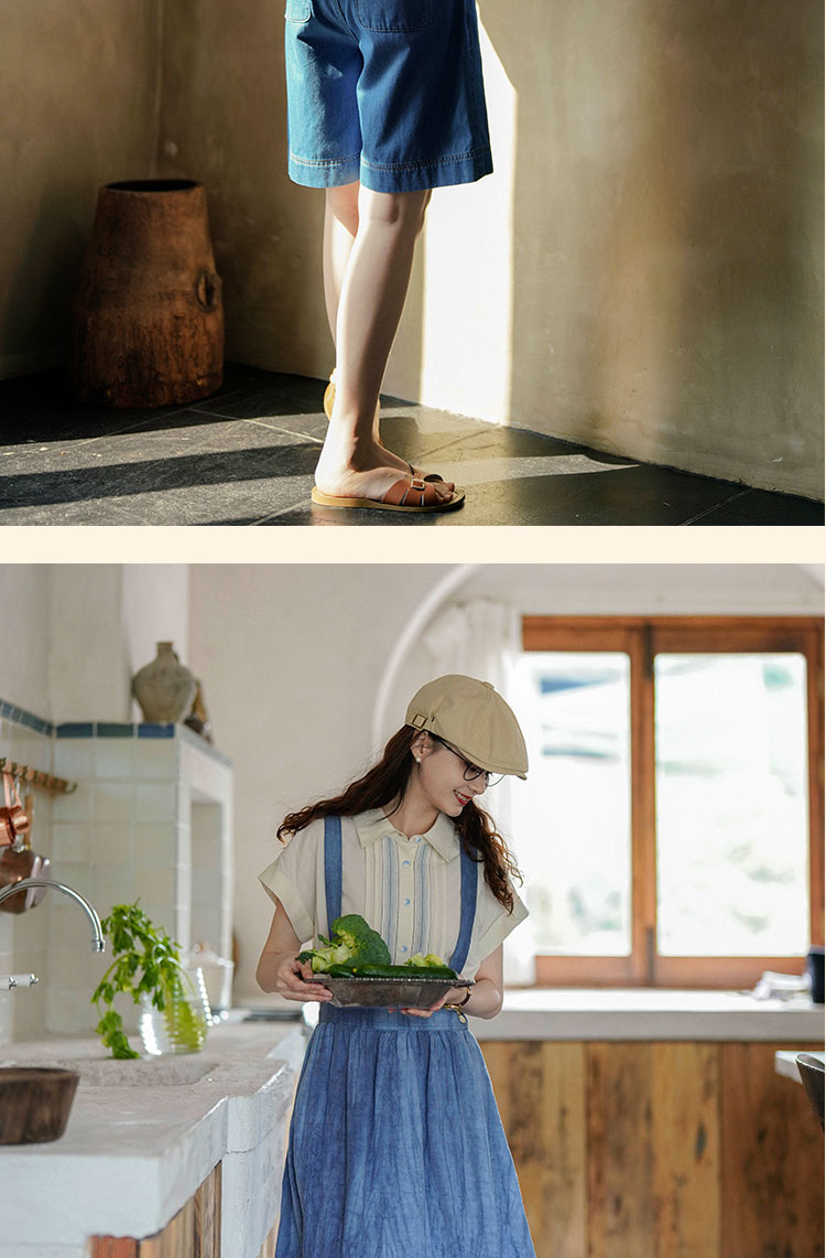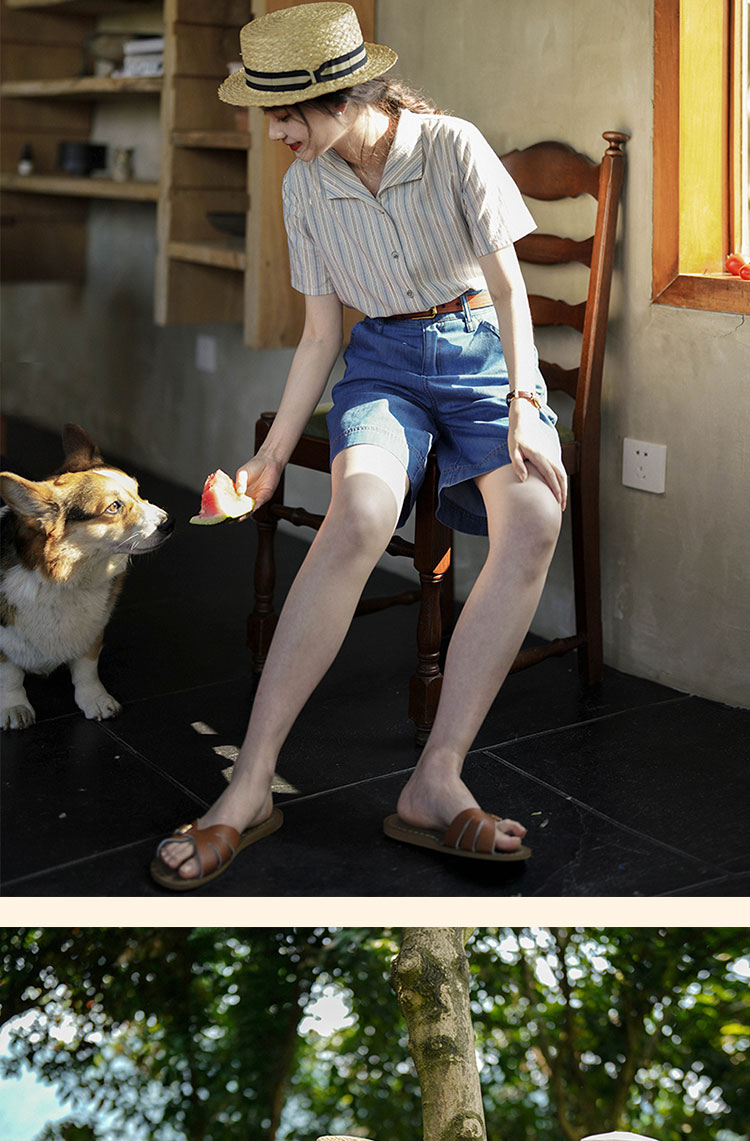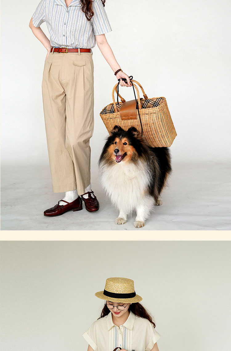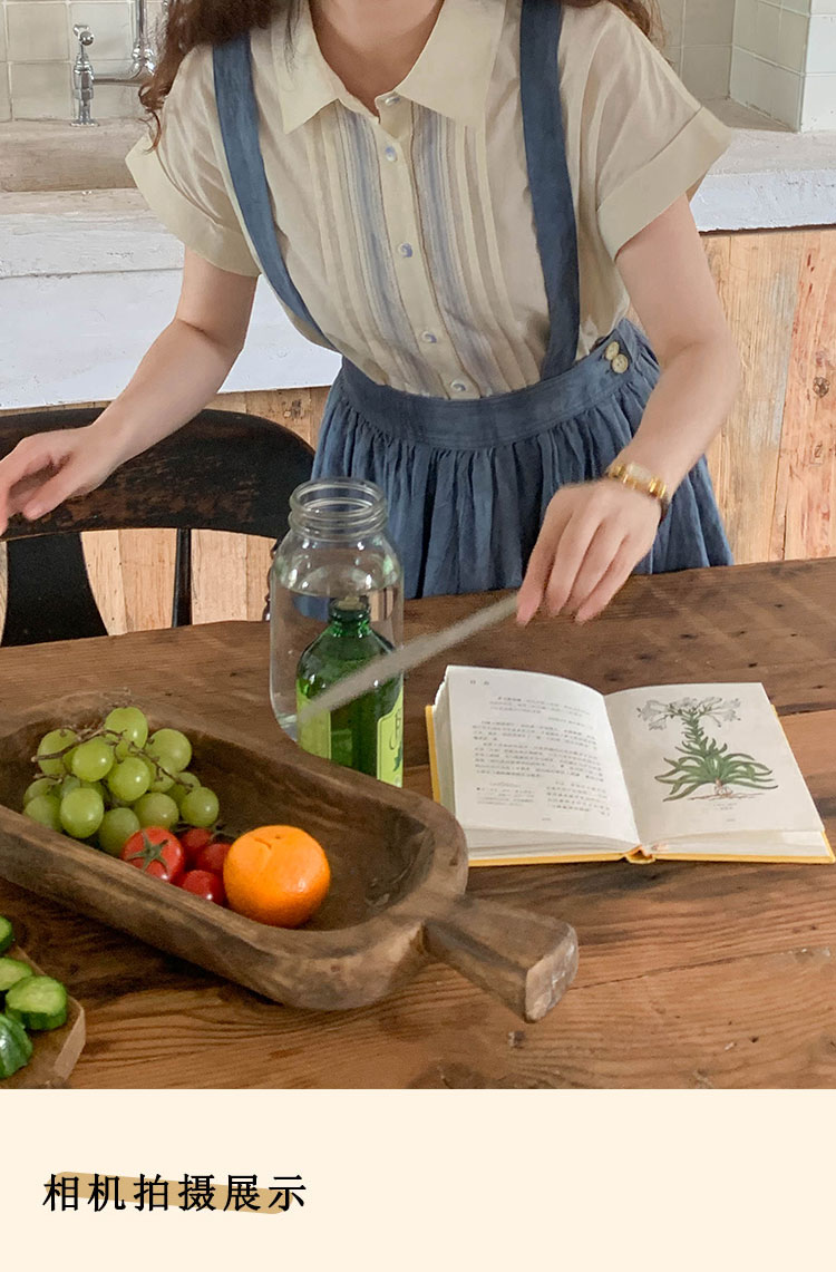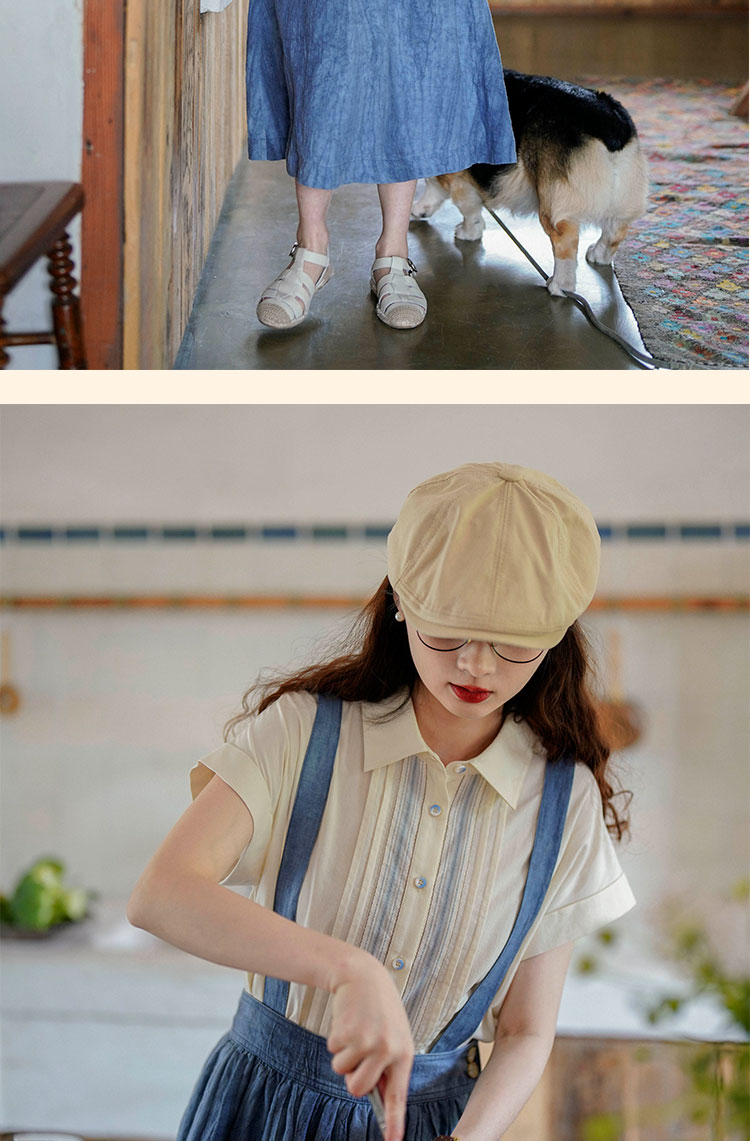 浮生八记/22B052/22B041/天丝棉麻拼接条纹刺绣短袖衬衫