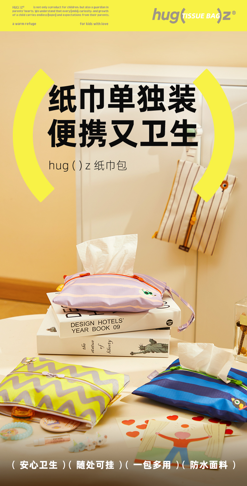 hugz纸巾包便携防水随行挂袋收纳壁挂式车载安心卫生洗脸巾抽纸盒★弥鹿
