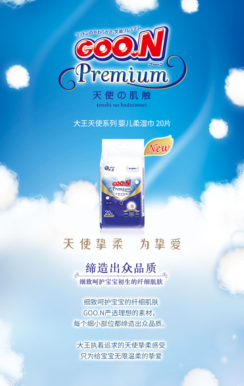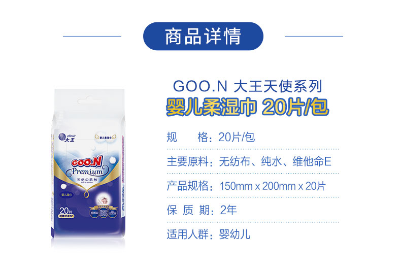 日本大王GOO.N天使婴儿柔湿巾20片*1包便携随身装10包起发【GPQ】