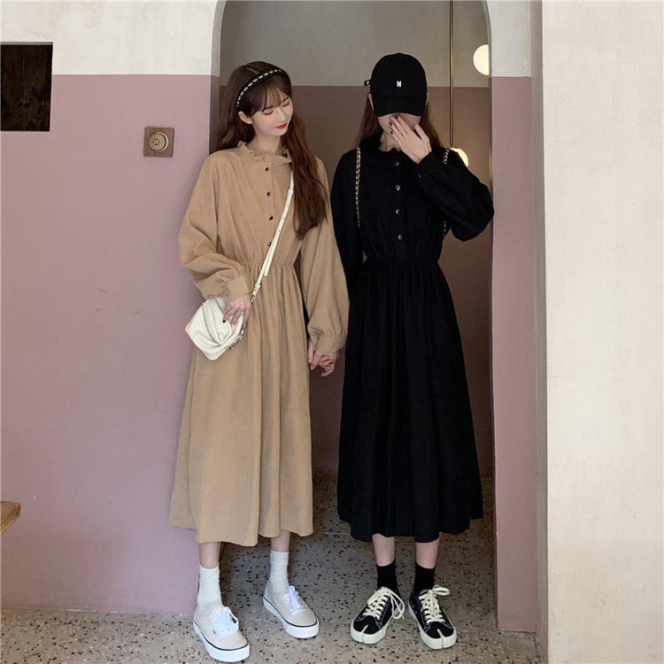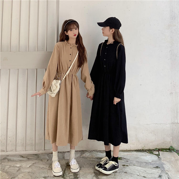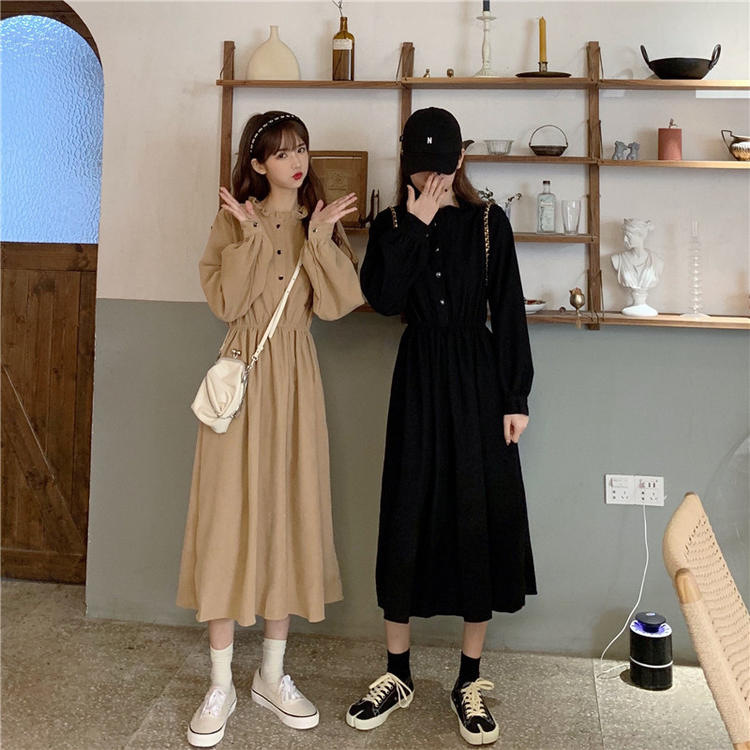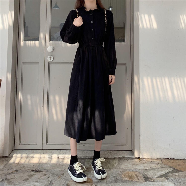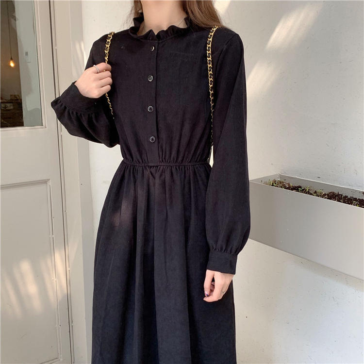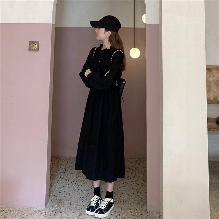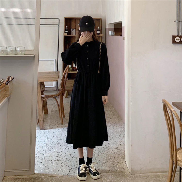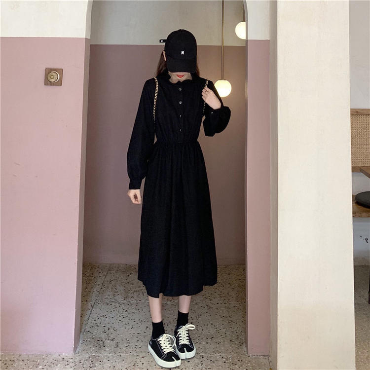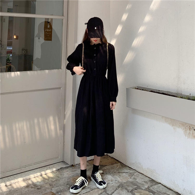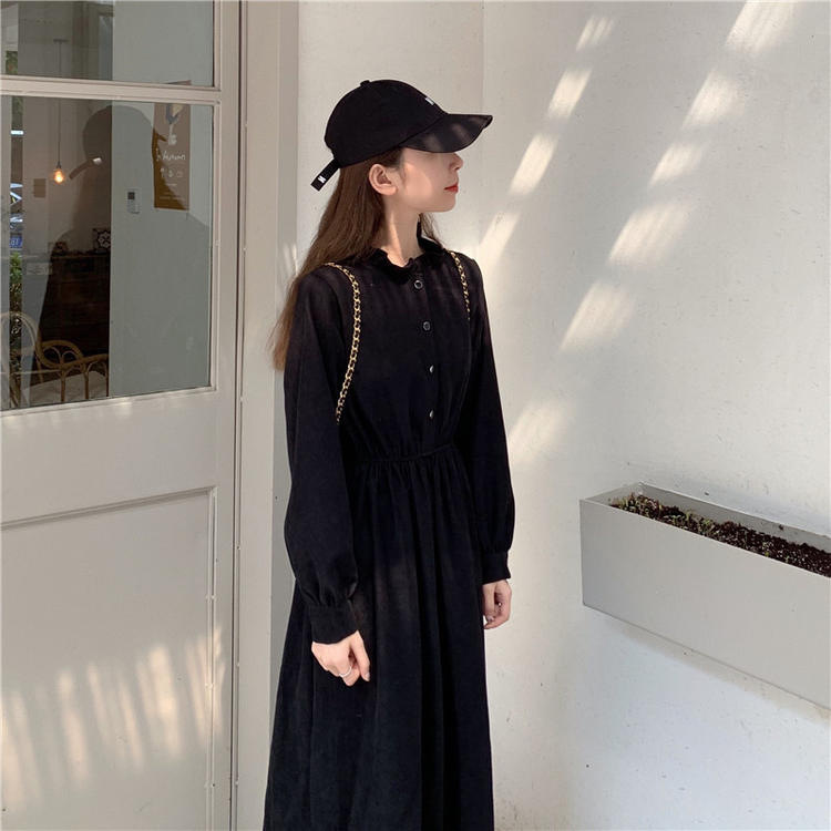 早春新款【气质女神范 长袖连衣裙】时髦女装 法式收腰小黑裙子 冷淡风