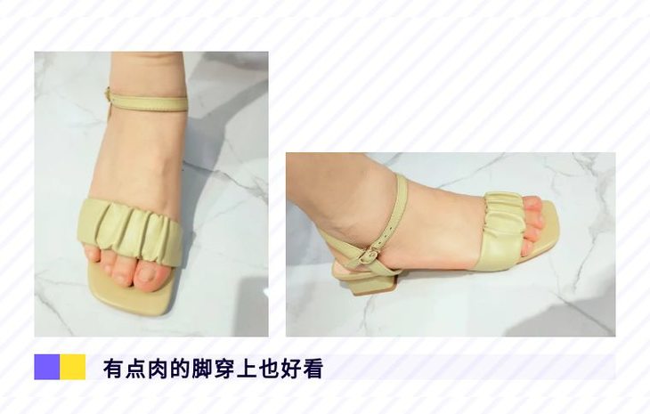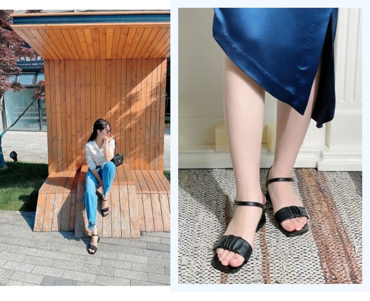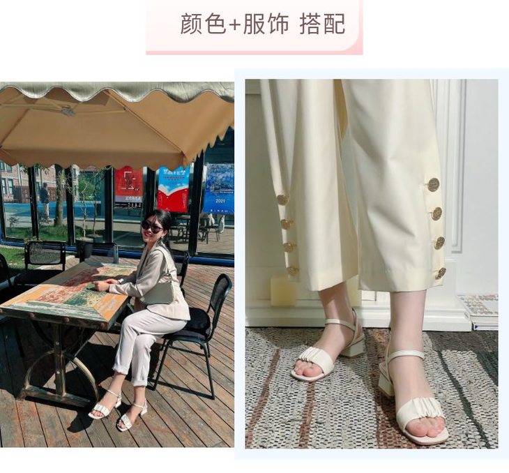 方头设计--对宽脚友好,不会发生脚趾头被挤到外面去的尴尬,贴心照顾到所有的脚趾,而且可以营造出复古的甜美感。随便搭配一件简单服饰都能展现高ji感,与夏日的职场、日常、度假都能搭配,你就是这条街蕞靓的仔~