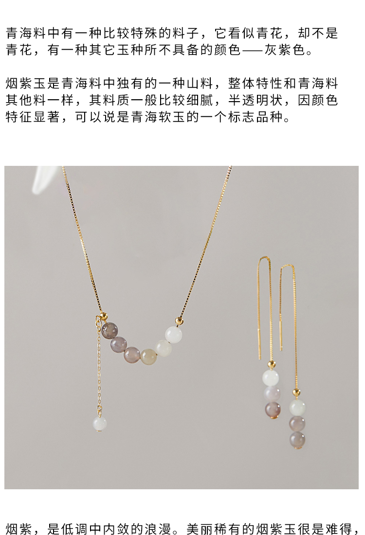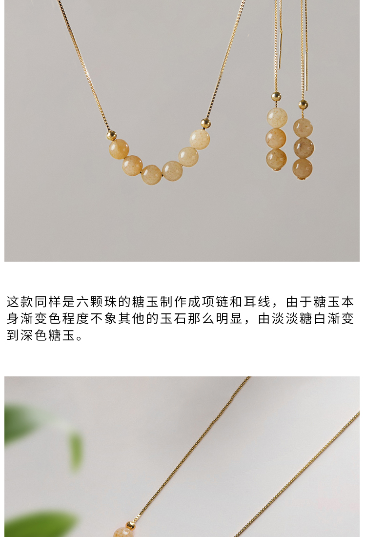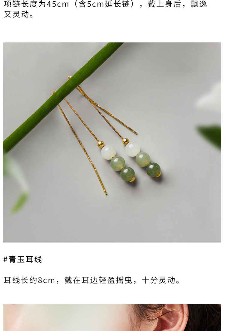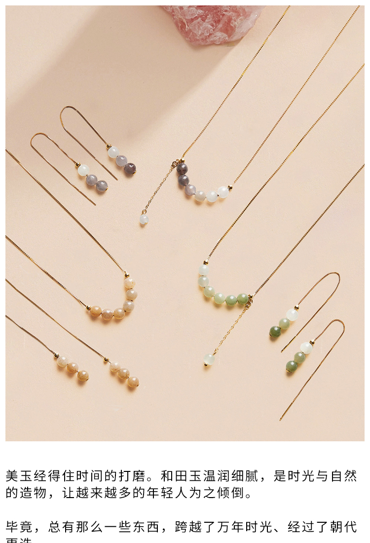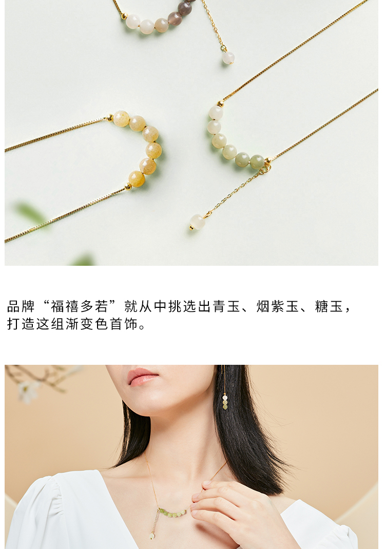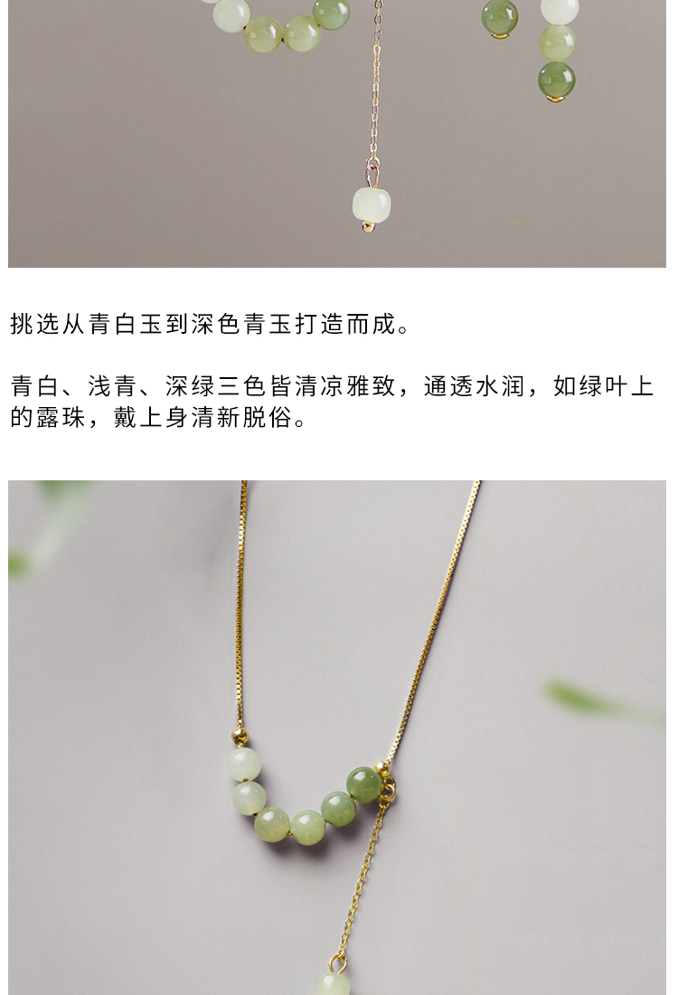 清雅渐变色和田玉首饰 项链 耳环 套装